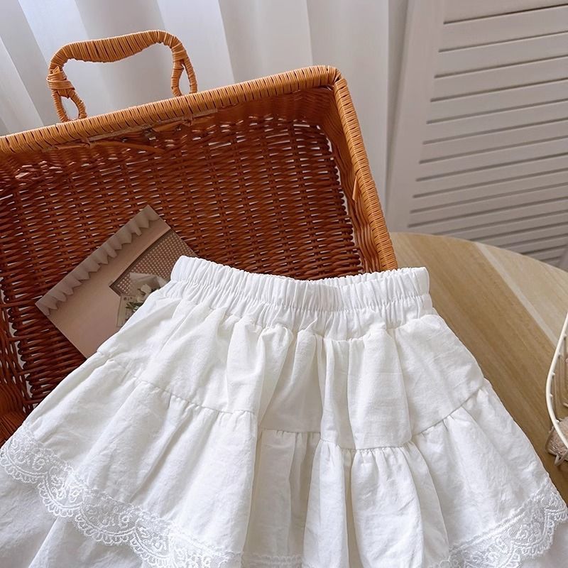 여자 스커트 2025 여름 새로운 어린이 짧은 치마 안전 바지 레이스 케이크 스커트 서양식 주름 치마스토어 가기