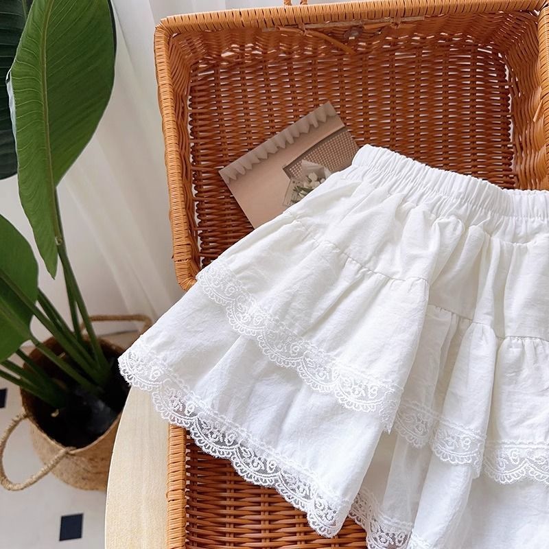여자 스커트 2025 여름 새로운 어린이 짧은 치마 안전 바지 레이스 케이크 스커트 서양식 주름 치마