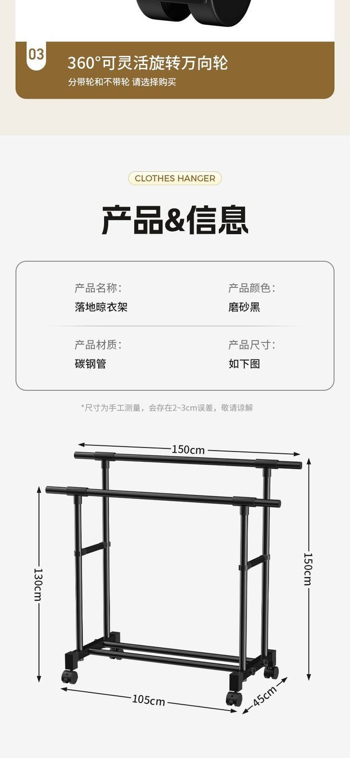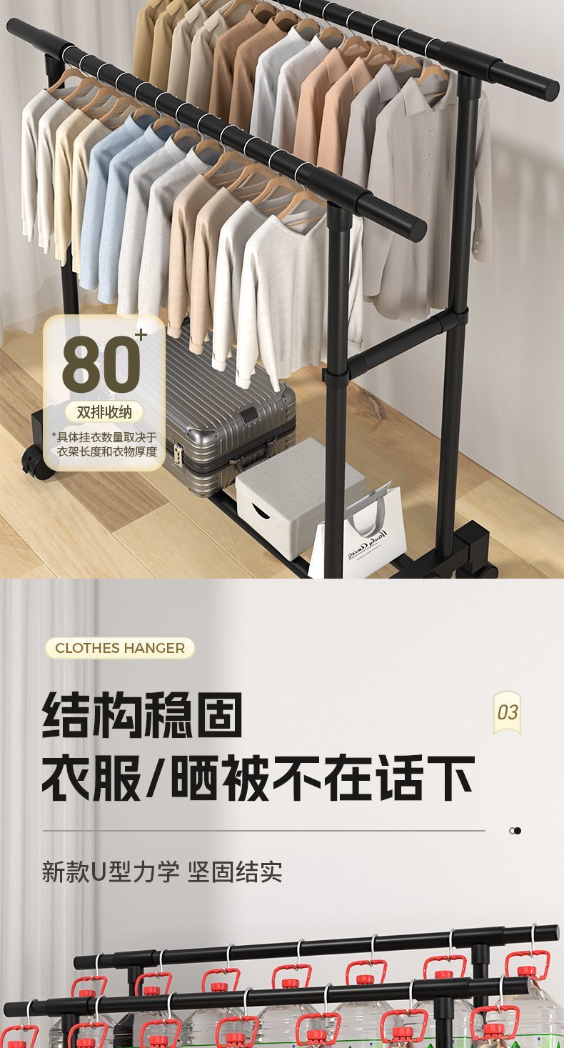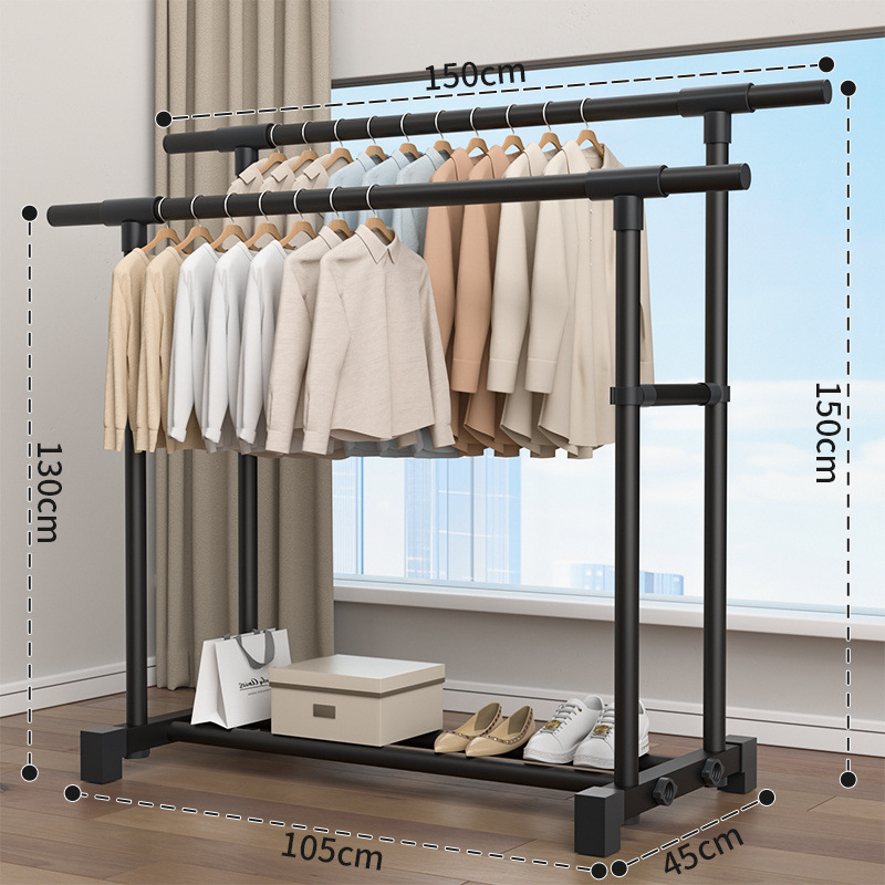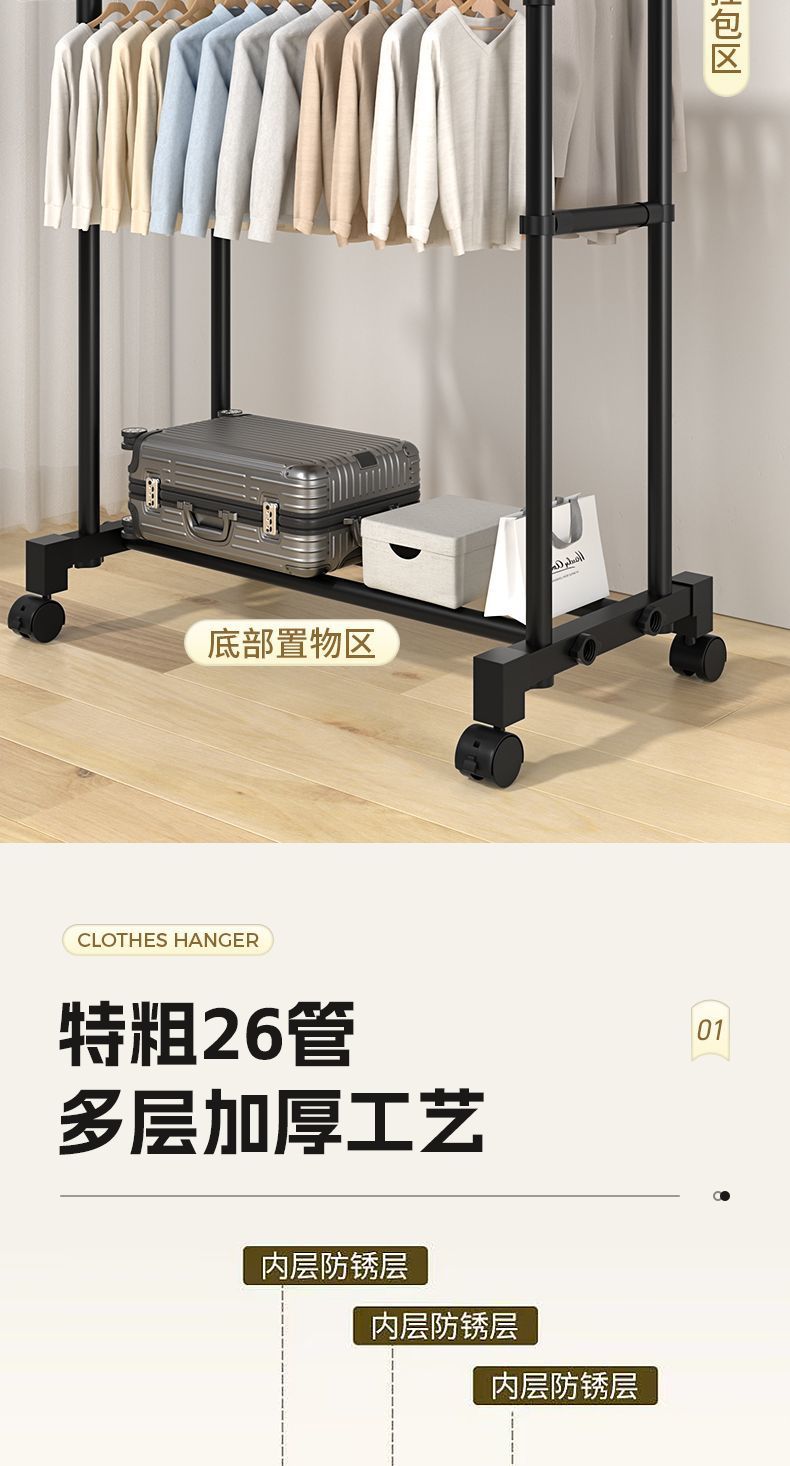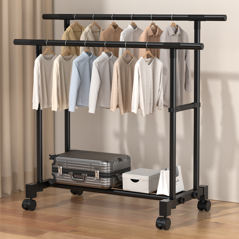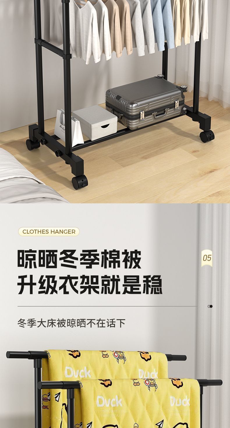 두꺼운 이중 막대 이동식 기숙사 옷걸이, 두꺼운 옷걸이, 바닥에서 천장까지 올라오는 수직 가정용 침실 발코니 옷걸이, 간단한스토어 가기