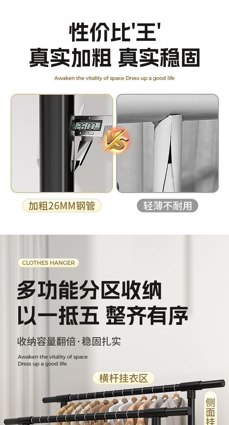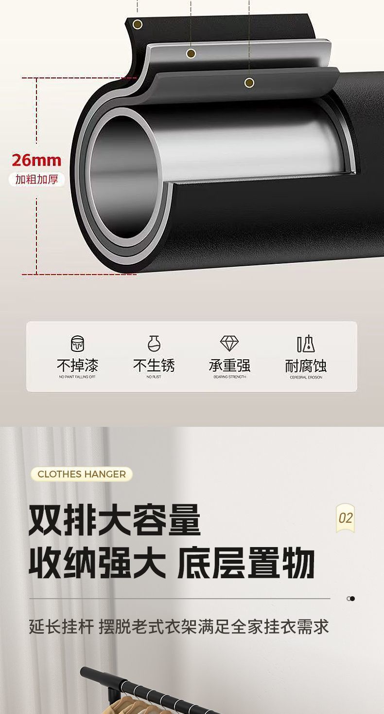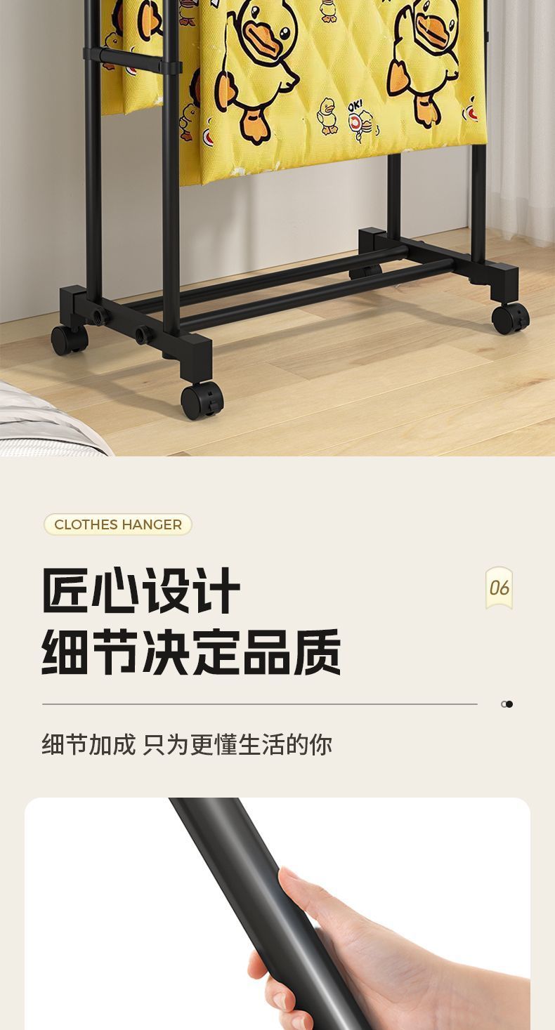 두꺼운 이중 막대 이동식 기숙사 옷걸이, 두꺼운 옷걸이, 바닥에서 천장까지 올라오는 수직 가정용 침실 발코니 옷걸이, 간단한