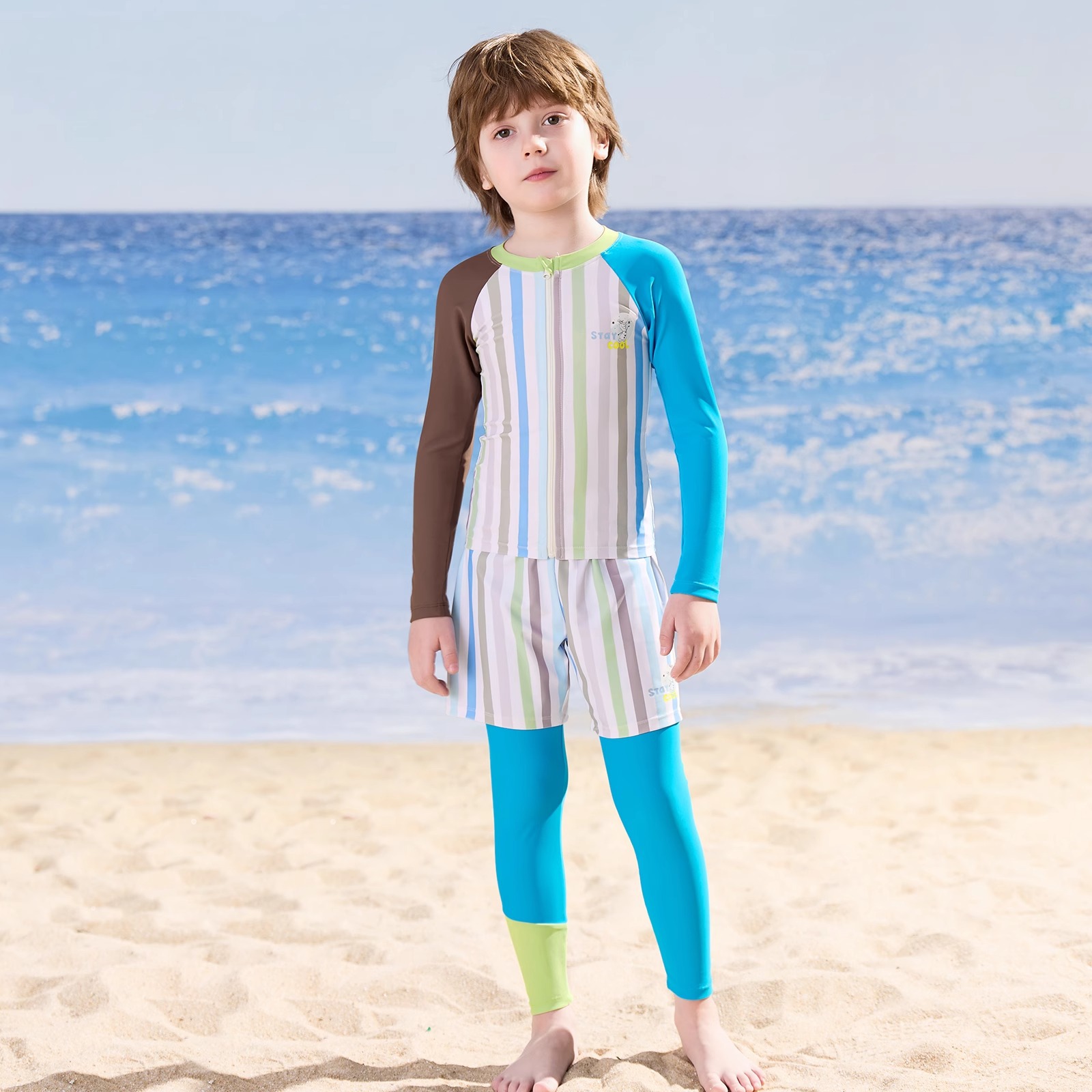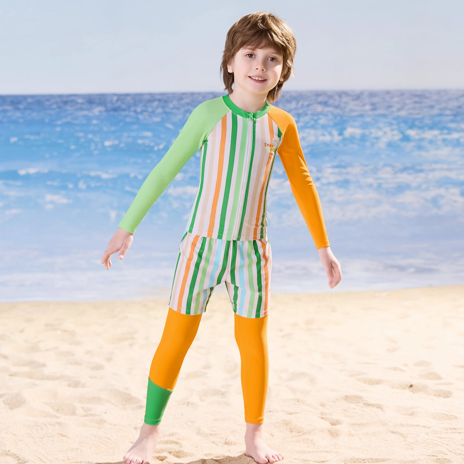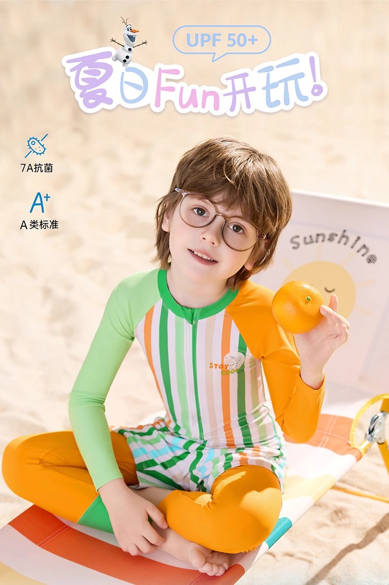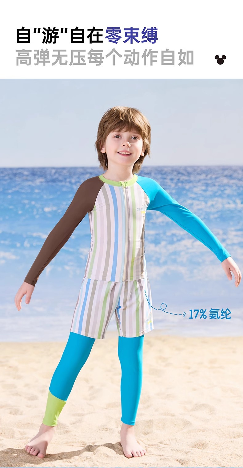 디즈니 2025 새로운 어린이 수영복 소년 아기 긴팔 스플릿 수영복 바지 해변 태양 보호 수영복