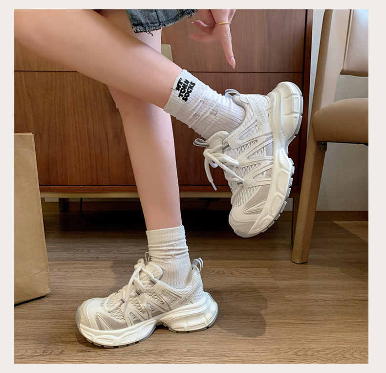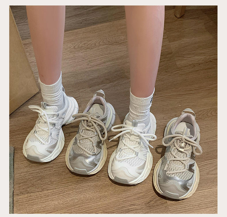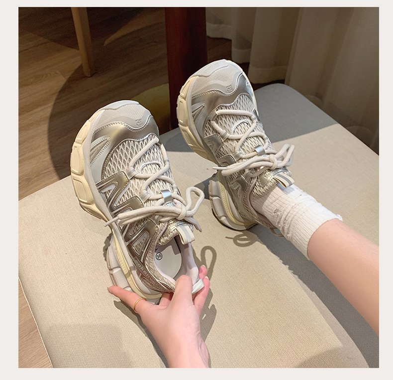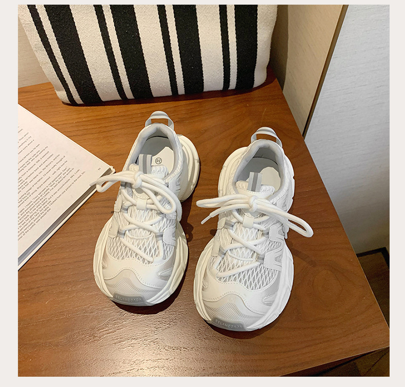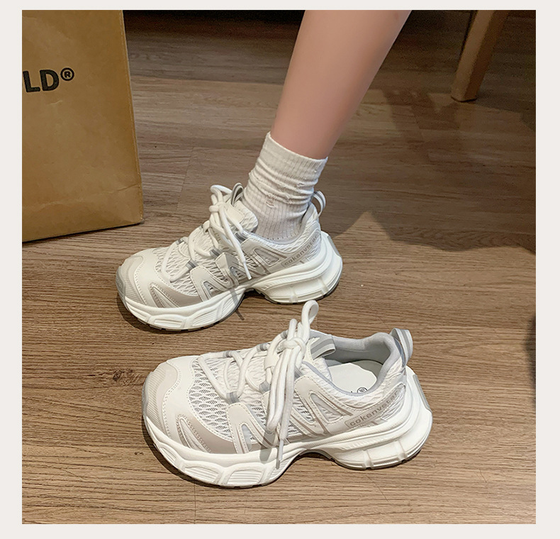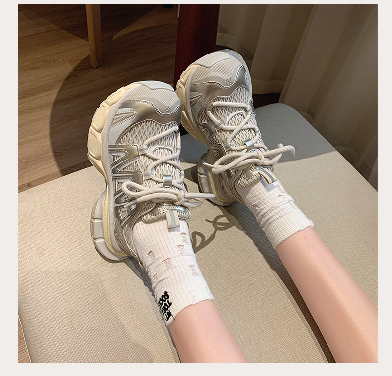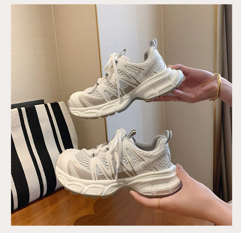 여성을 위한 한국식 두꺼운 밑창 아빠 신발 2025 여름 새로운 스타일 중공 통기성 캐주얼 신발 다용도 높이 증가 운동화