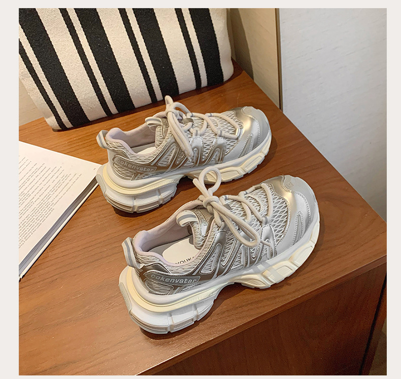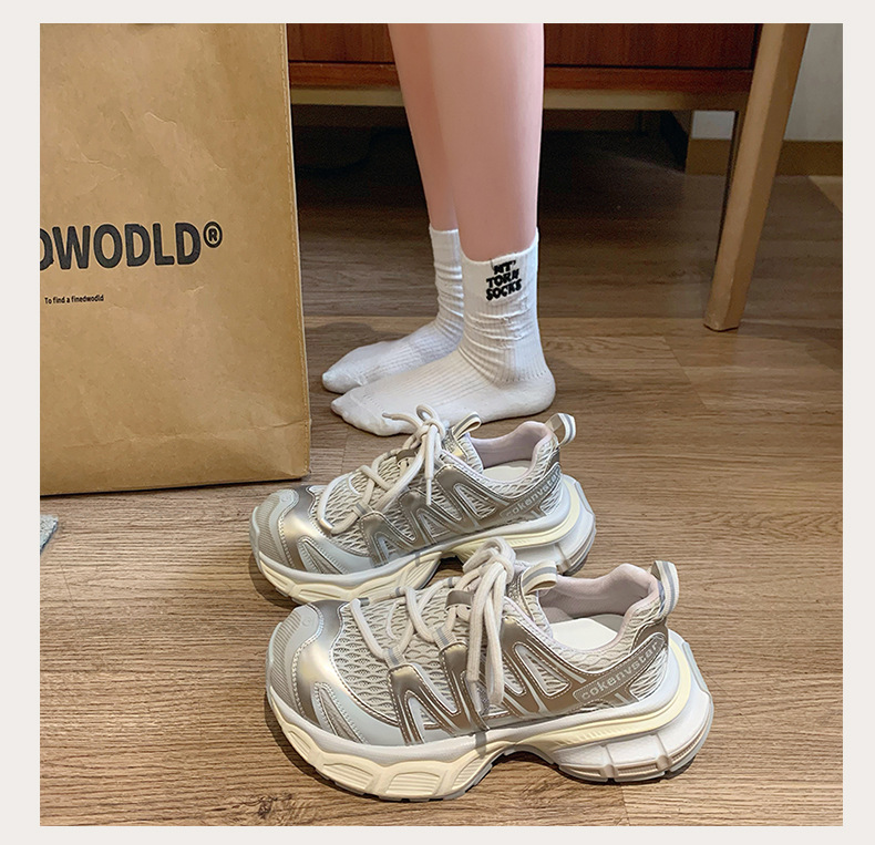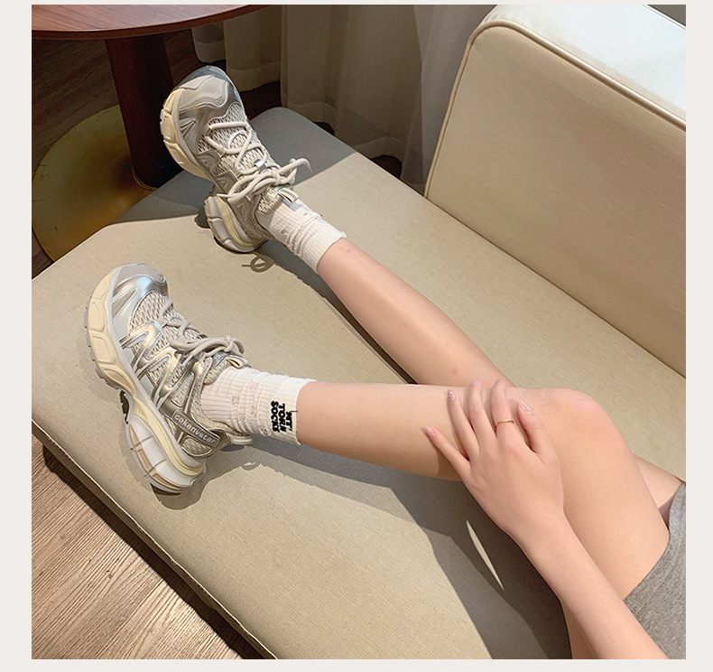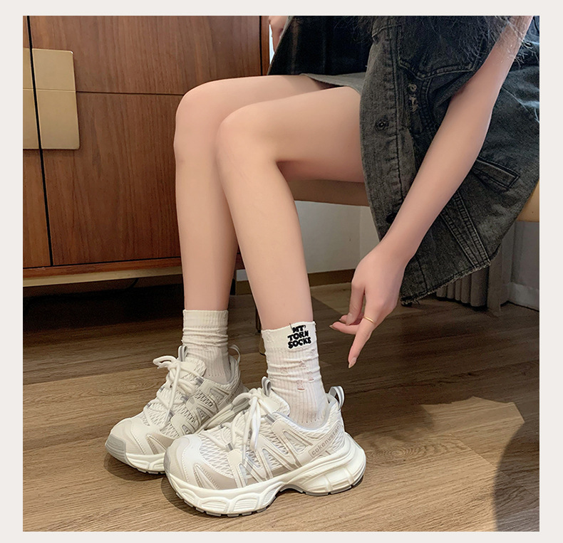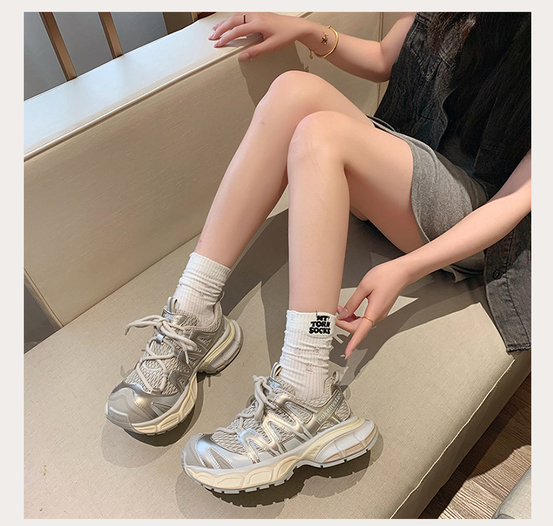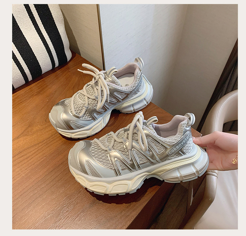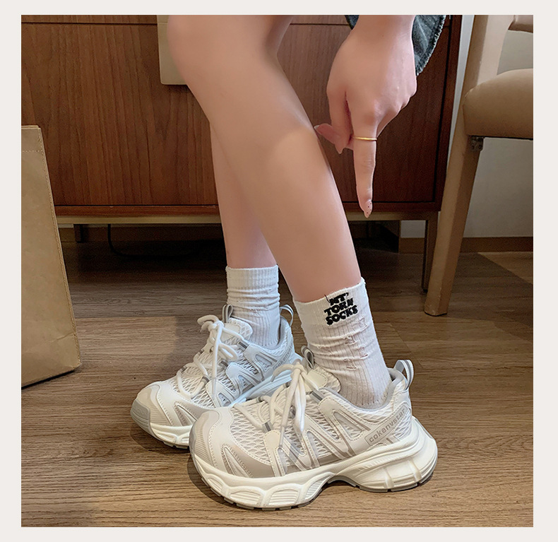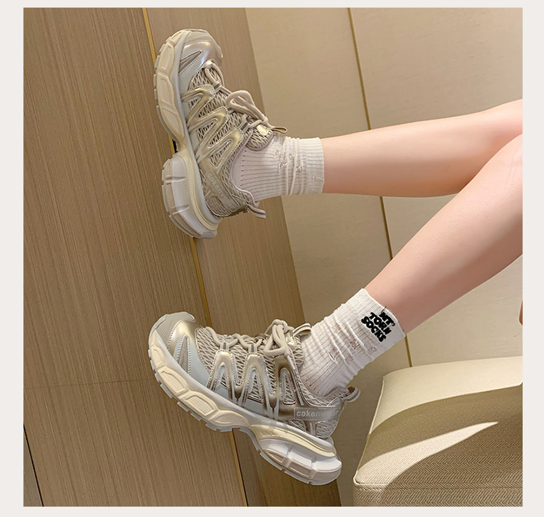 여성을 위한 한국식 두꺼운 밑창 아빠 신발 2025 여름 새로운 스타일 중공 통기성 캐주얼 신발 다용도 높이 증가 운동화