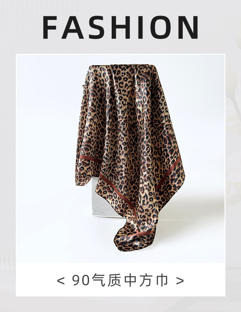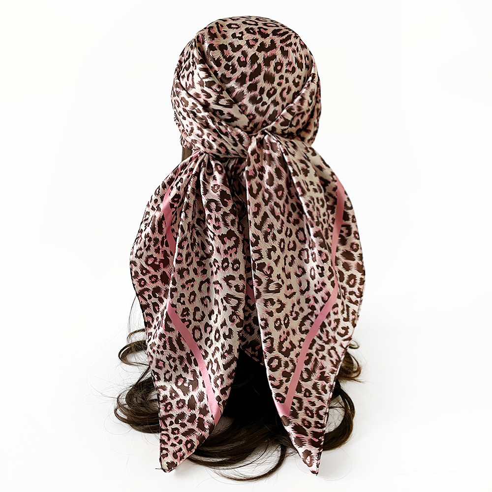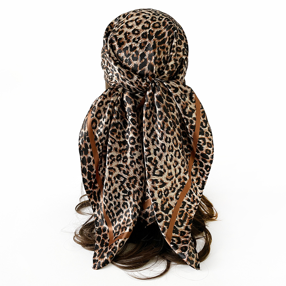 국경 간 유럽과 미국의 표범 무늬 실크 스카프 90 모조 실크 대형 사각형 스카프 여성 새틴 사각형 스카프 무슬림 터번 도매스토어 가기