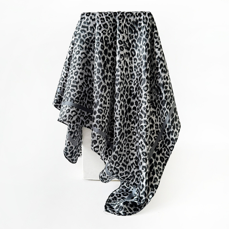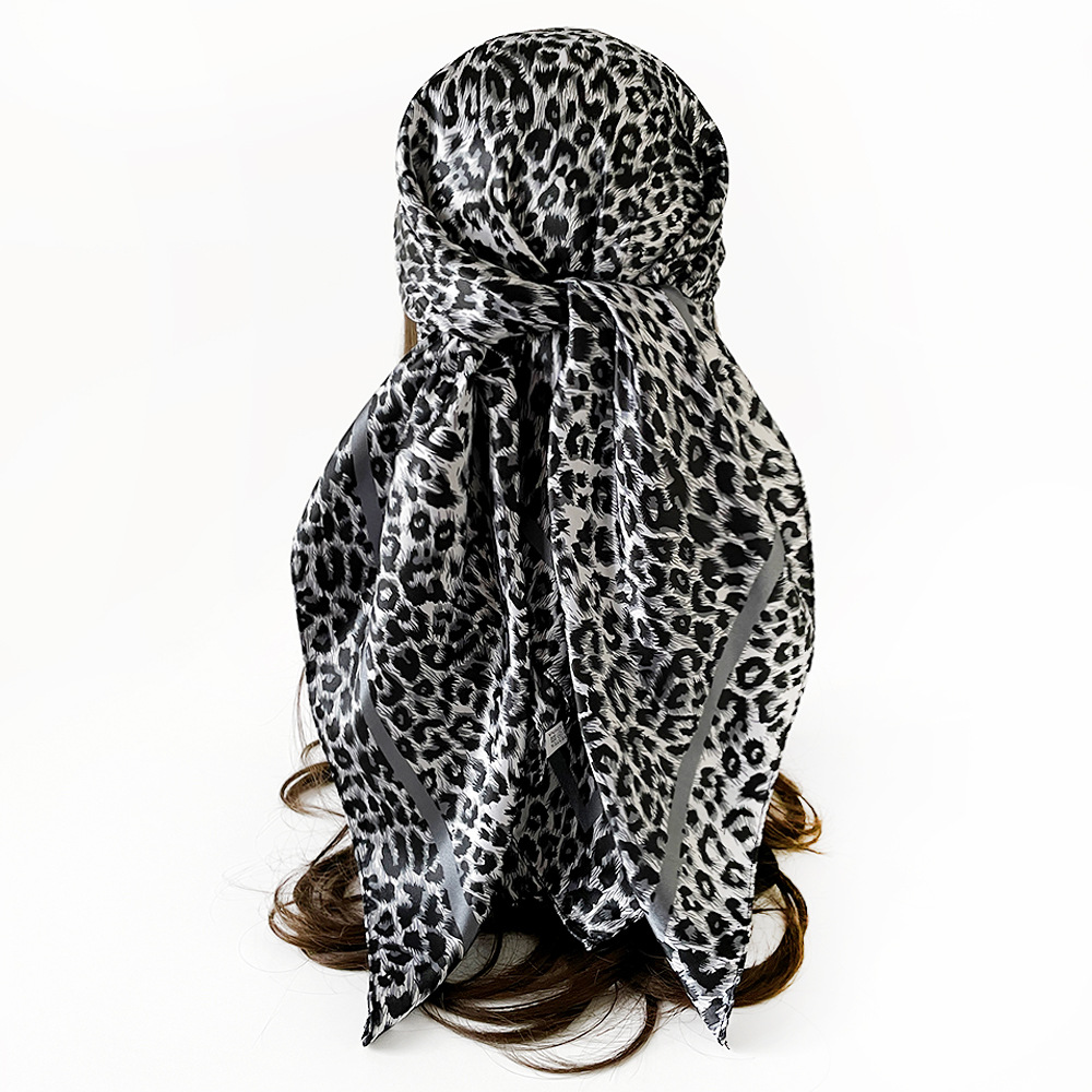 국경 간 유럽과 미국의 표범 무늬 실크 스카프 90 모조 실크 대형 사각형 스카프 여성 새틴 사각형 스카프 무슬림 터번 도매