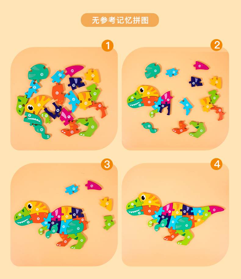 유치원 대형 버클 입체 공룡 퍼즐 3D 동물 퍼즐 아기 조기 교육 교육 계발 장난감 빌딩 블록스토어 가기