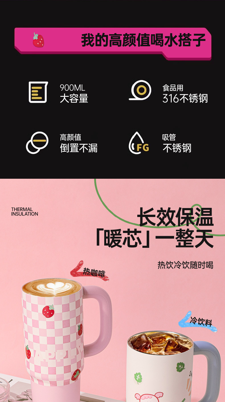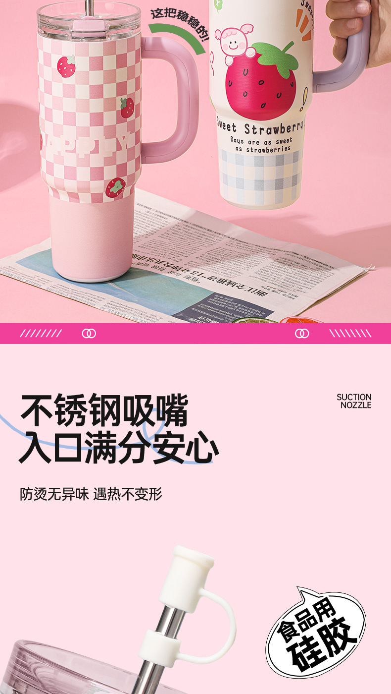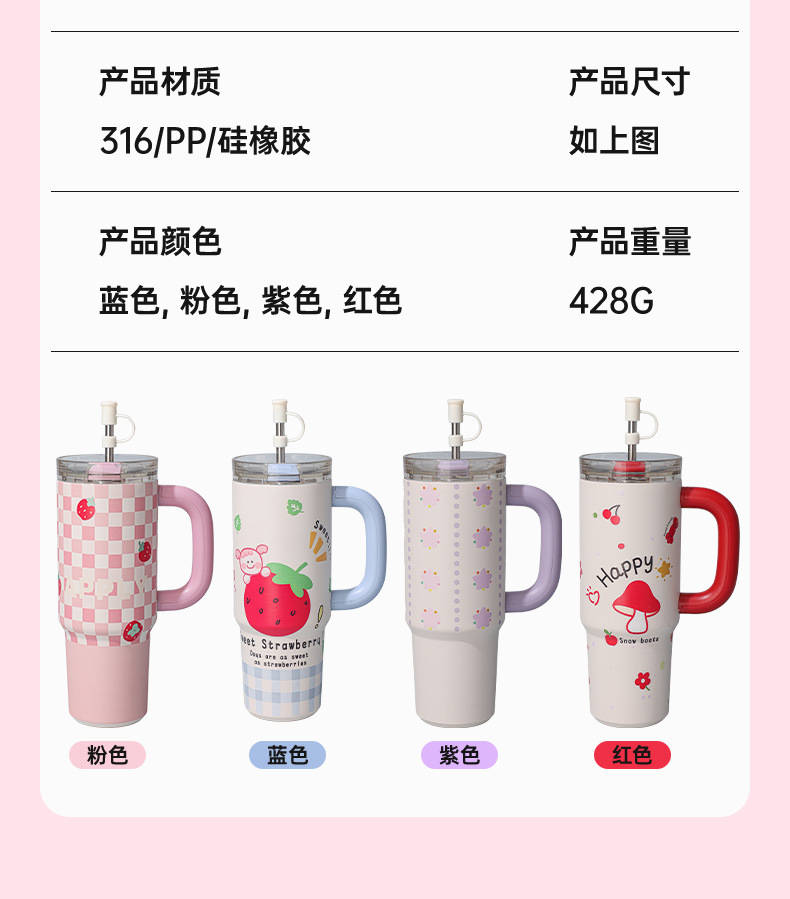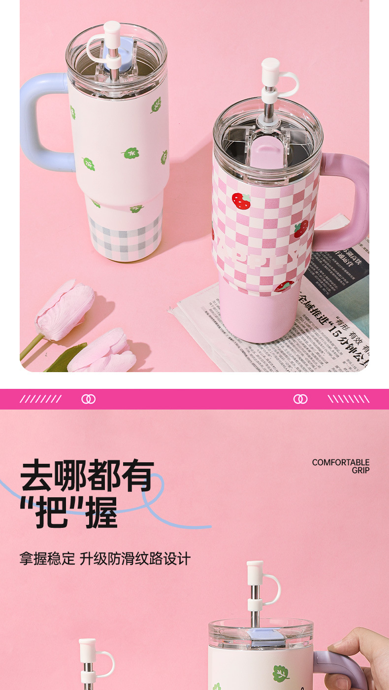 여자를위한 국경 간 새로운 만화 316 스테인레스 스틸 절연 컵, 고급스러운 밀짚 컵, 대용량 손잡이 얼음 컵