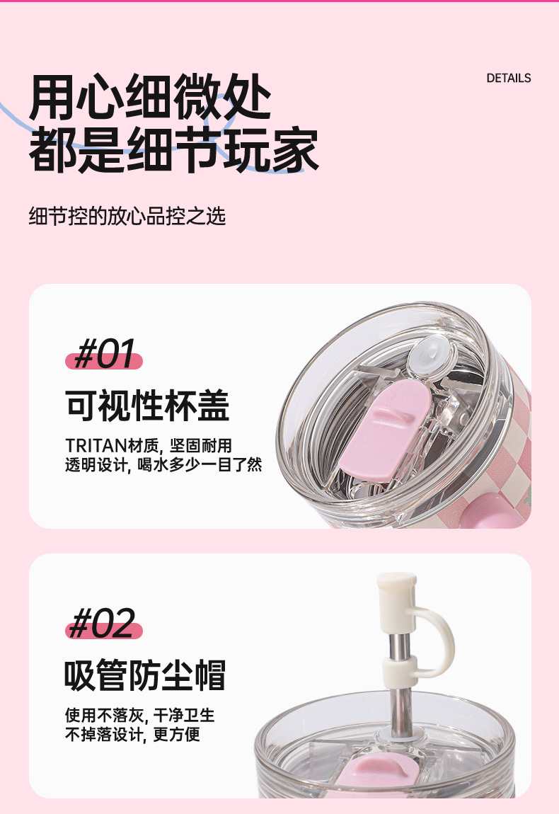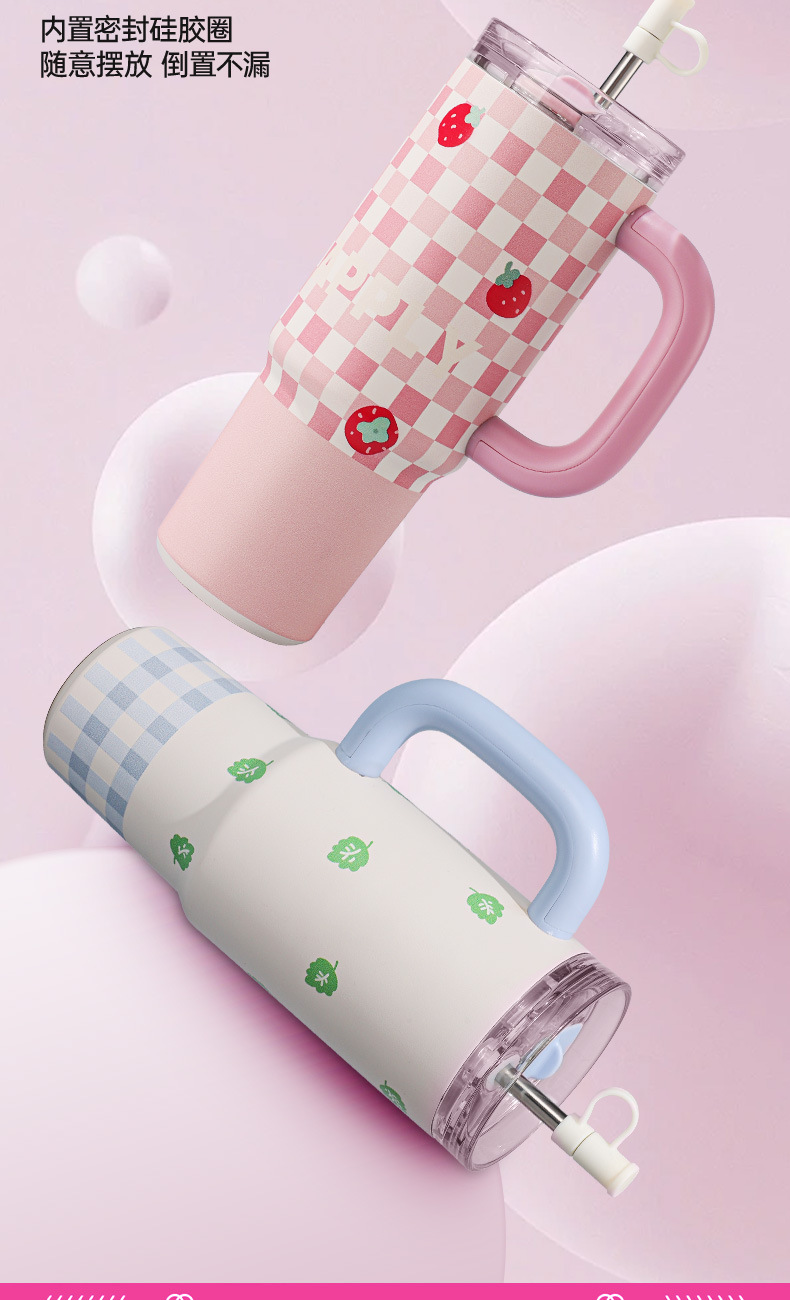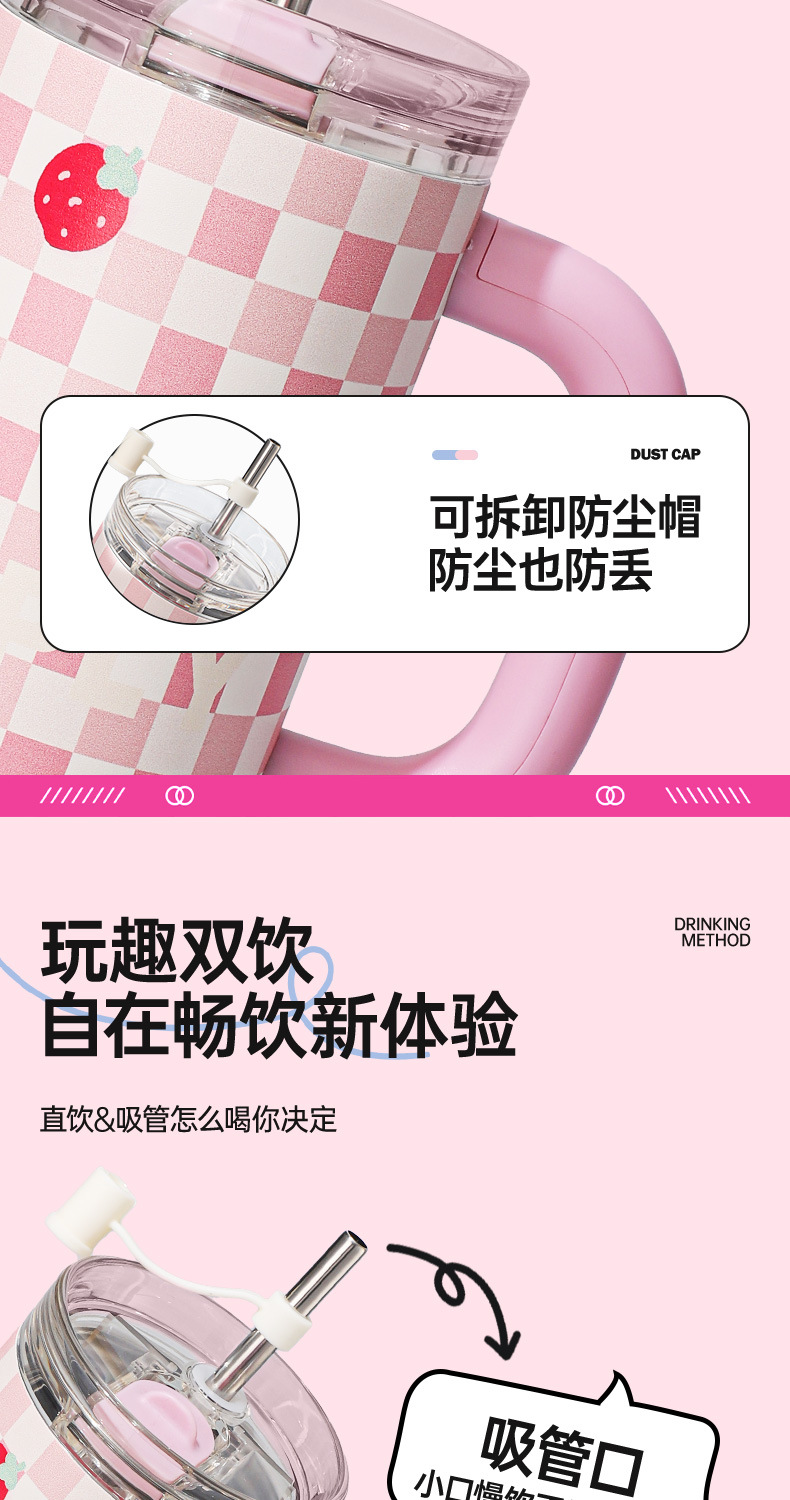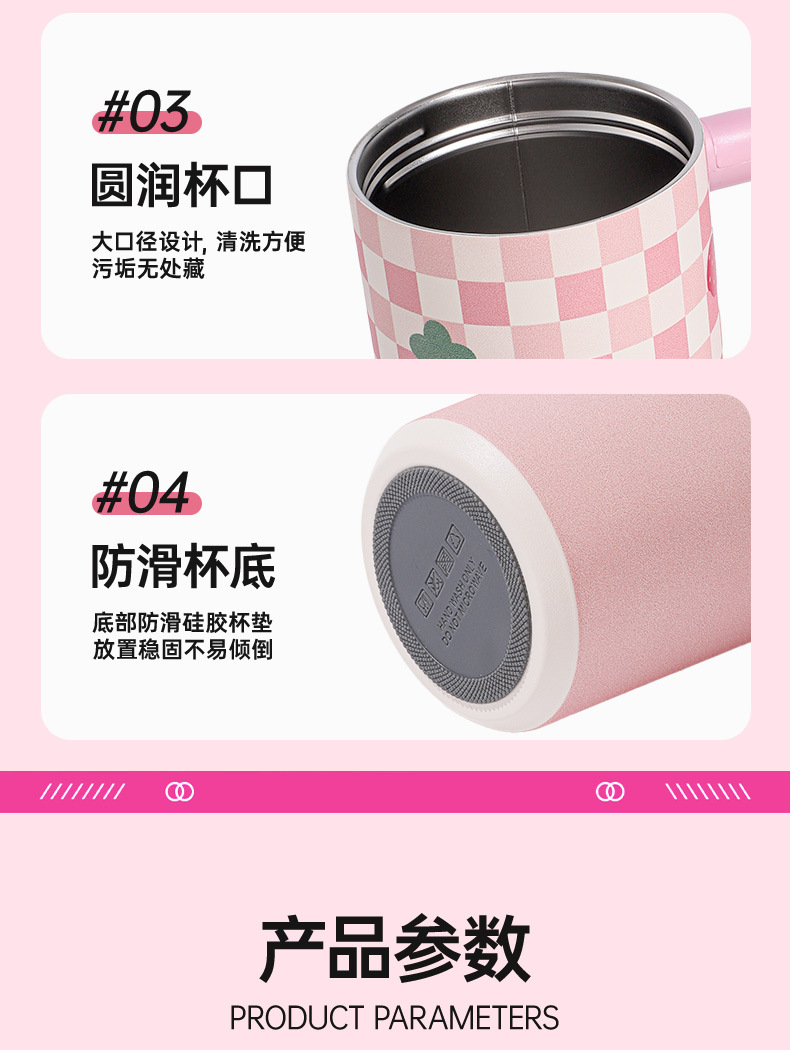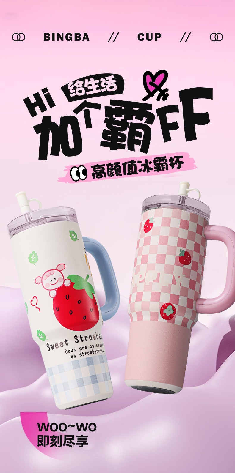 여자를위한 국경 간 새로운 만화 316 스테인레스 스틸 절연 컵, 고급스러운 밀짚 컵, 대용량 손잡이 얼음 컵