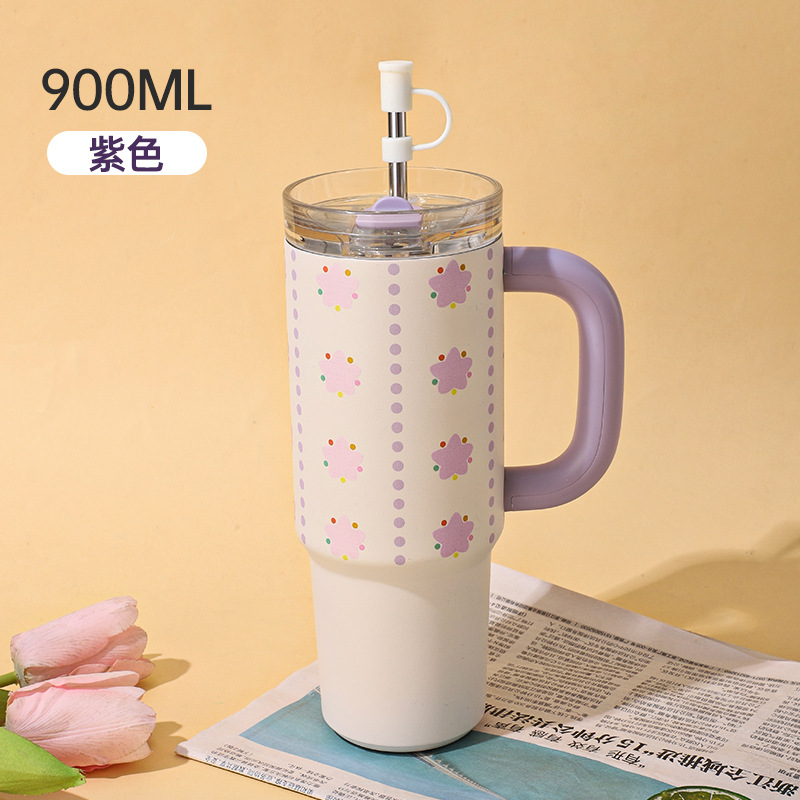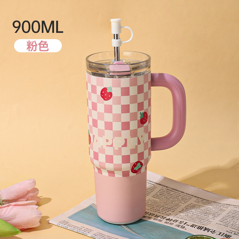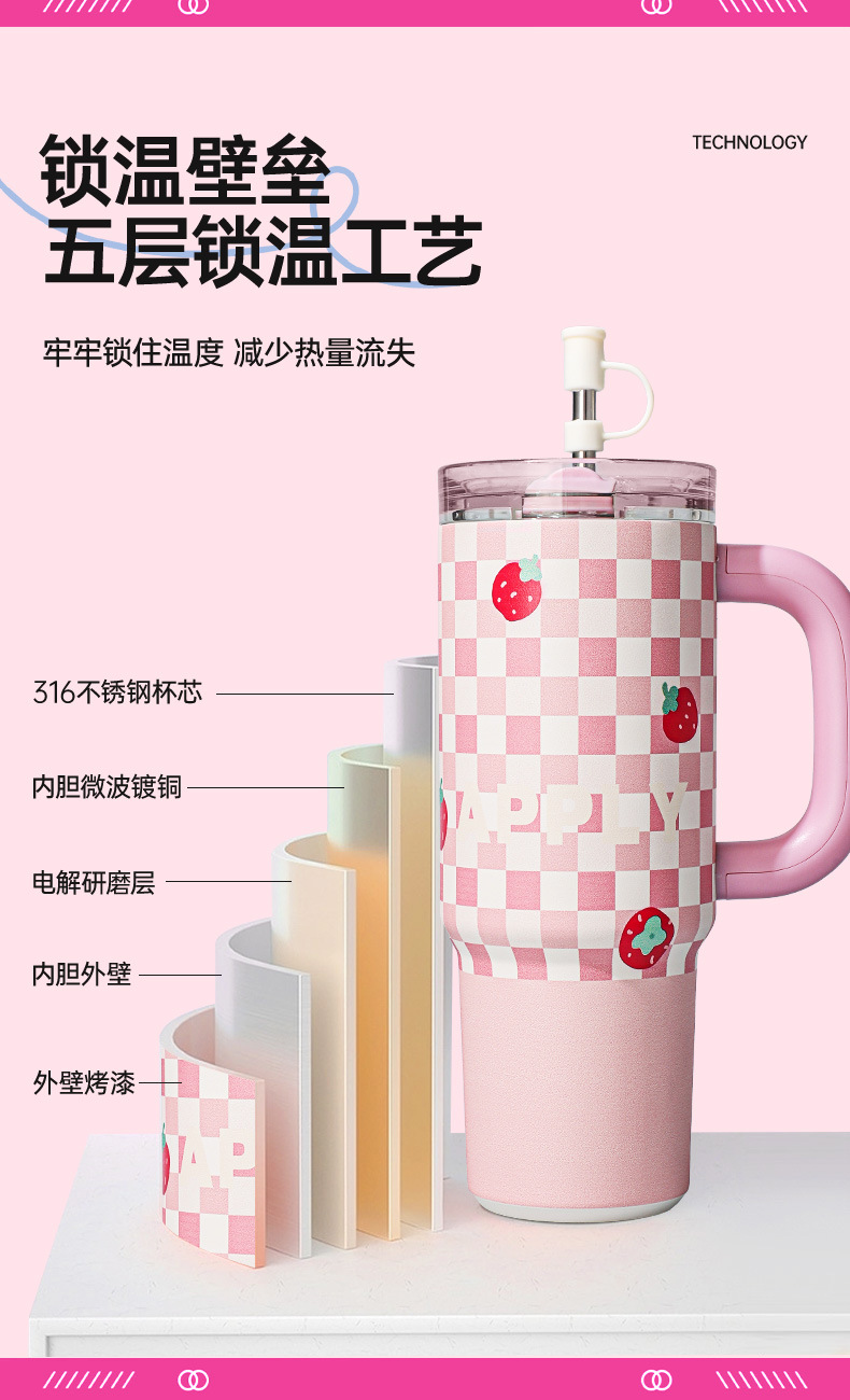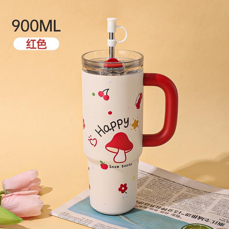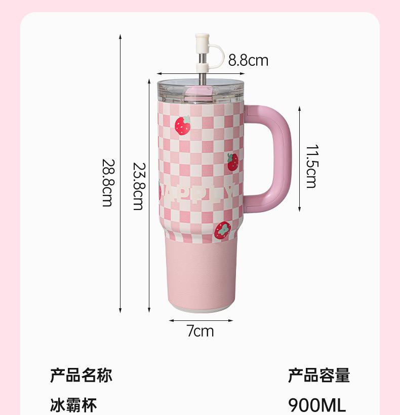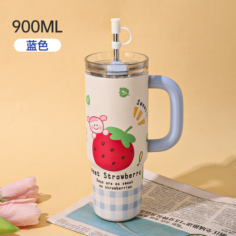여자를위한 국경 간 새로운 만화 316 스테인레스 스틸 절연 컵, 고급스러운 밀짚 컵, 대용량 손잡이 얼음 컵스토어 가기