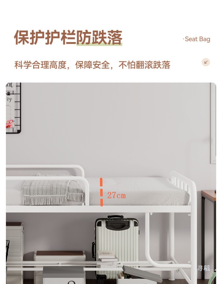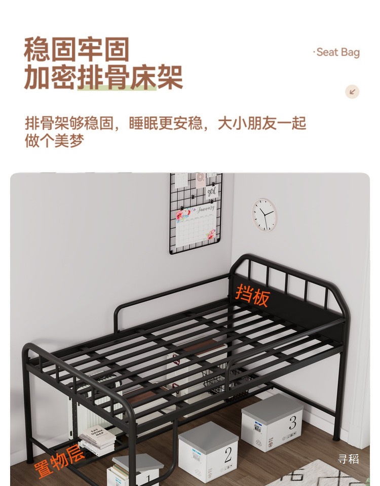 철제 로프트 침대, 소형 아동용 수납형 로프트 침대, 성인용 반고형 침대, 두꺼운 가정용 싱글 철제 프레임 침대