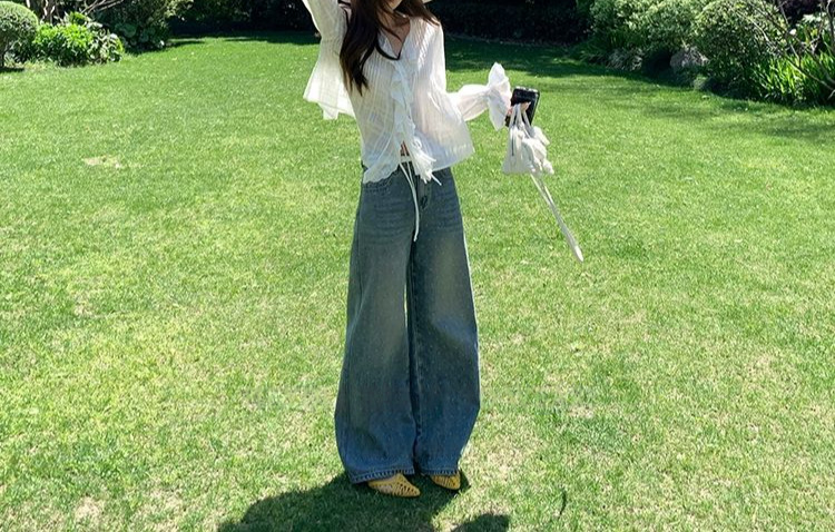 세나홀리데이* 러플자수셔츠 여성 여름 얇은 자외선 차단 에어컨 셔츠 짧은 흰색 셔츠스토어 가기