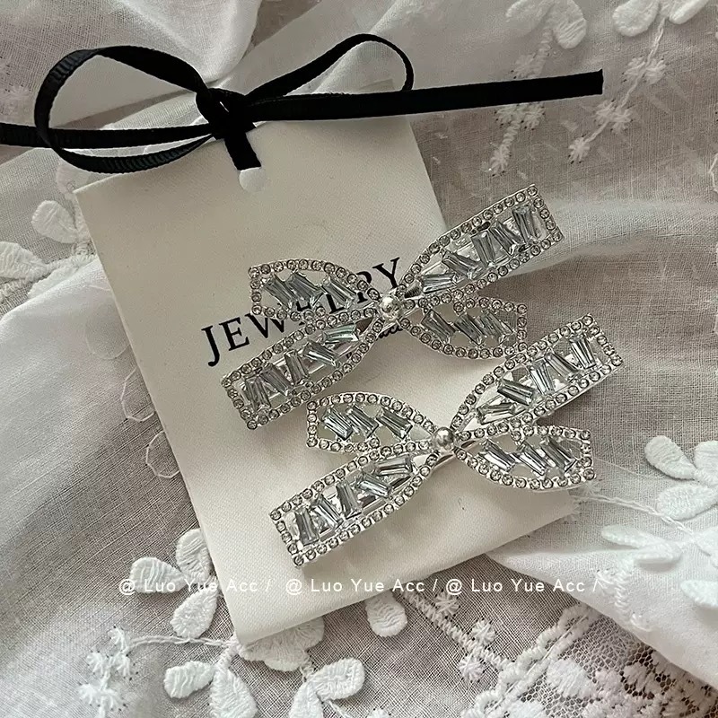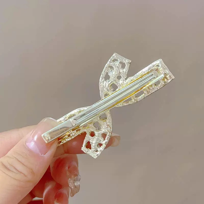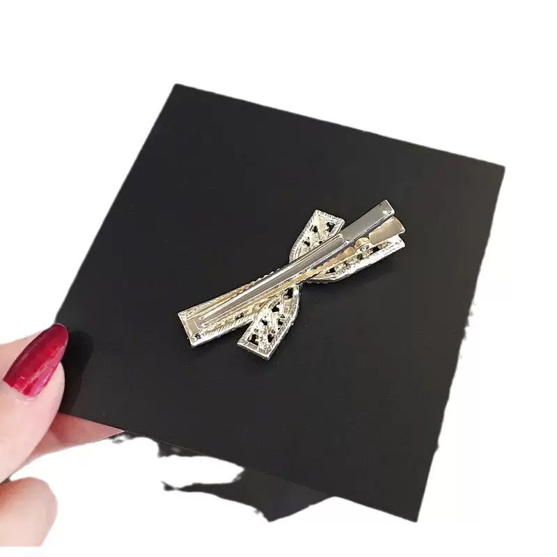 한국의 가벼운 고급 리본 머리핀 사이드 앞머리 클립 인터넷 연예인 크로스 지르콘 덕빌 클립 인터넷 연예인 헤어 액세서리