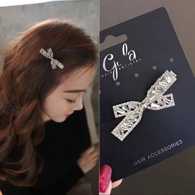 한국의 가벼운 고급 리본 머리핀 사이드 앞머리 클립 인터넷 연예인 크로스 지르콘 덕빌 클립 인터넷 연예인 헤어 액세서리스토어 가기