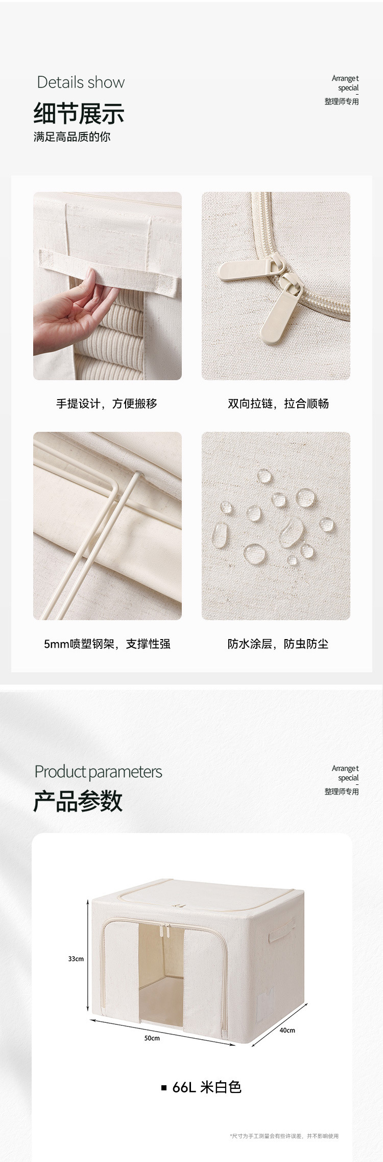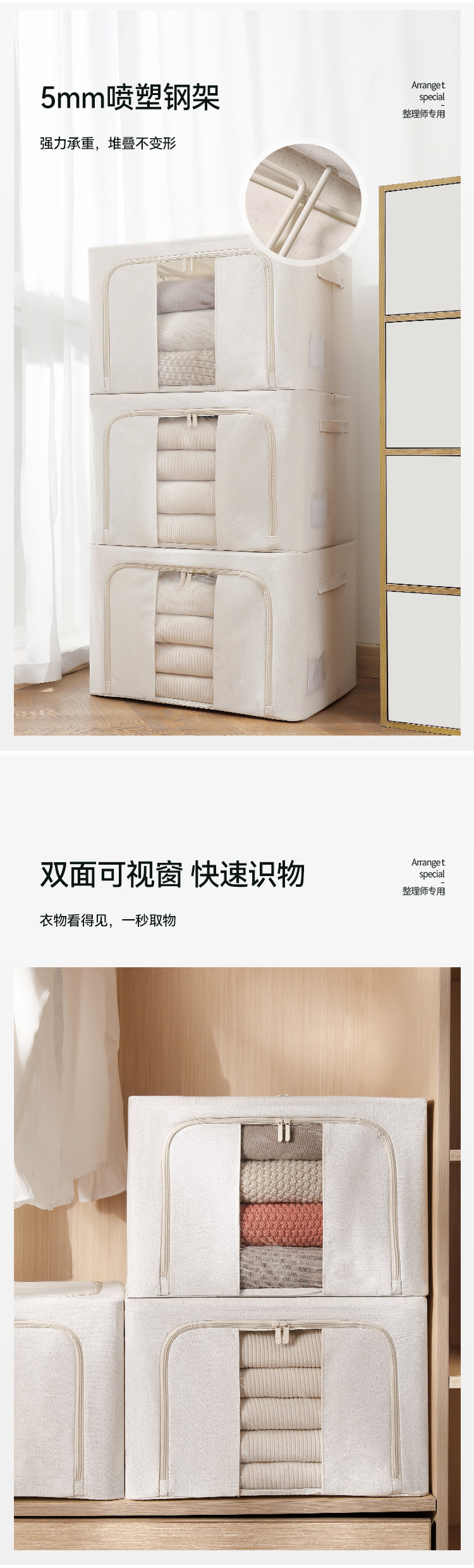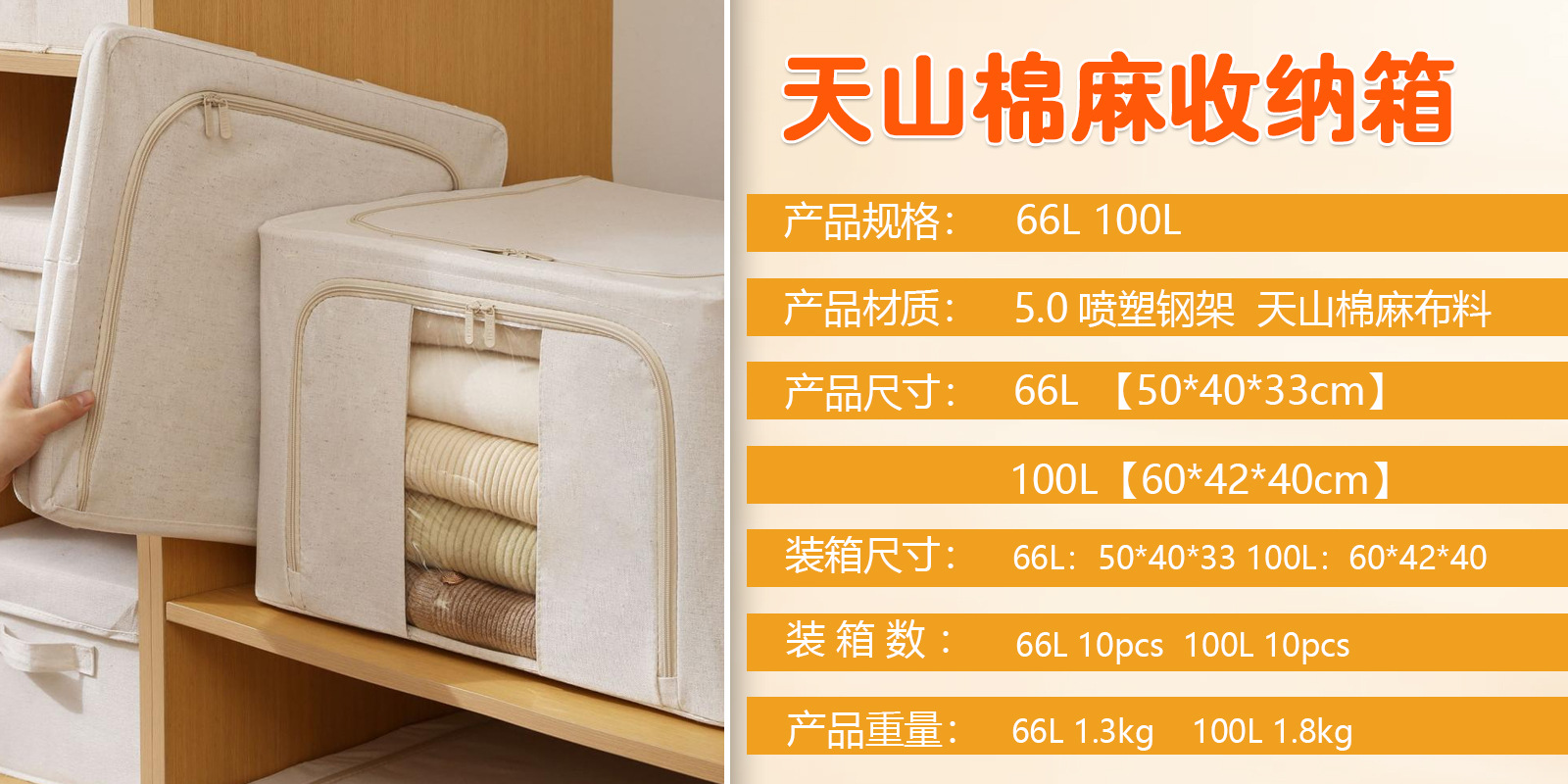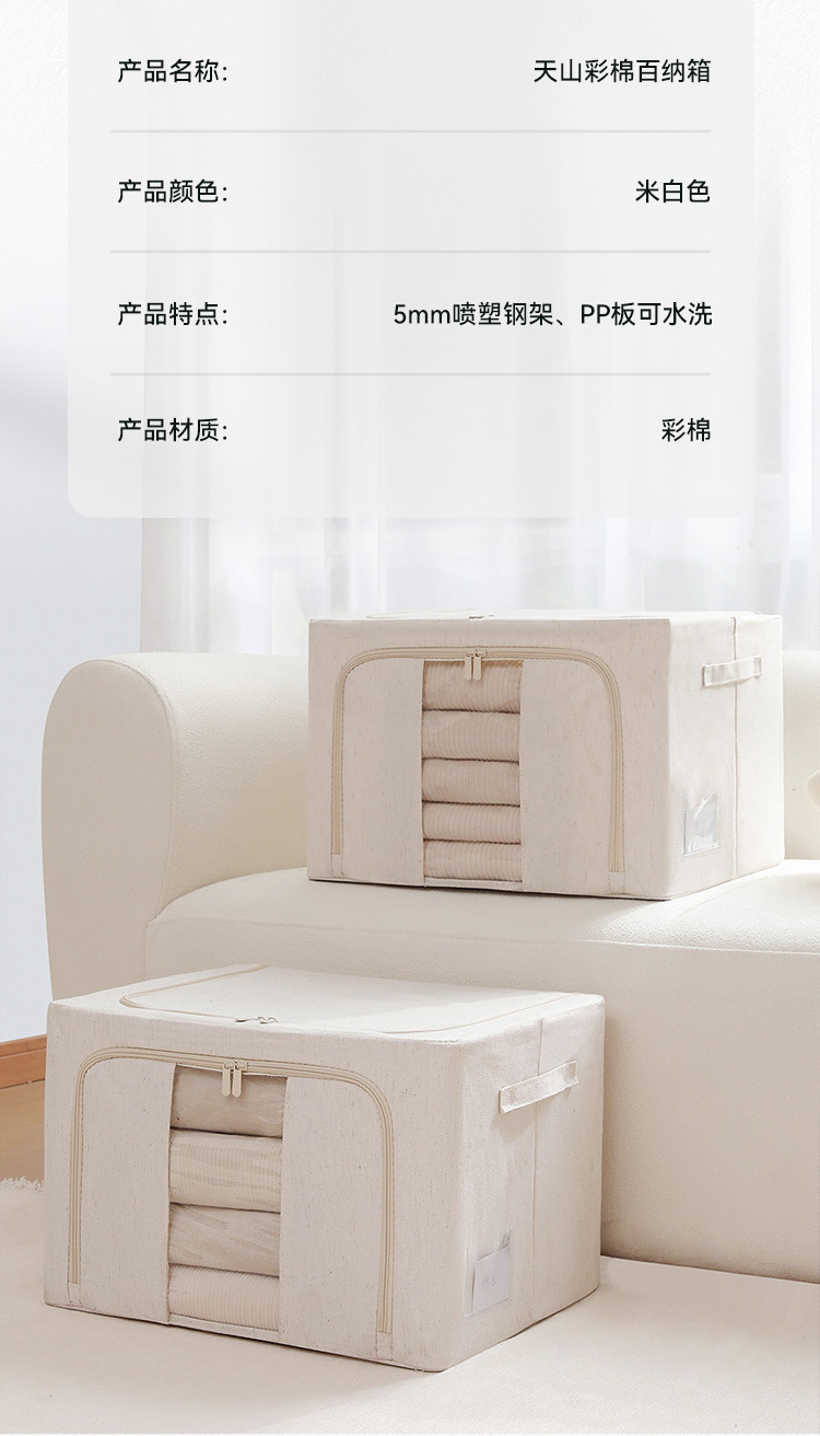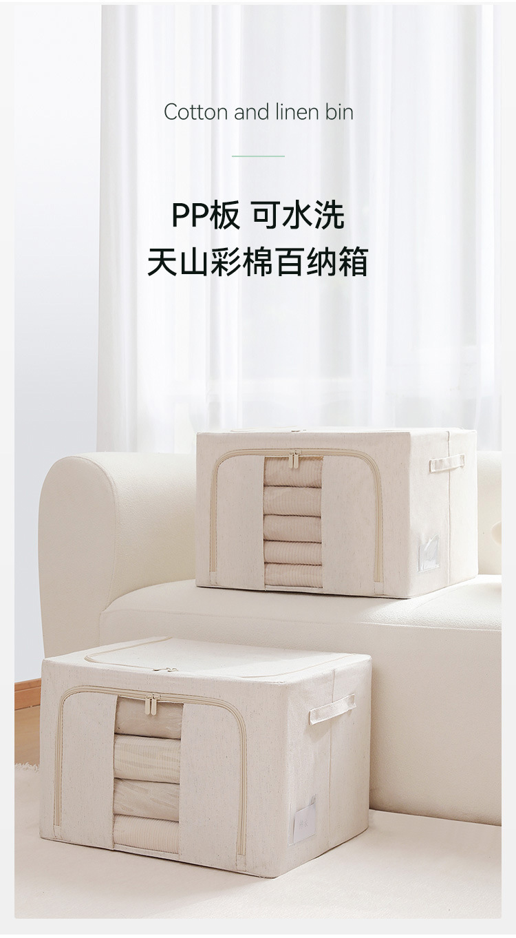 天山棉麻加粗钢架收纳箱家用可折叠衣服收纳盒收纳箱PP板