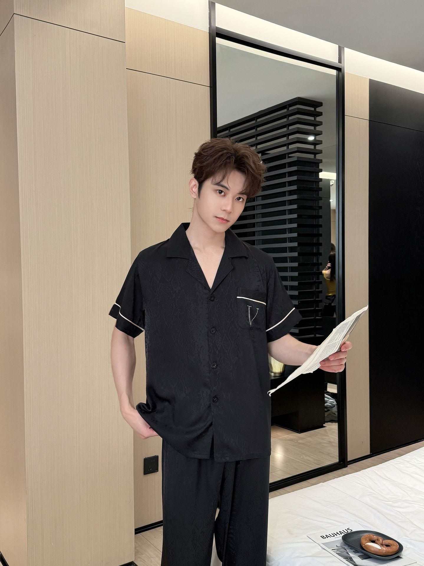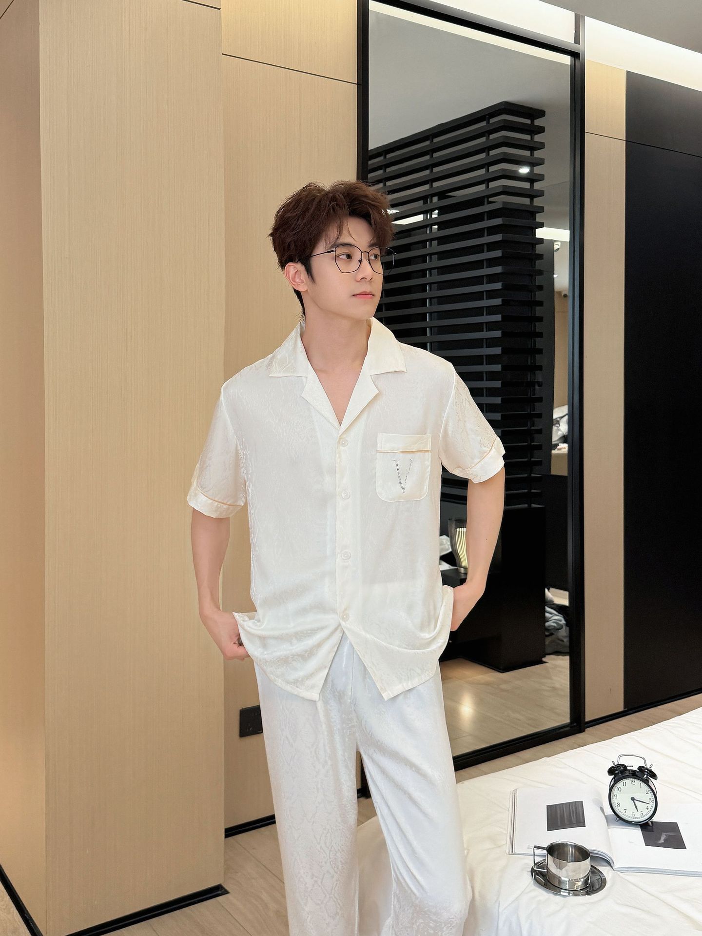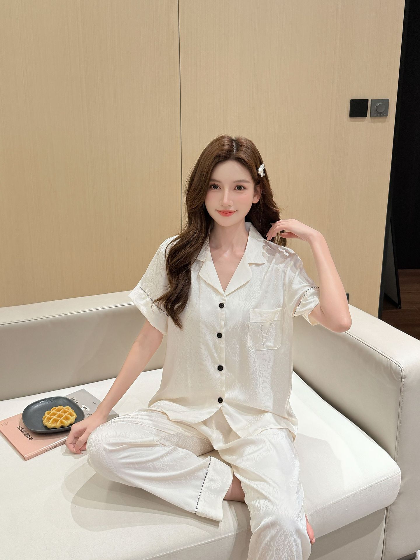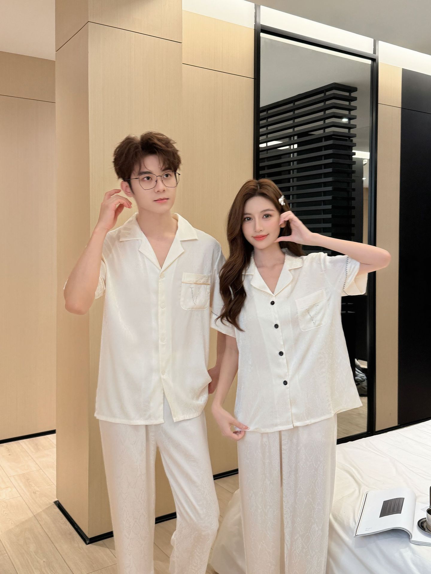 여름 신작 커플 핫 다이아몬드 V 자카드 여성 잠옷 반팔 바지 시크릿 하이 럭셔리 남성 플러스 사이즈 홈웨어