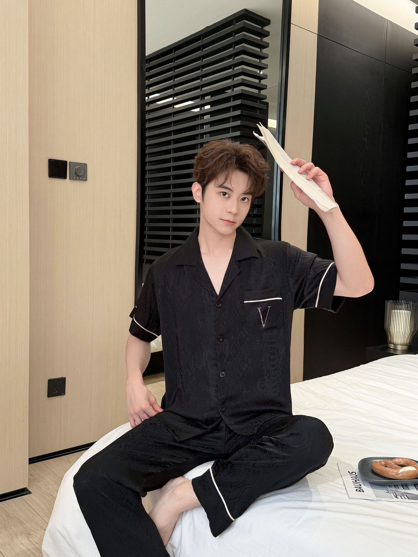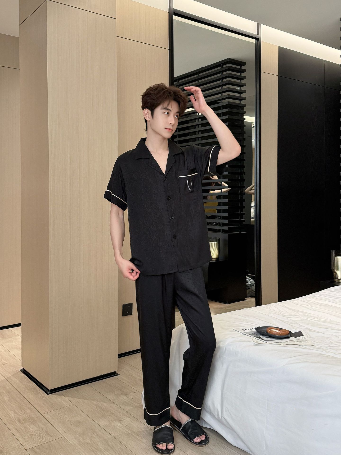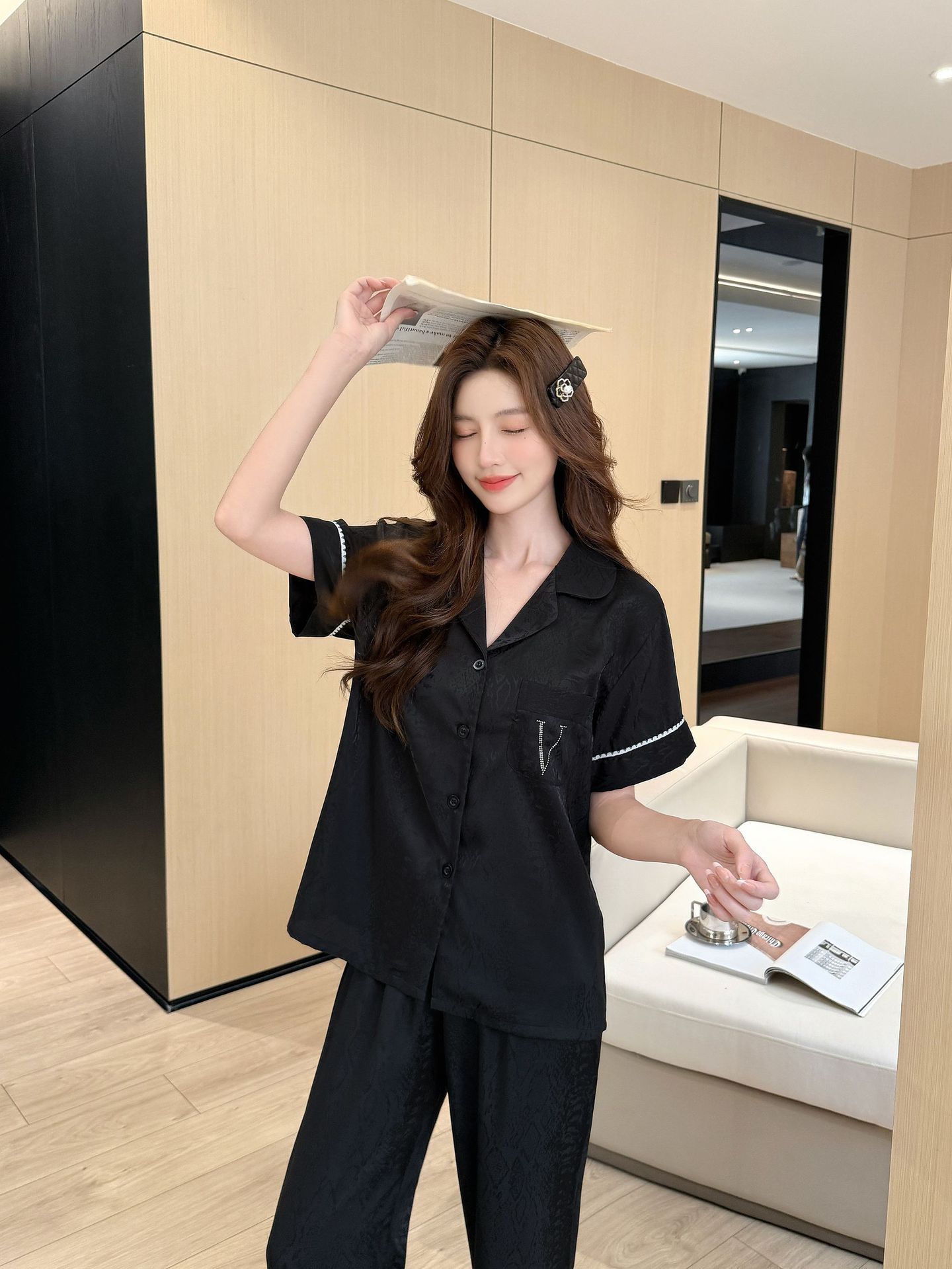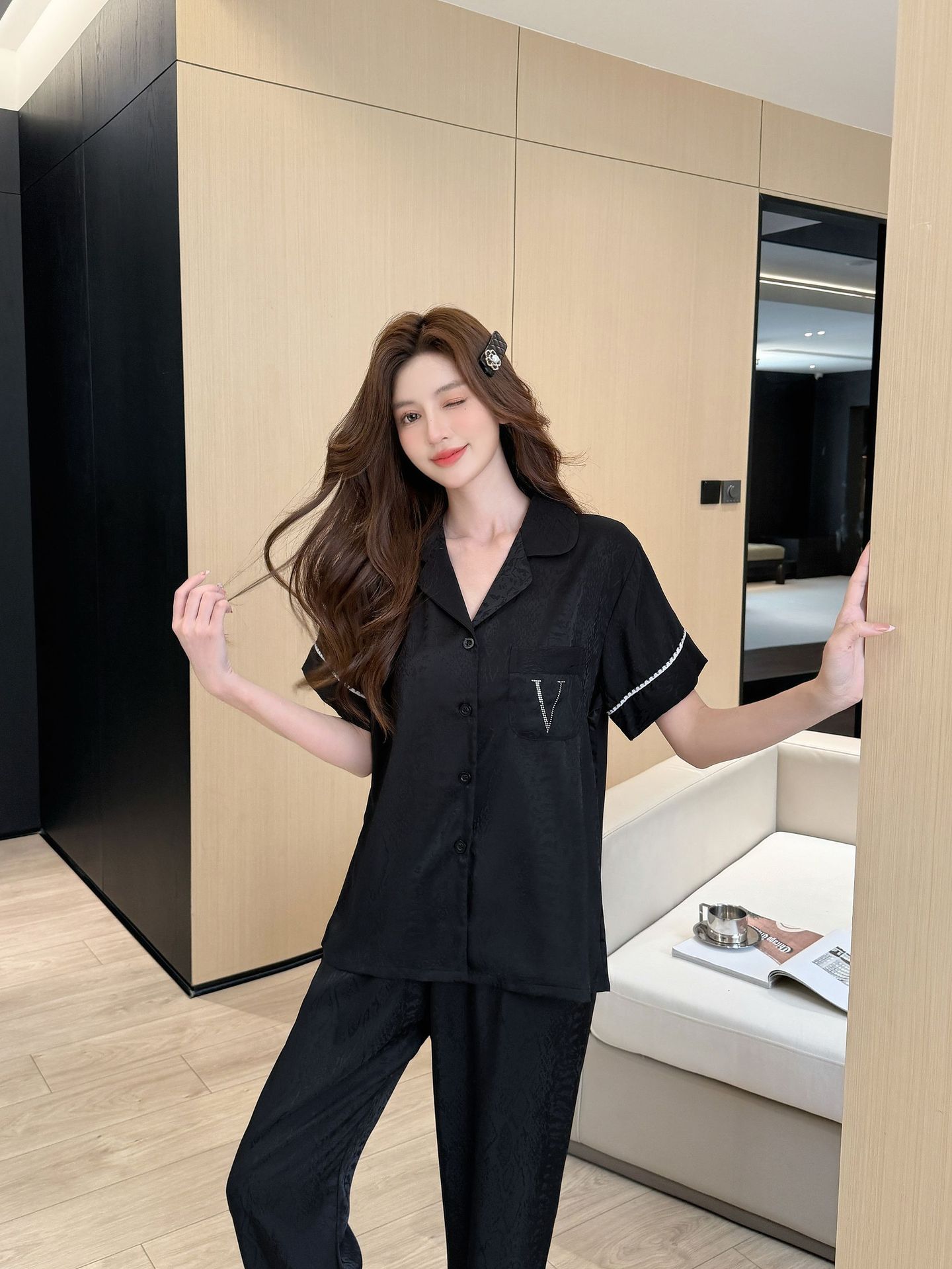• 블랙 자카드 핫 다이아몬드 V [반팔,바지]