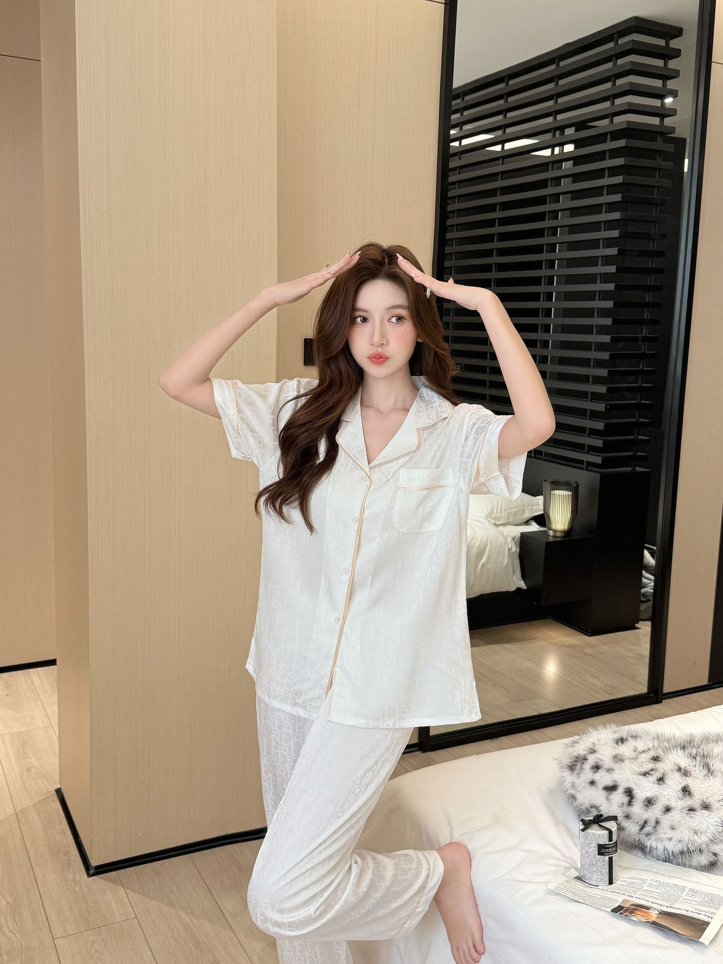 여름 신작 커플 핫 다이아몬드 V 자카드 여성 잠옷 반팔 바지 시크릿 하이 럭셔리 남성 플러스 사이즈 홈웨어스토어 가기