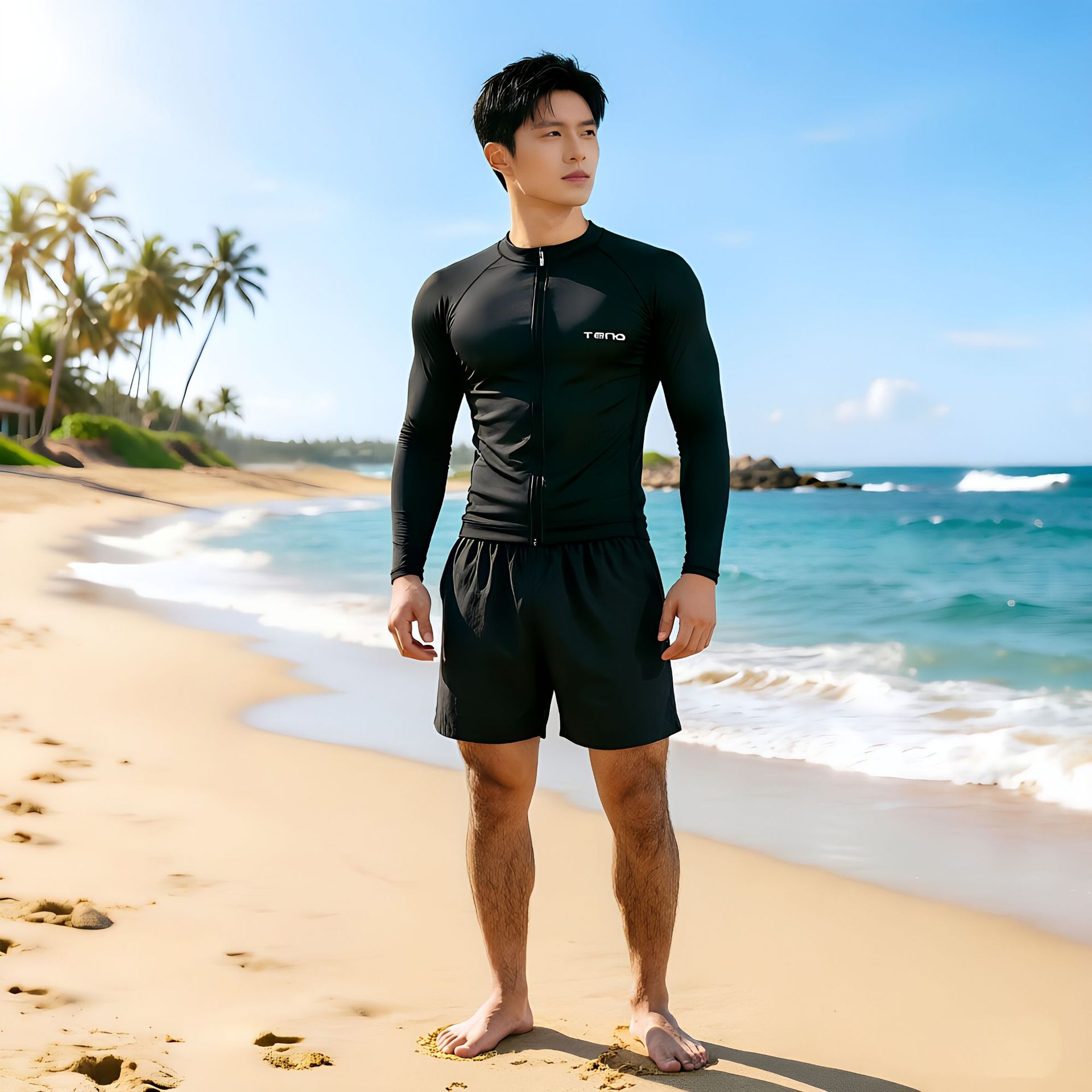 • 검정색 상의 + 9부 바지 + 주머니 달린 수영복