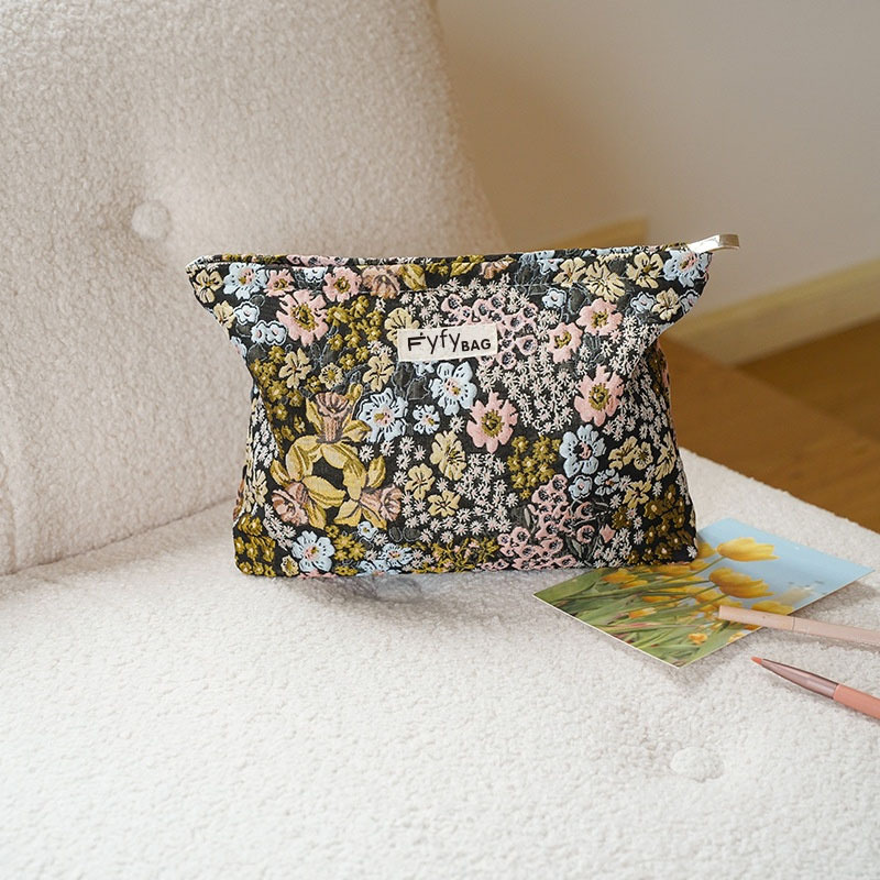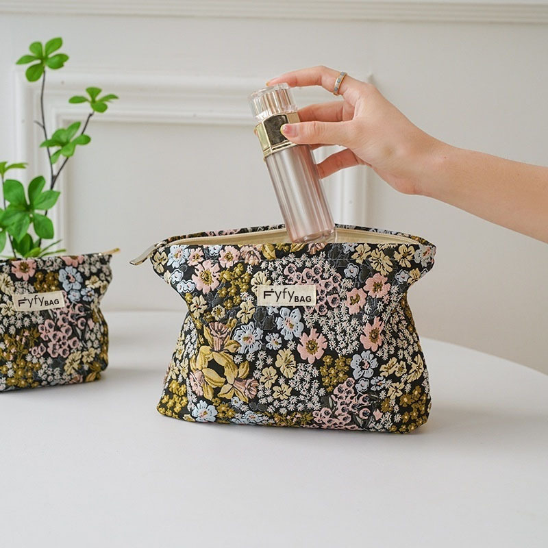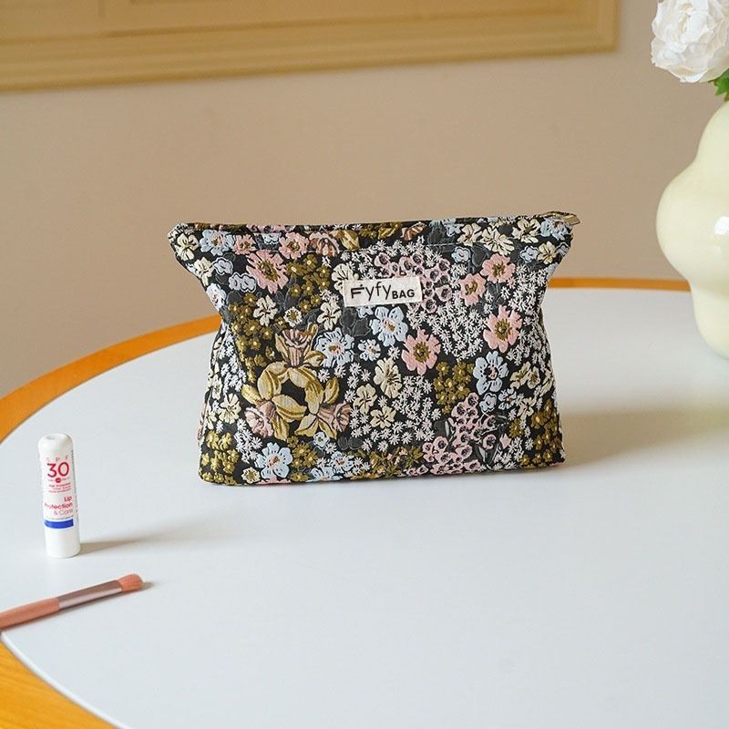 국경 간 작은 신선한 검은 꽃 화장품 가방 휴대용 스킨 케어 제품 보관 가방 여행 세면 용품 가방 라이너 가방