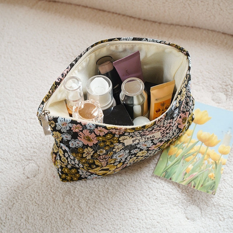 국경 간 작은 신선한 검은 꽃 화장품 가방 휴대용 스킨 케어 제품 보관 가방 여행 세면 용품 가방 라이너 가방스토어 가기
