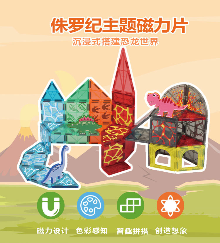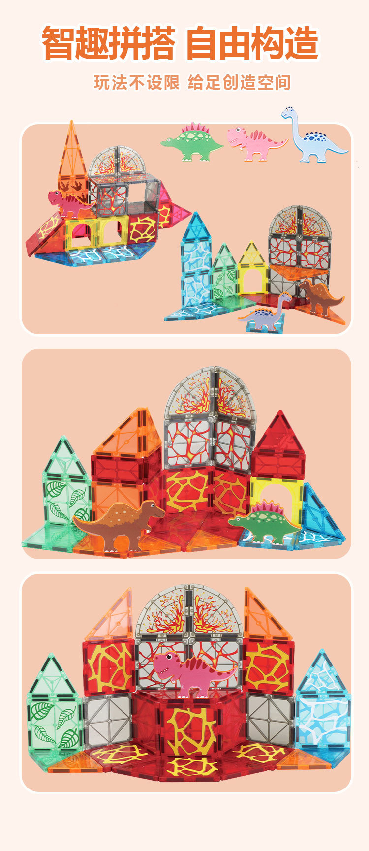 국경 간 자기 시트 인쇄 컬러 창 시트 어린이 교육 장난감 조립 자기 빌딩 블록 공룡 세트 빌딩 시트스토어 가기
