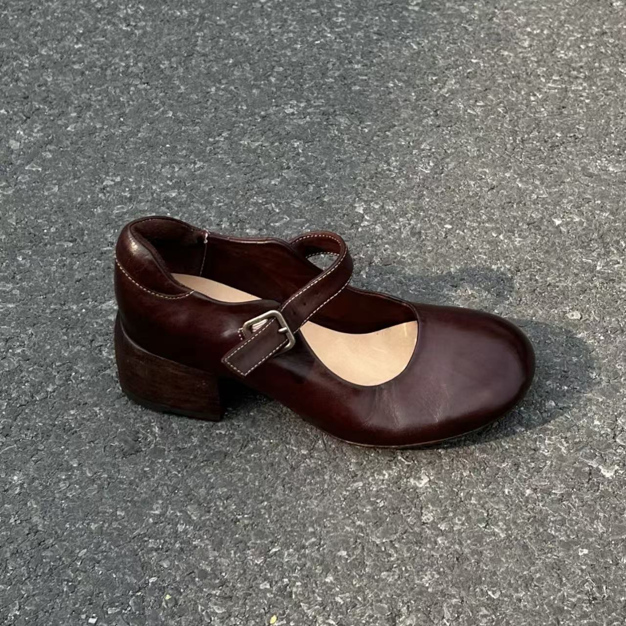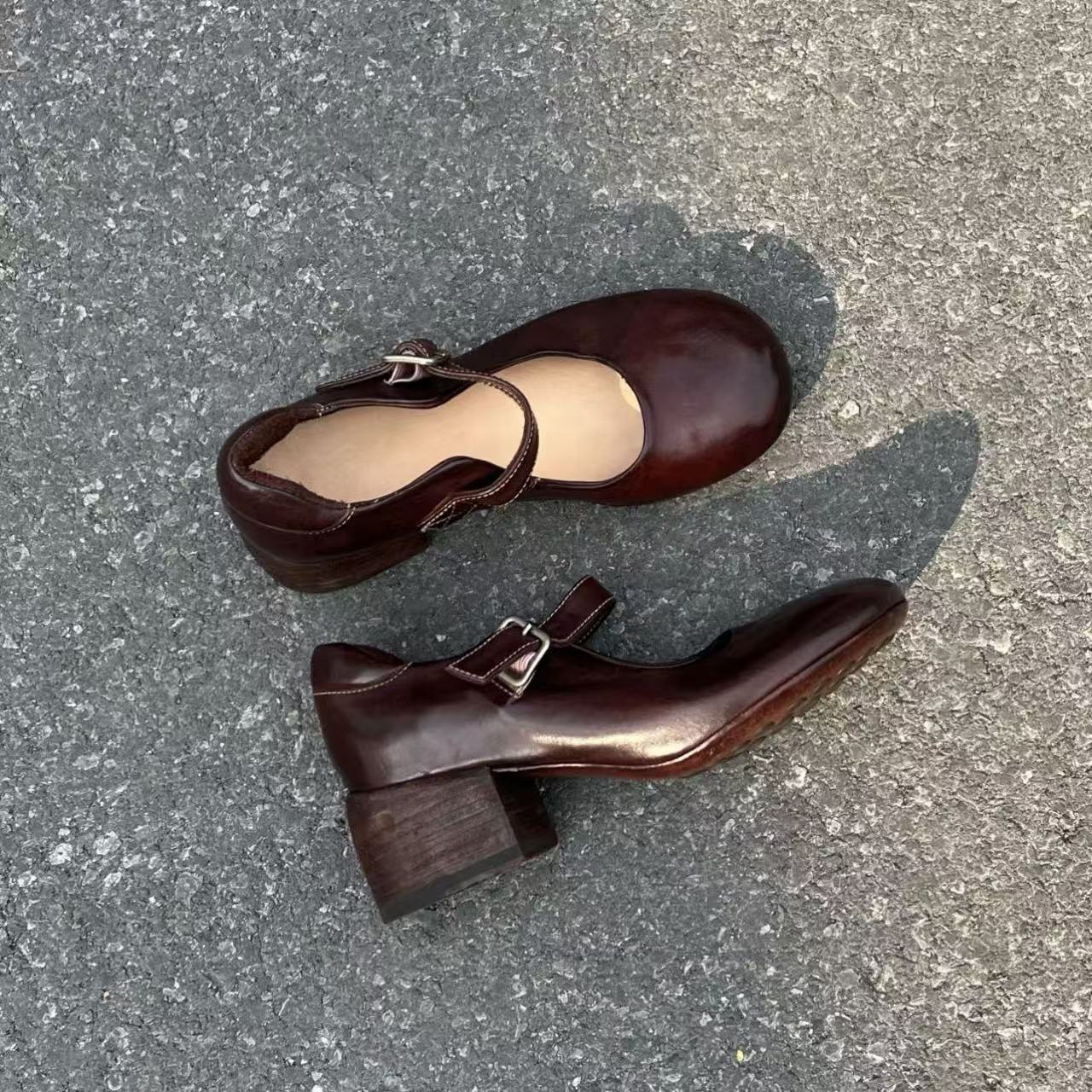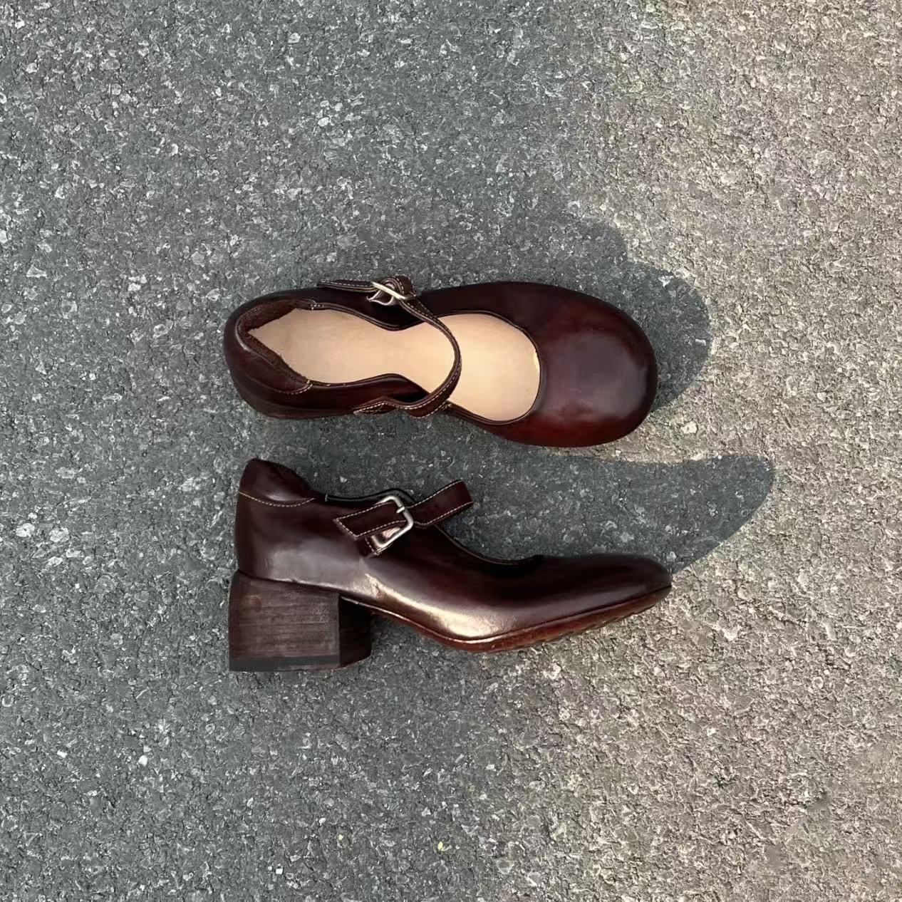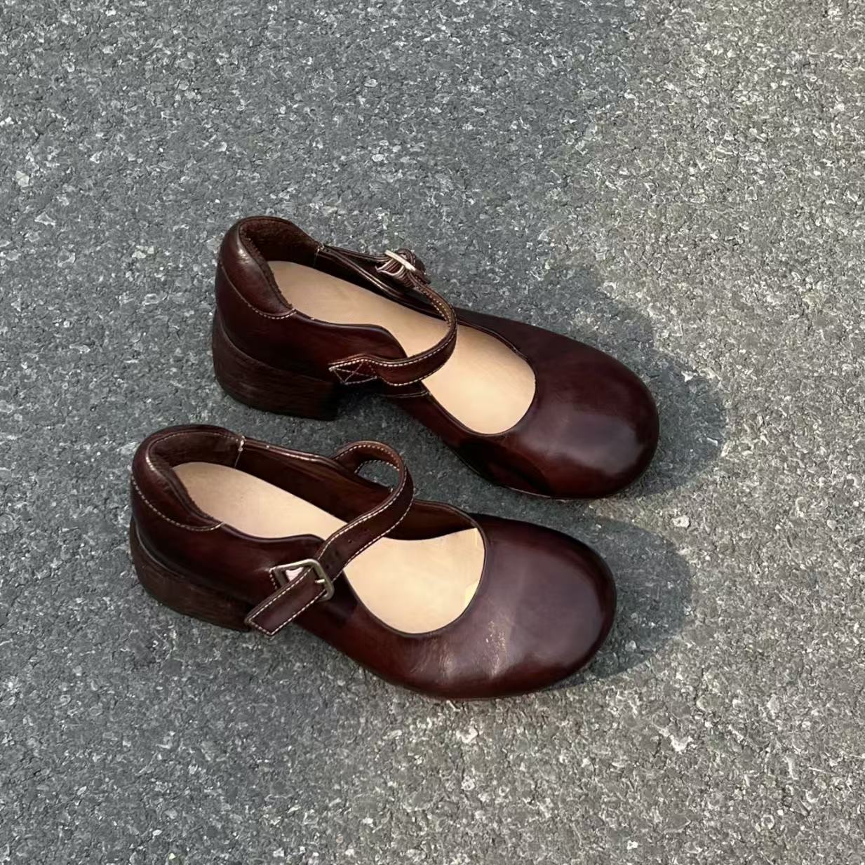 여름 신상품! 여성을 위한 복고풍 라운드 토 원 스트랩 메리 제인 신발 2025 문학적 기질 얕은 입 부드러운 밑창 작은 가죽 신발스토어 가기
