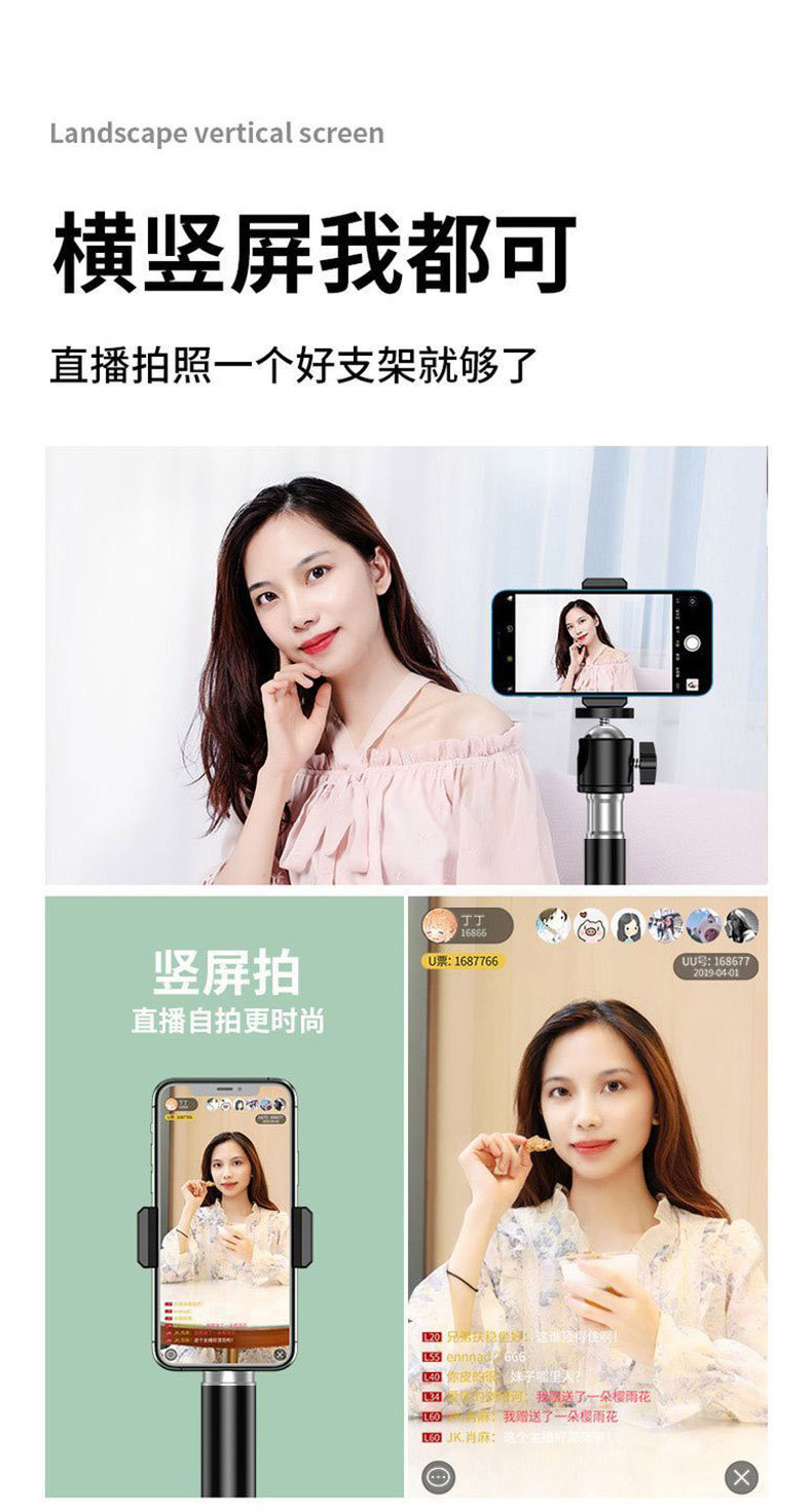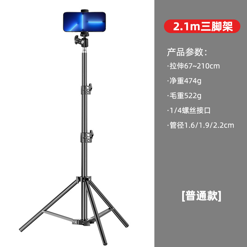 휴대폰 라이브 방송 스탠드, 다기능 자유로운 리프팅, 게으른 사람들이 비디오를 촬영하고 사진을 찍을 수 있는 특별한 2.1m 두꺼운 삼각대