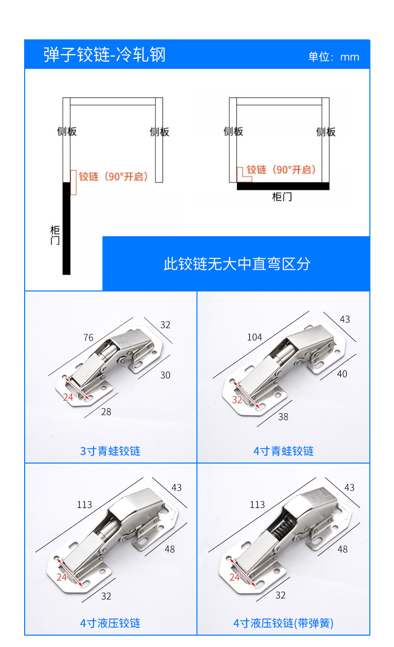 • 4inch 유압식 구멍 없는 힌지 대량(나사는 포함되지 않음)