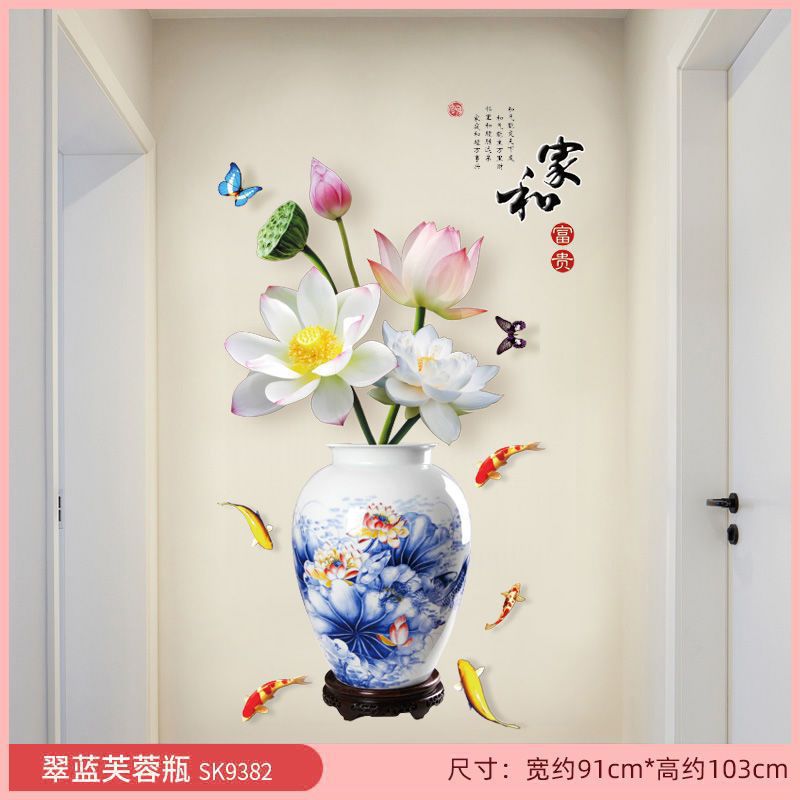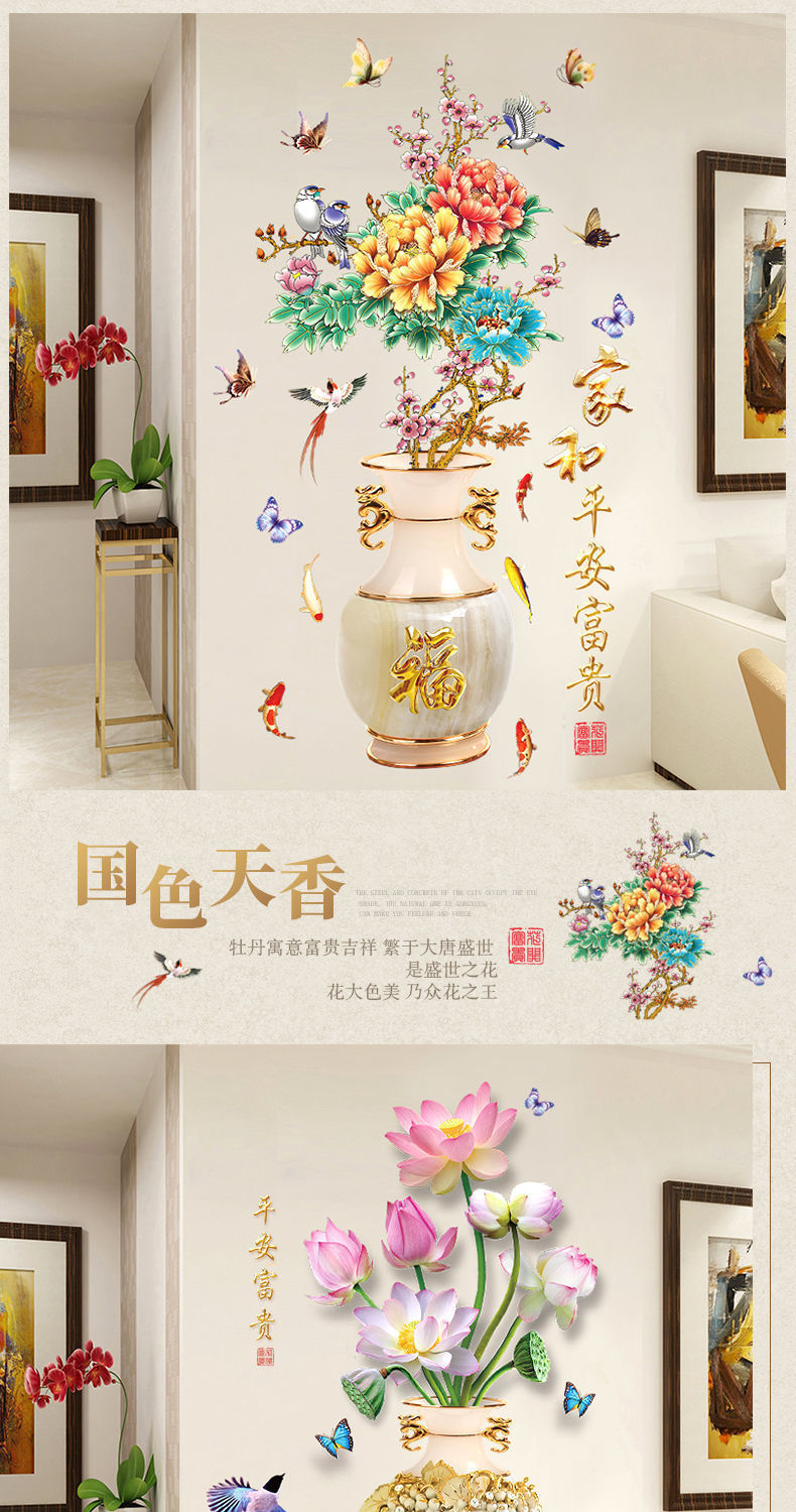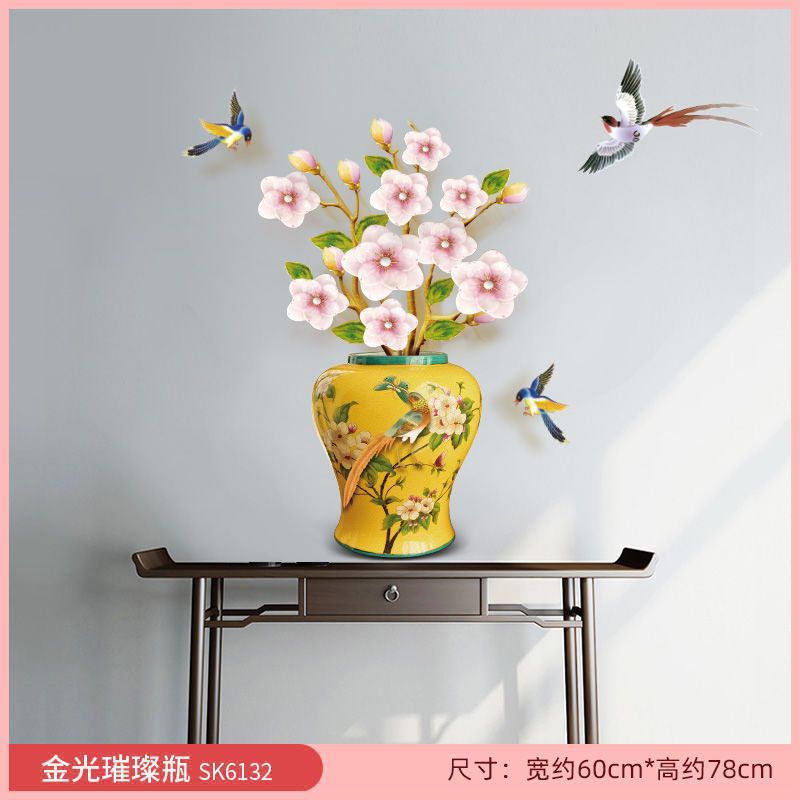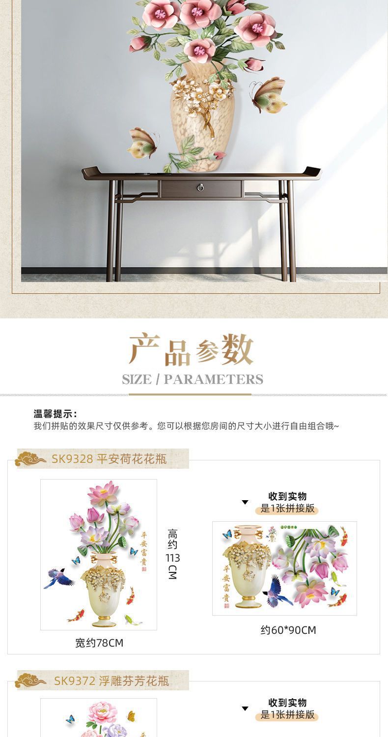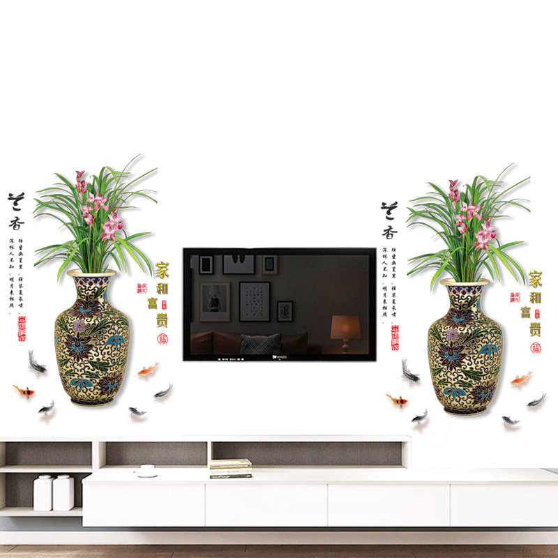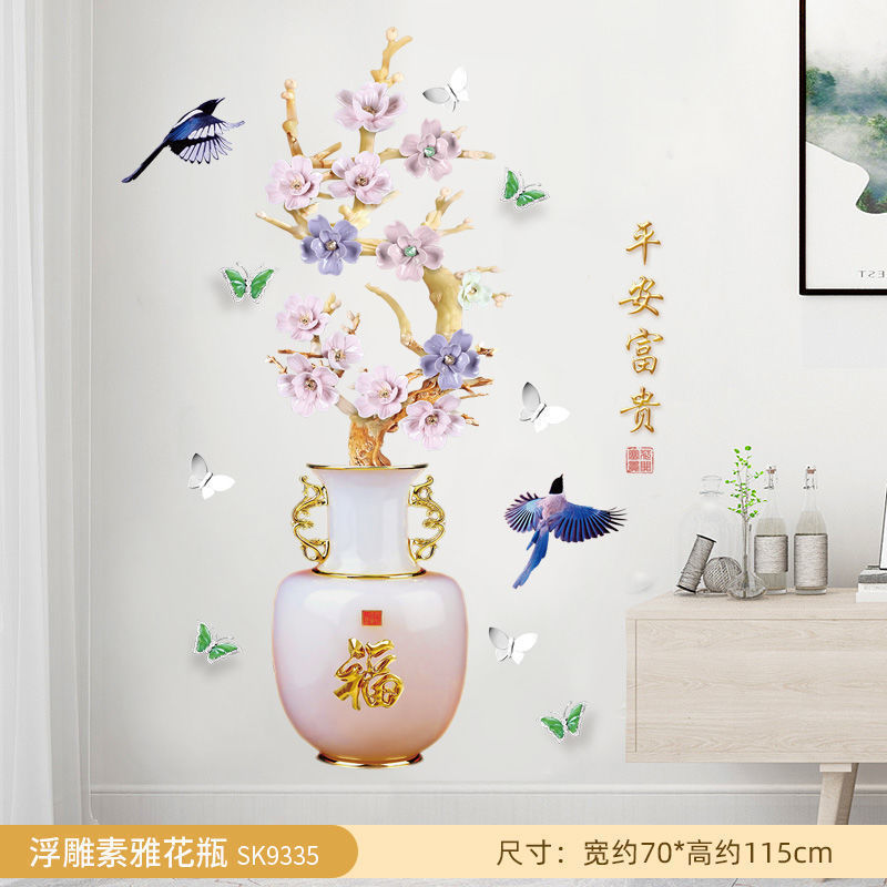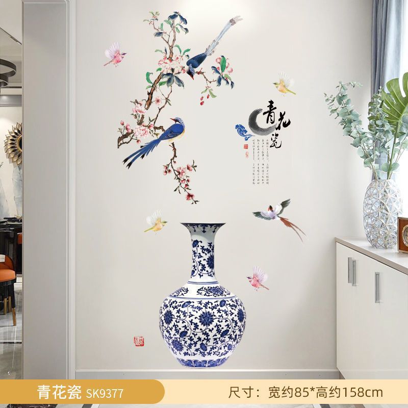 자기 접착 벽 스티커 중국 스타일 벽 스티커 입구 벽 장식 꽃병 스티커 룸 장식 TV 배경 벽 벽지