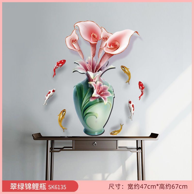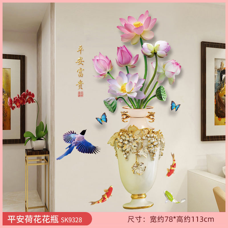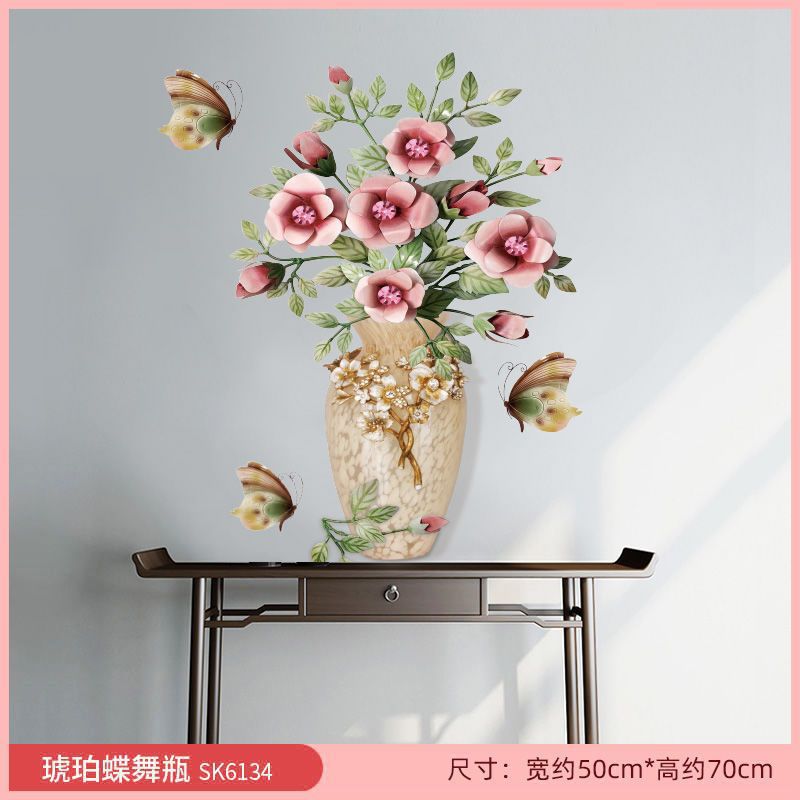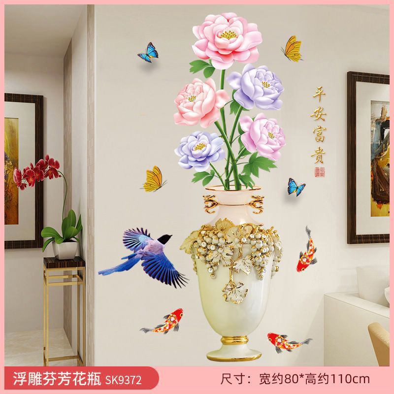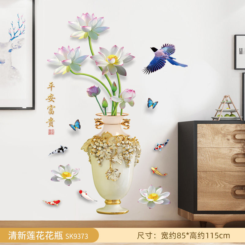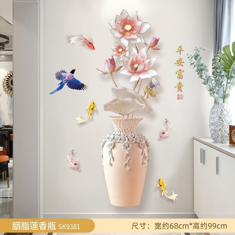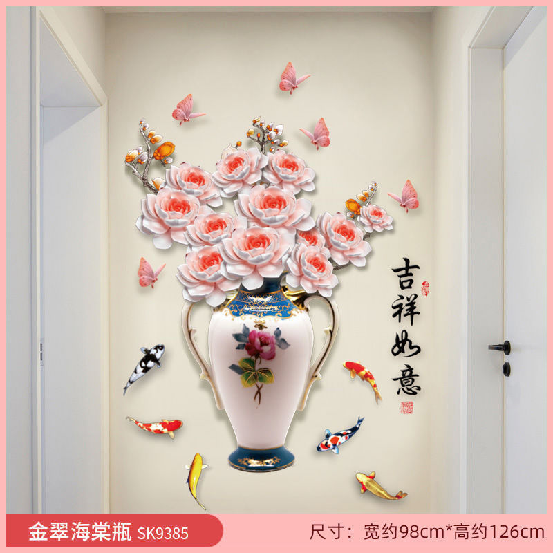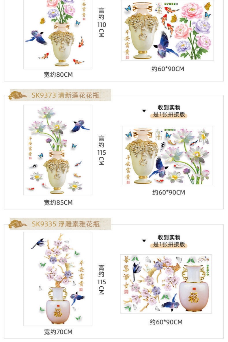 자기 접착 벽 스티커 중국 스타일 벽 스티커 입구 벽 장식 꽃병 스티커 룸 장식 TV 배경 벽 벽지
