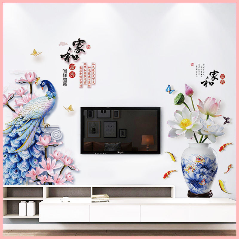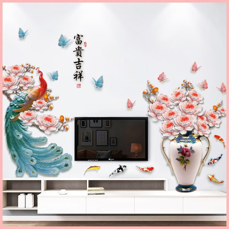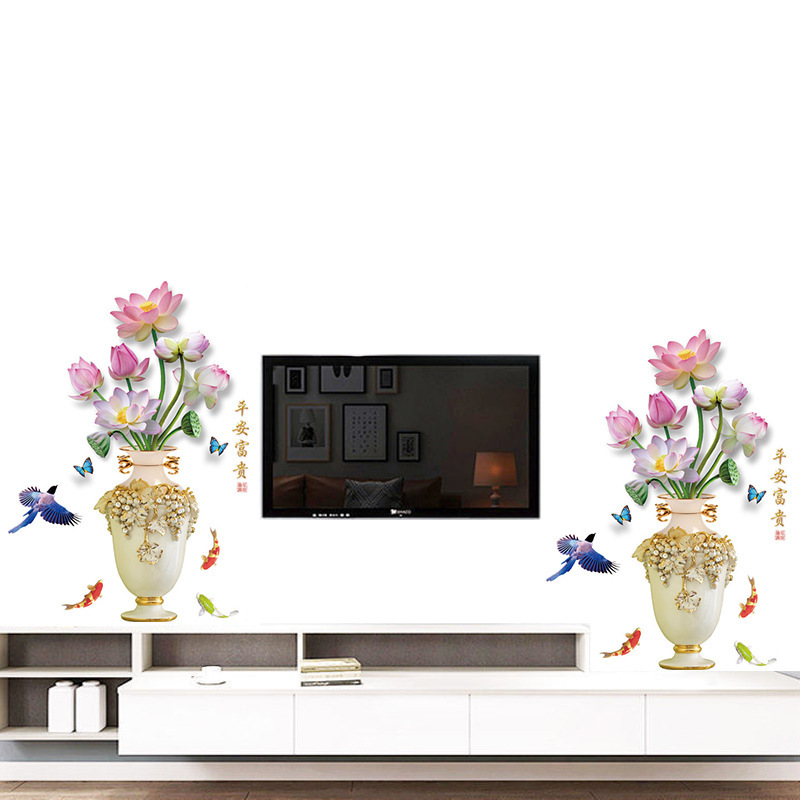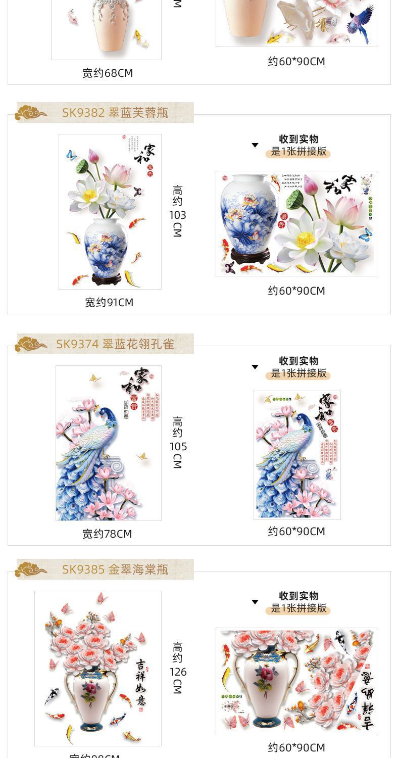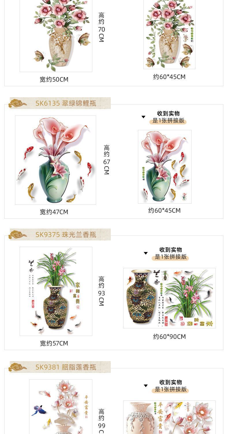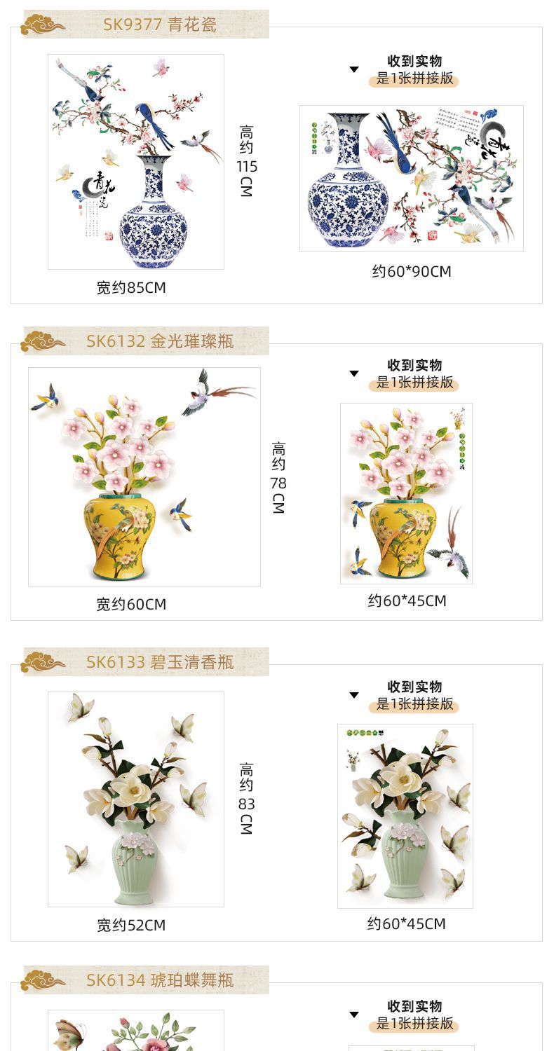 자기 접착 벽 스티커 중국 스타일 벽 스티커 입구 벽 장식 꽃병 스티커 룸 장식 TV 배경 벽 벽지