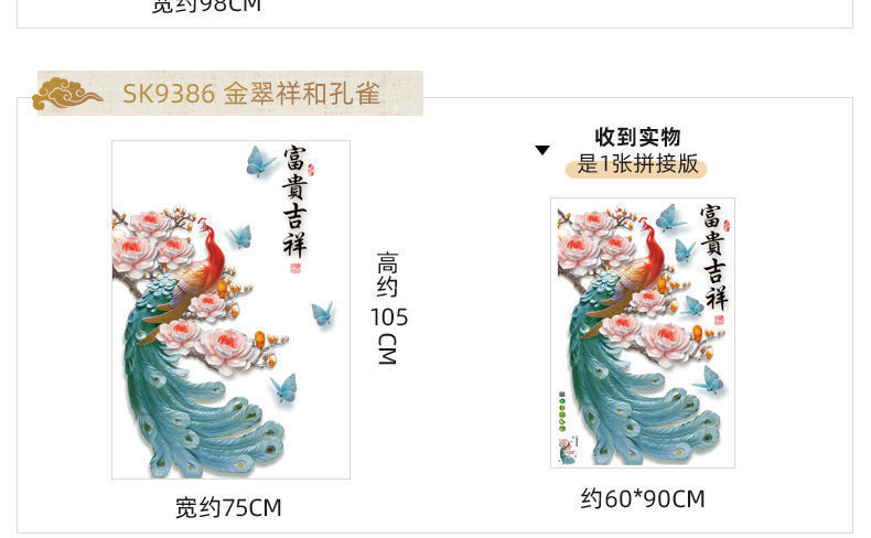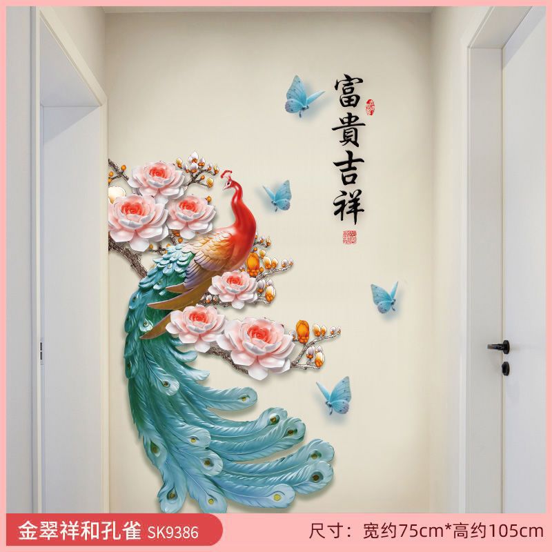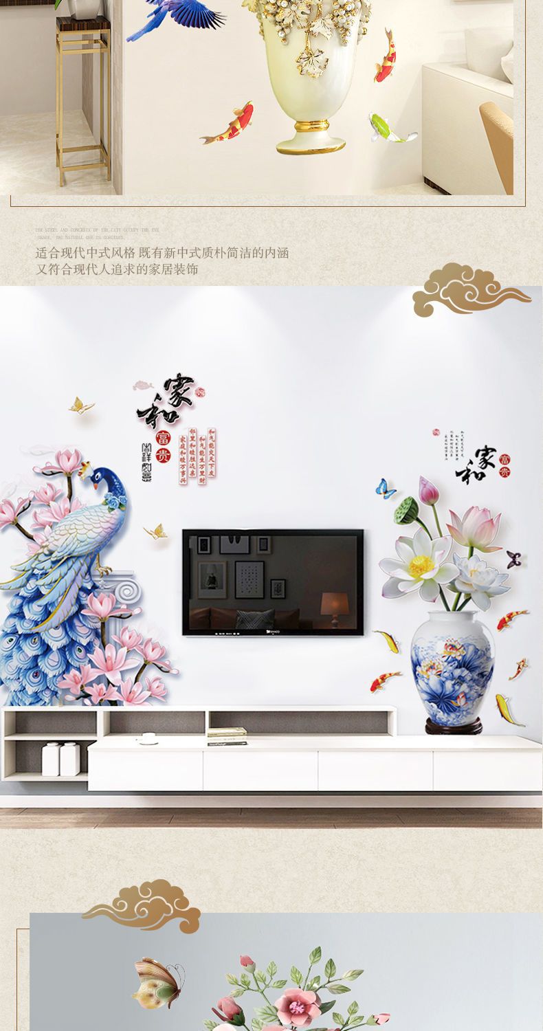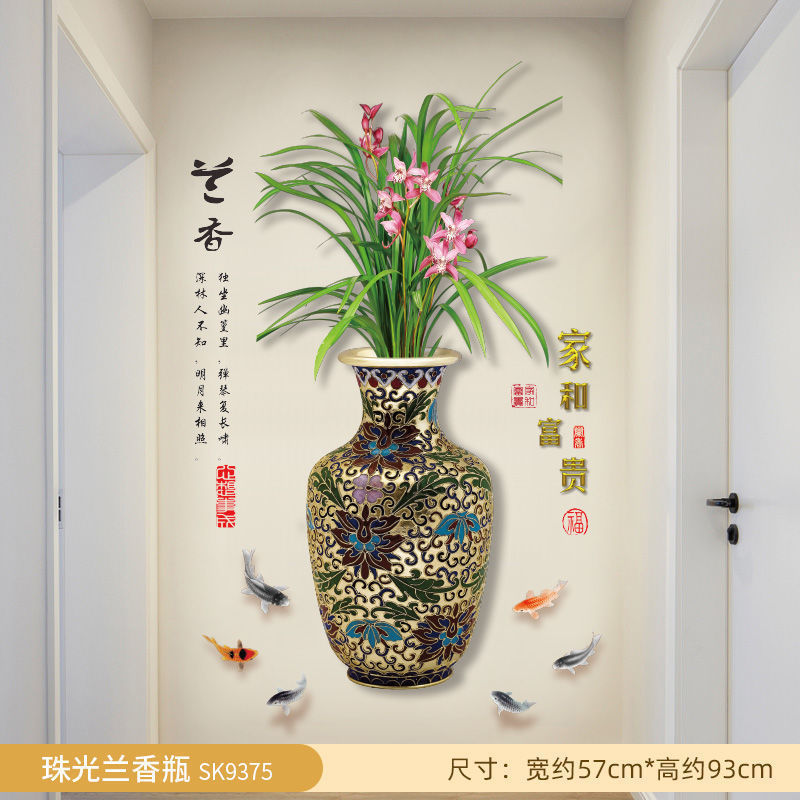 자기 접착 벽 스티커 중국 스타일 벽 스티커 입구 벽 장식 꽃병 스티커 룸 장식 TV 배경 벽 벽지스토어 가기