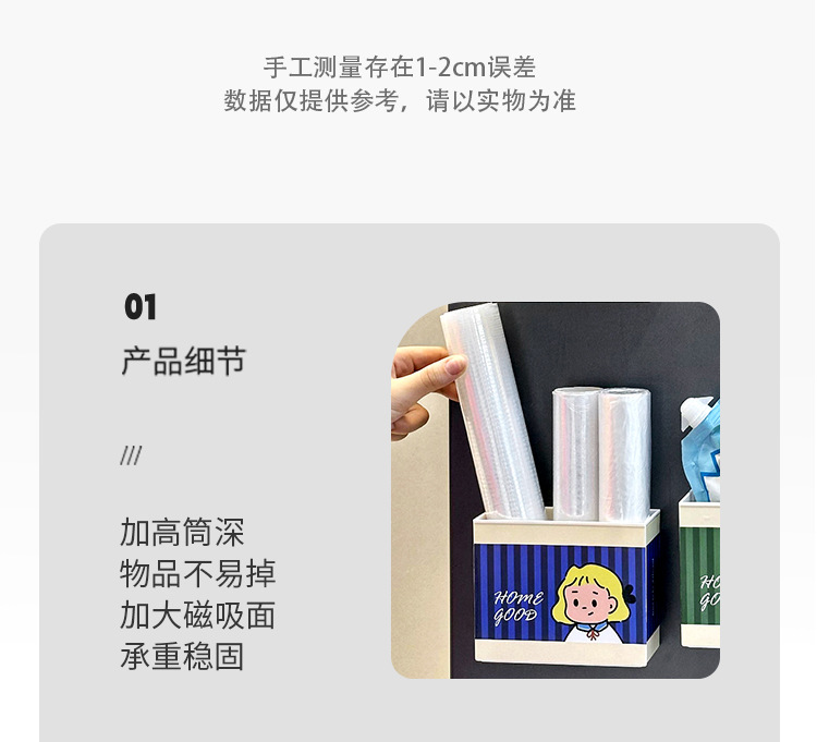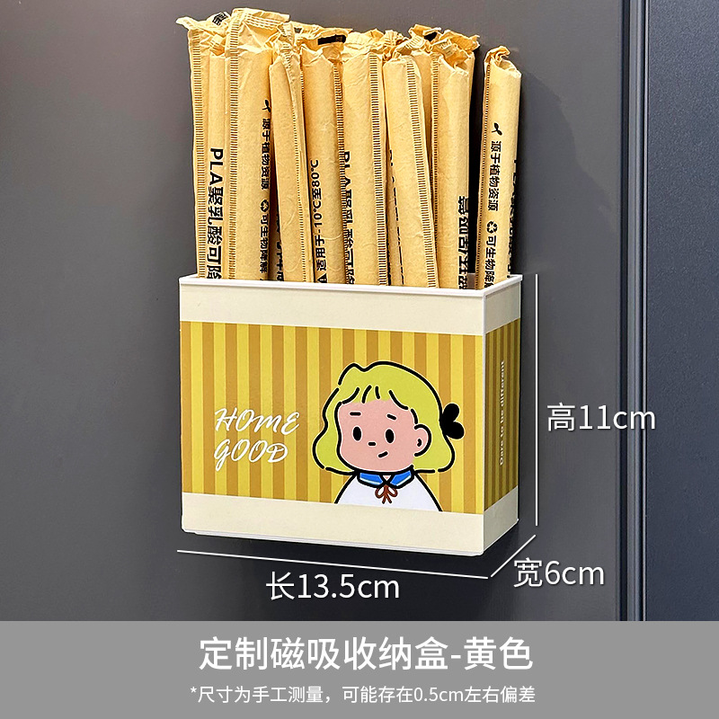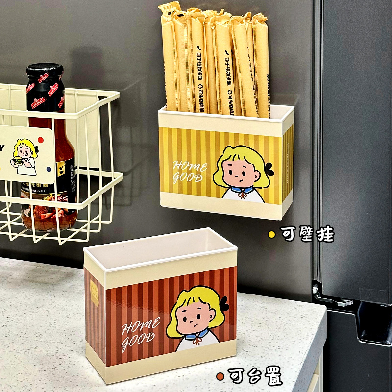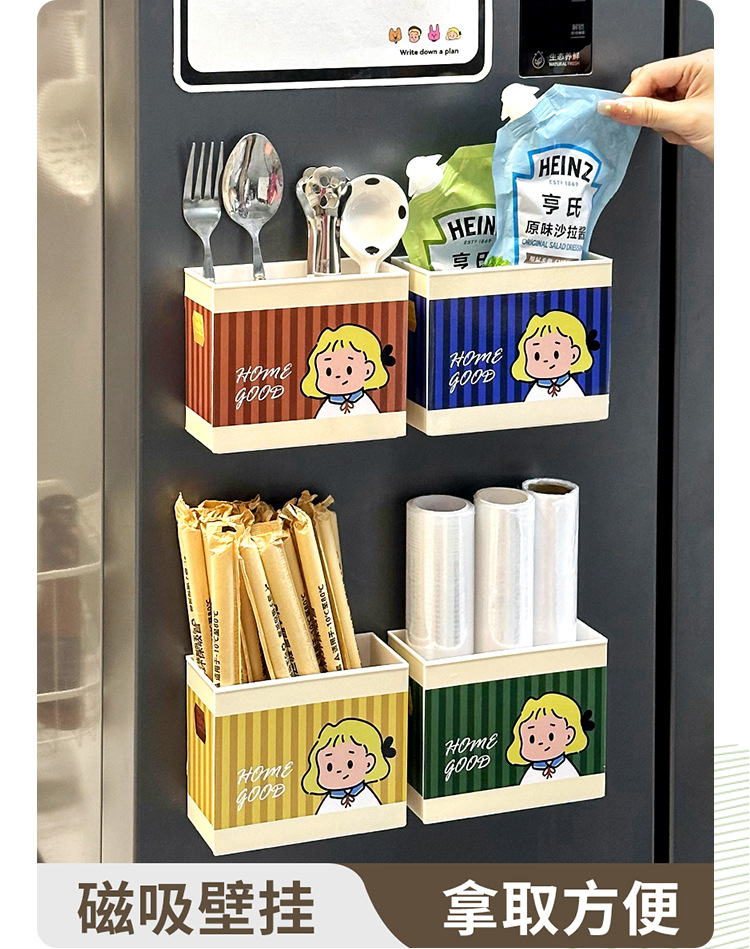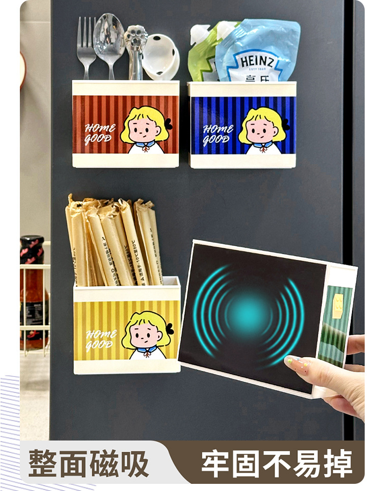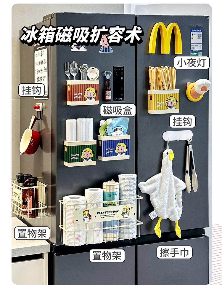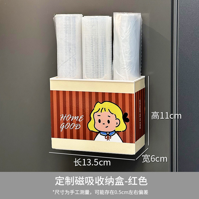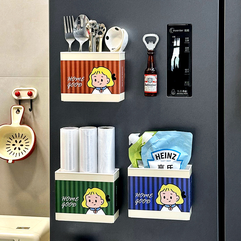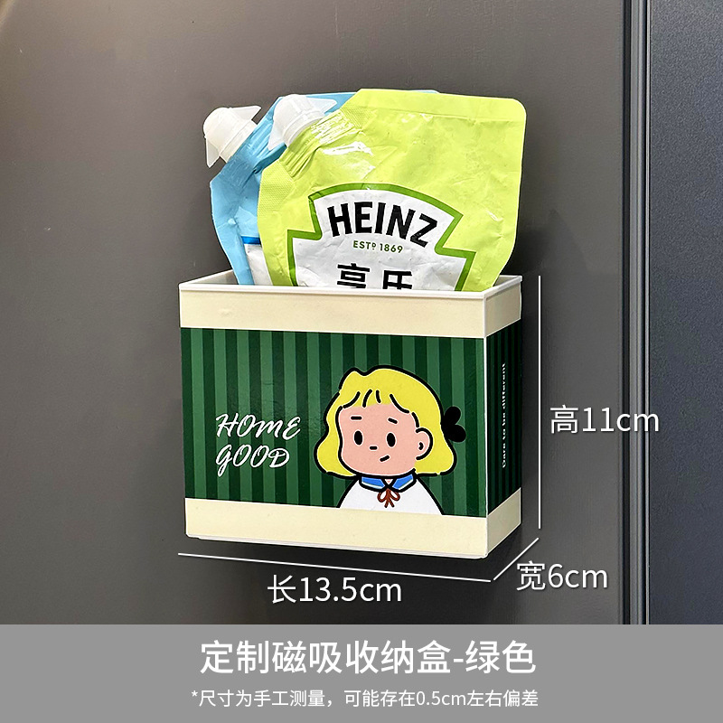 Dongha 귀여운 냉장고 문 외부 장식 자기 흡수 보관 상자 접착 필름 보관 랙 후크 공간 활용 유물스토어 가기