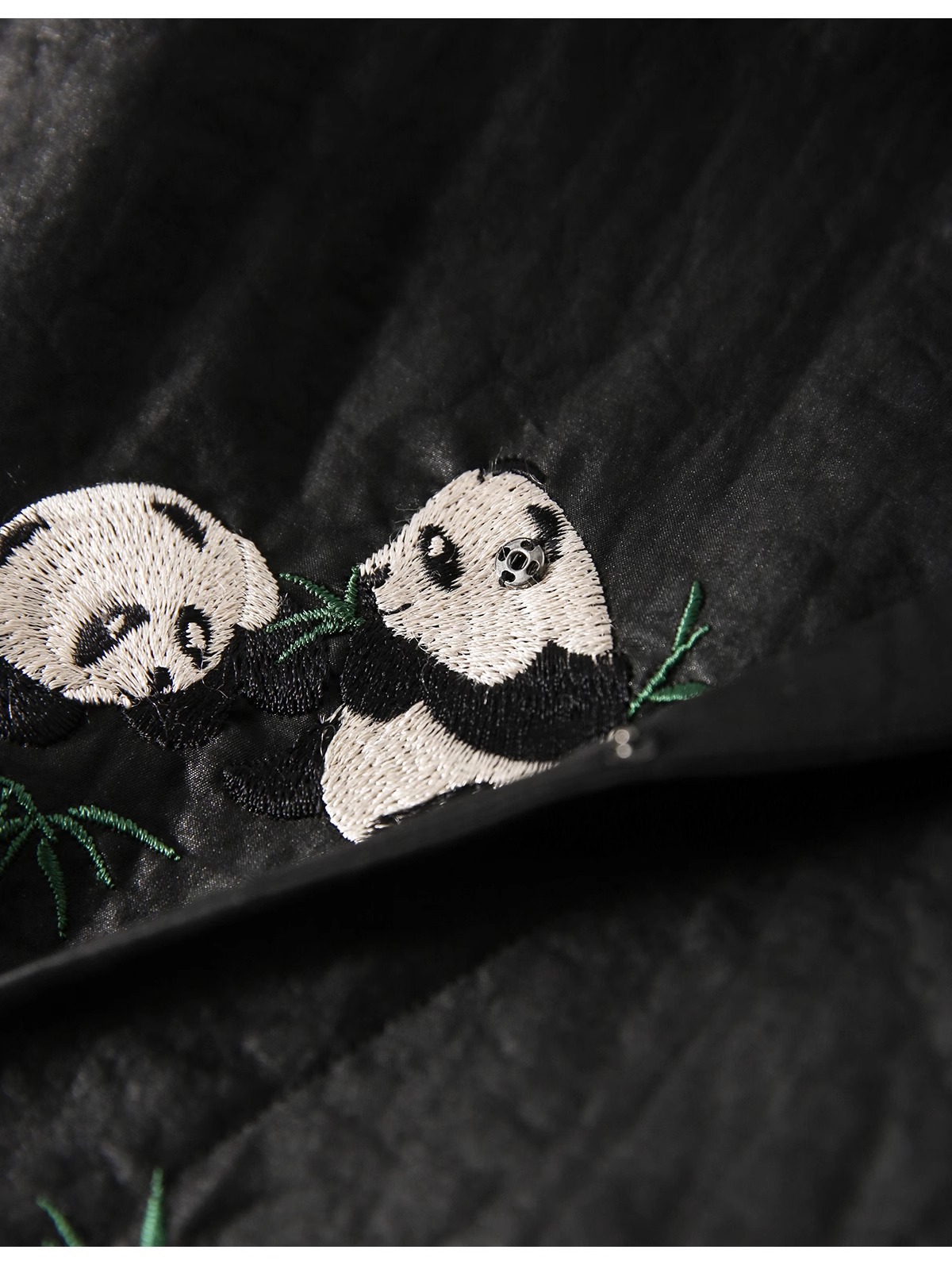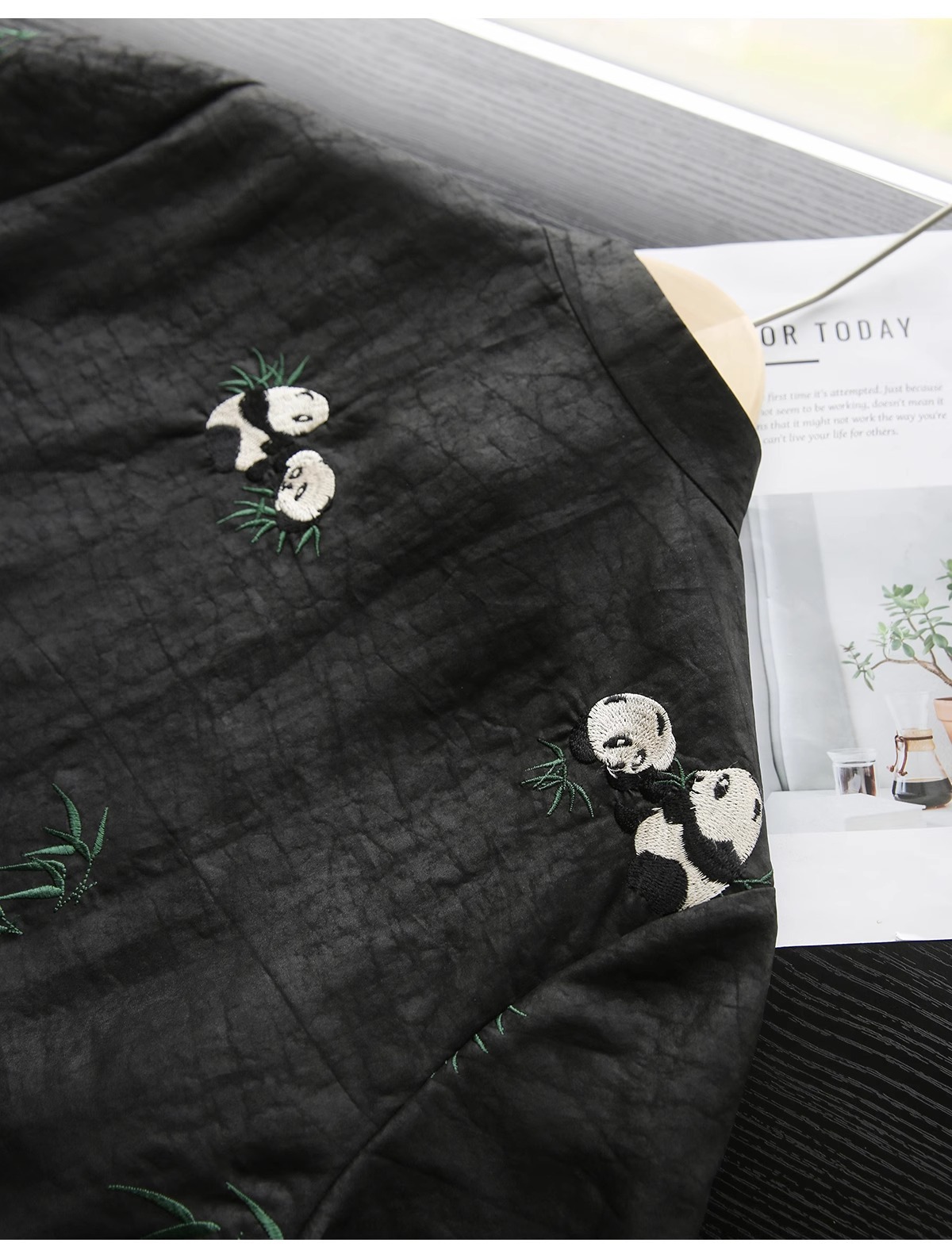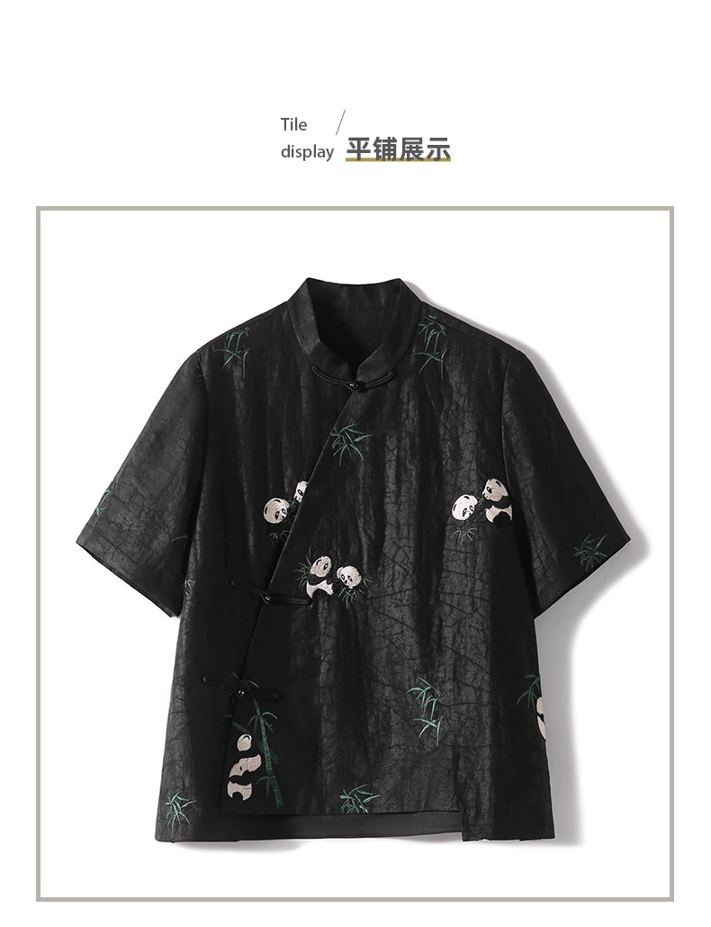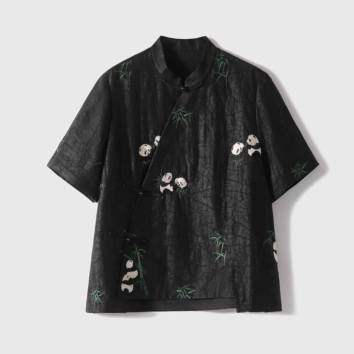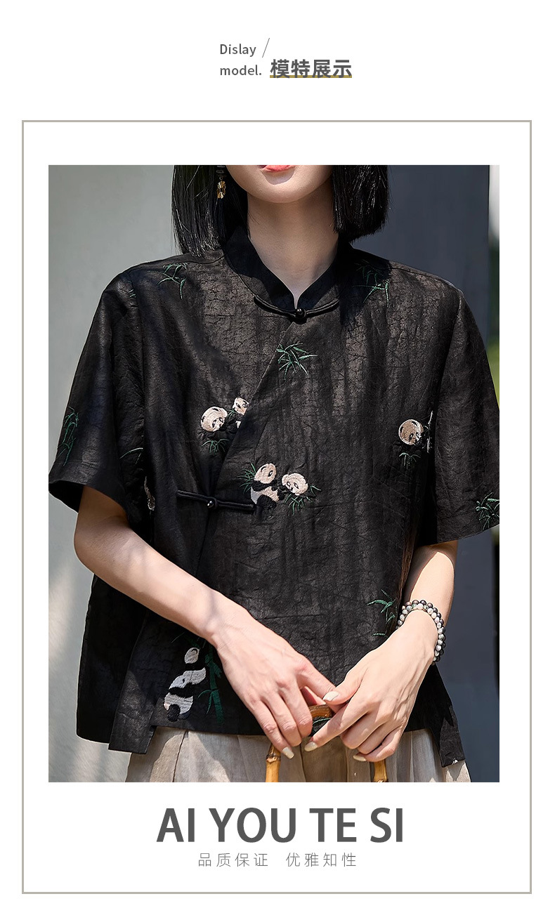22MM 향기로운 구름 원사/거북이 패턴 팬더 자수 새로운 중국 스타일 실크 탑 티셔츠 뽕나무 실크 여성 여름 새 스타일스토어 가기