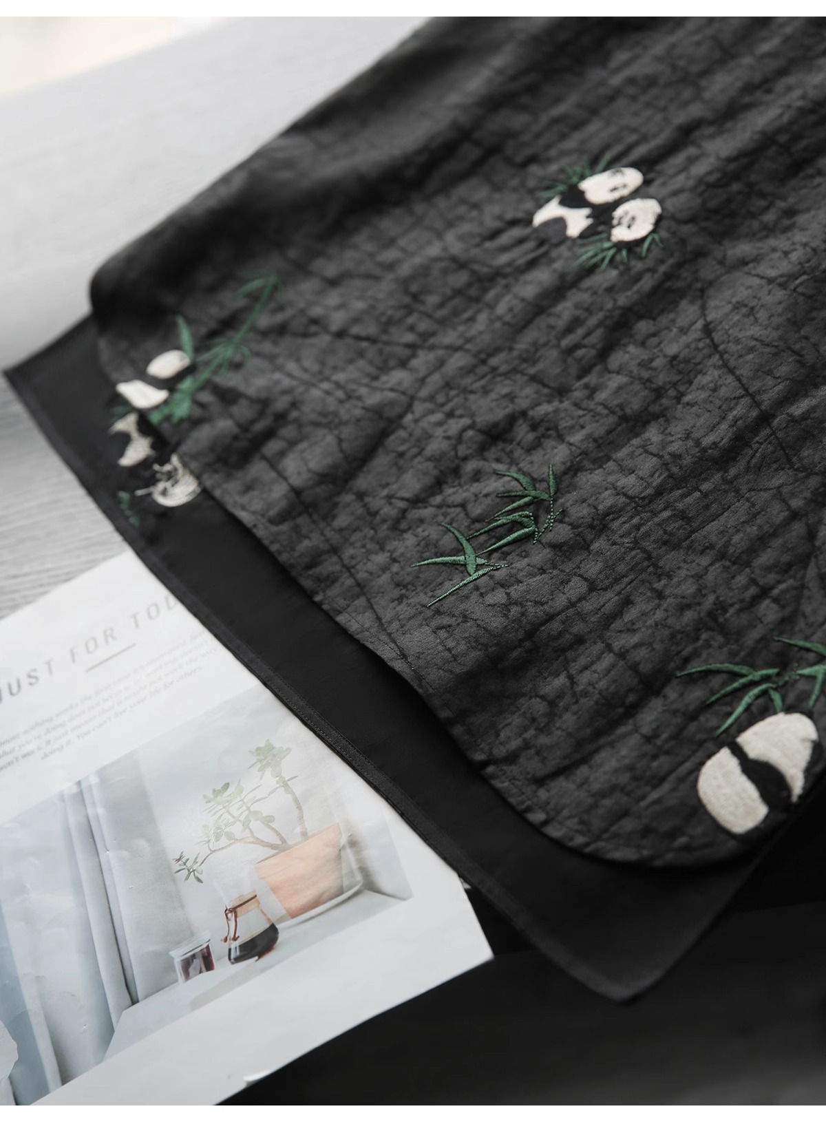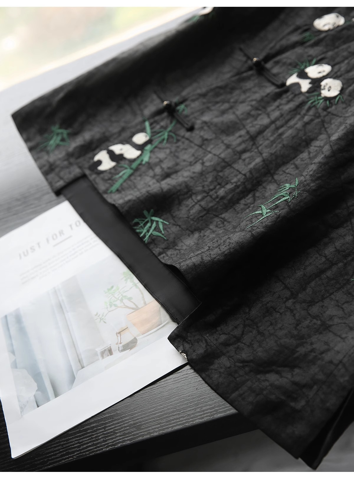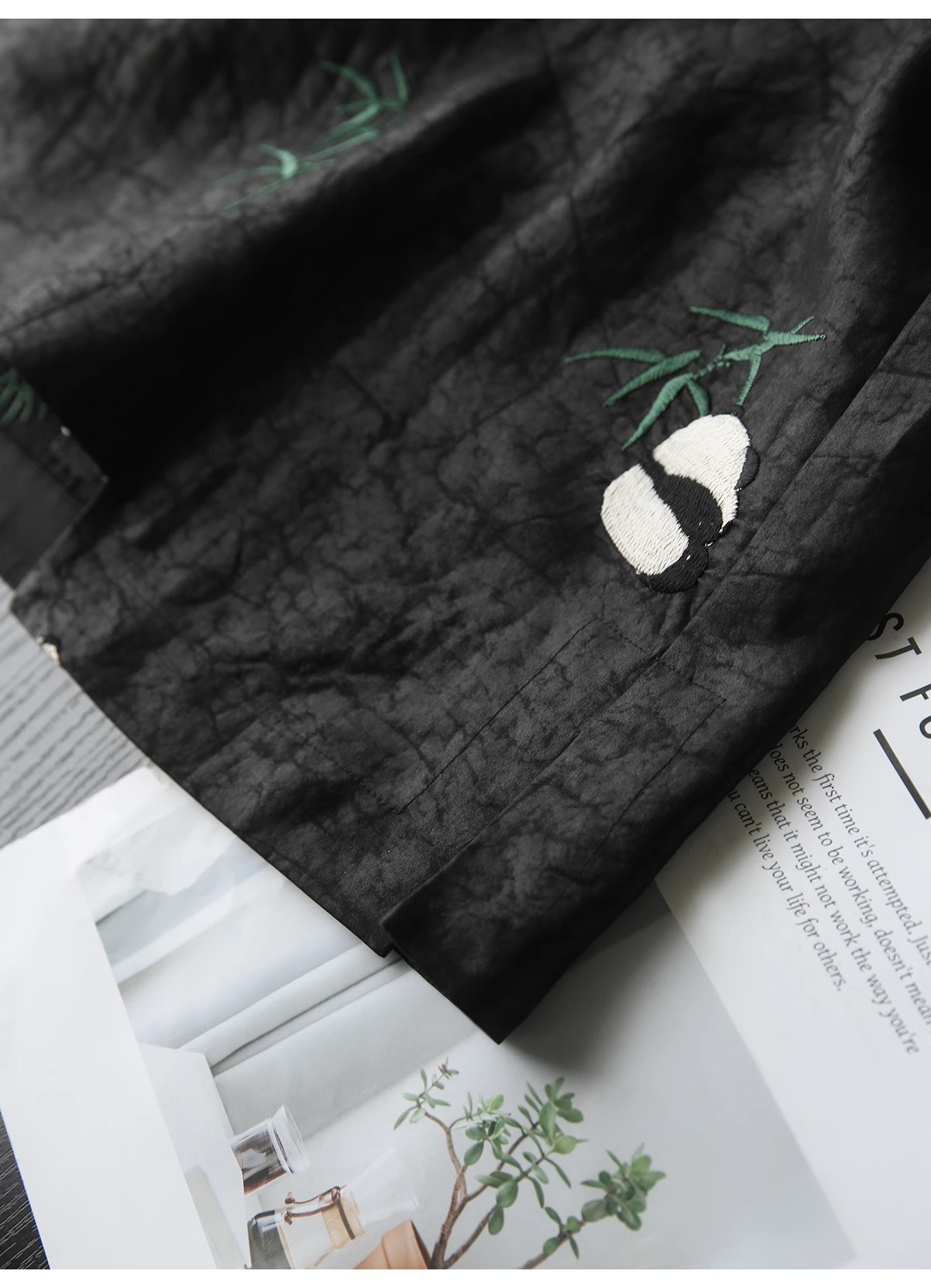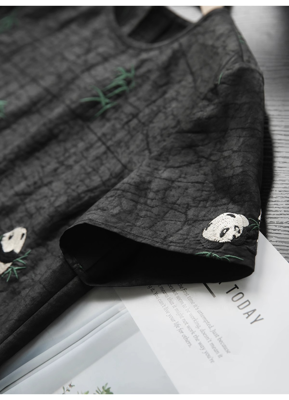 22MM 향기로운 구름 원사/거북이 패턴 팬더 자수 새로운 중국 스타일 실크 탑 티셔츠 뽕나무 실크 여성 여름 새 스타일