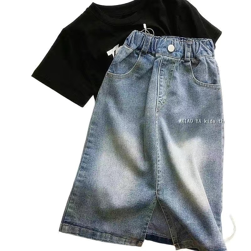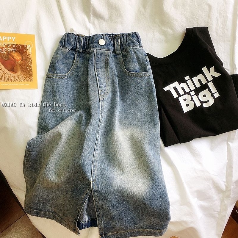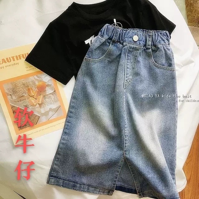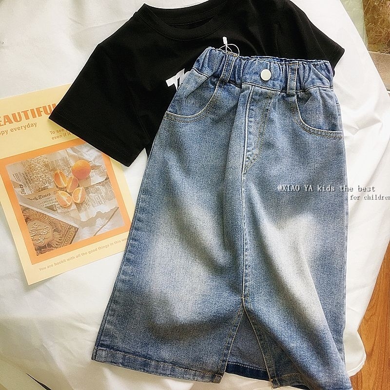 큰 어린이를 위한 데님 스커트, 여름 어린이 스커트, 인터넷 연예인 스타일 공주 스커트, 소녀 봄, 가을스토어 가기