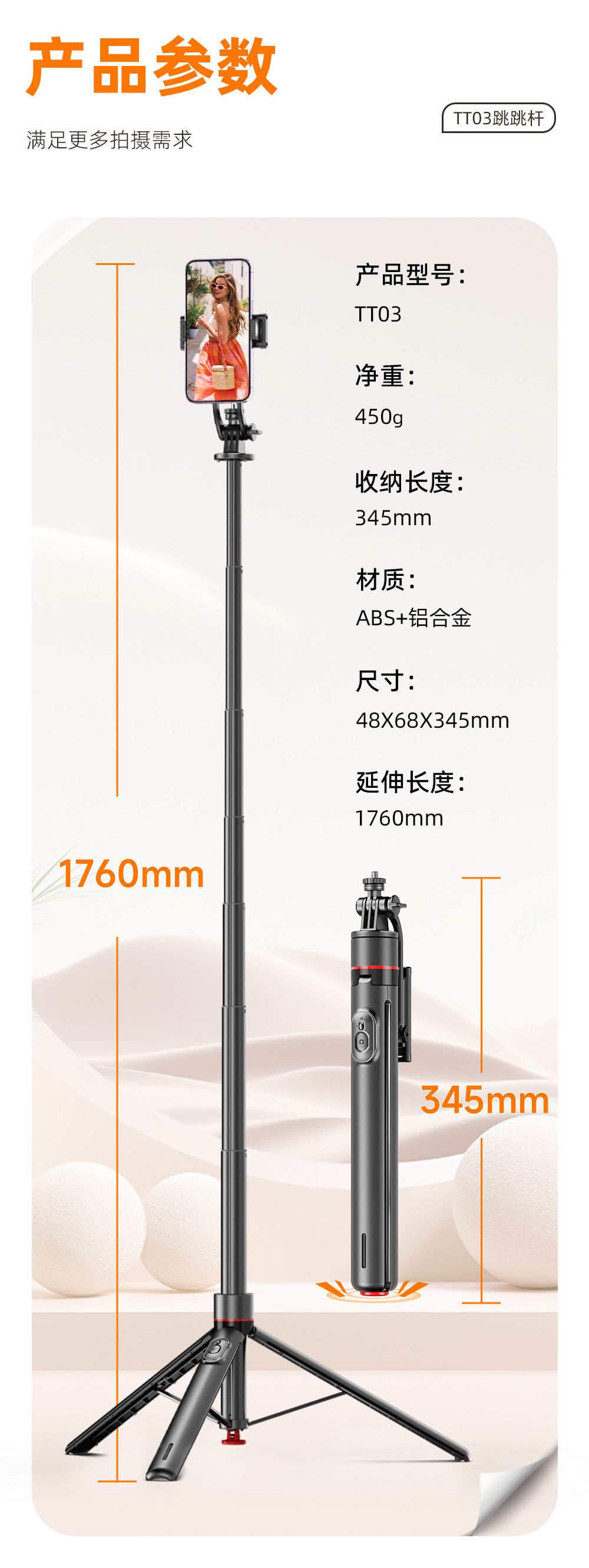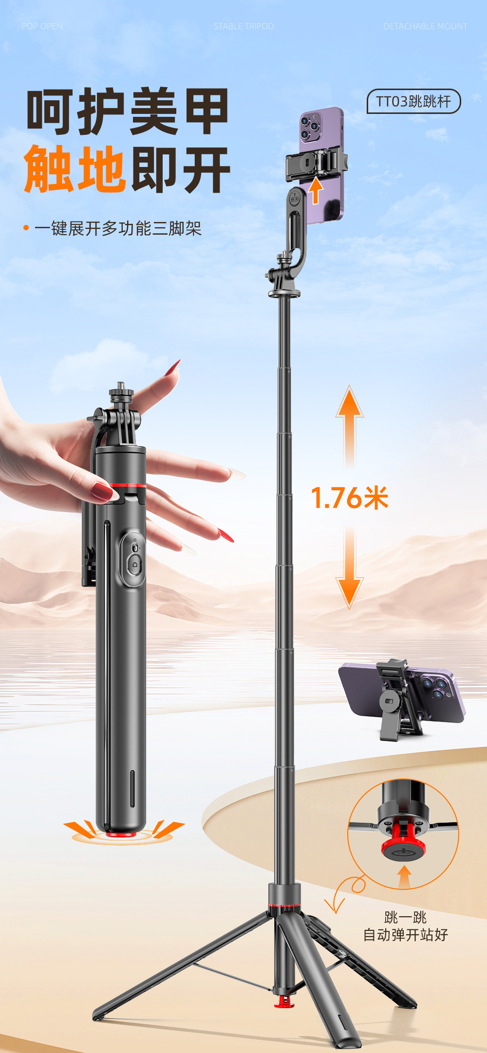새로운 TT03 휴대폰 셀카봉 블루투스 원격 제어 사진 촬영 뷰티 라이브 방송 휴대폰 홀더는 접지시 즉시 열립니다.