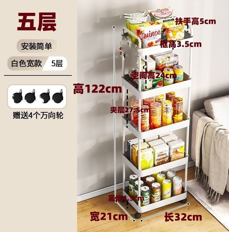 소형 카트형 수납 선반 가정용 주방 책장 욕실 거실 다층 이동식 수납 선반 간식용 바닥형 수납 선반