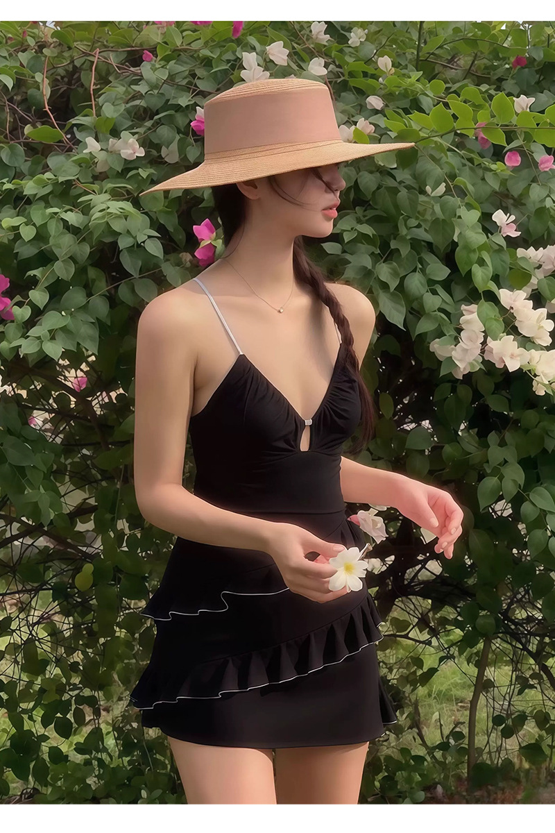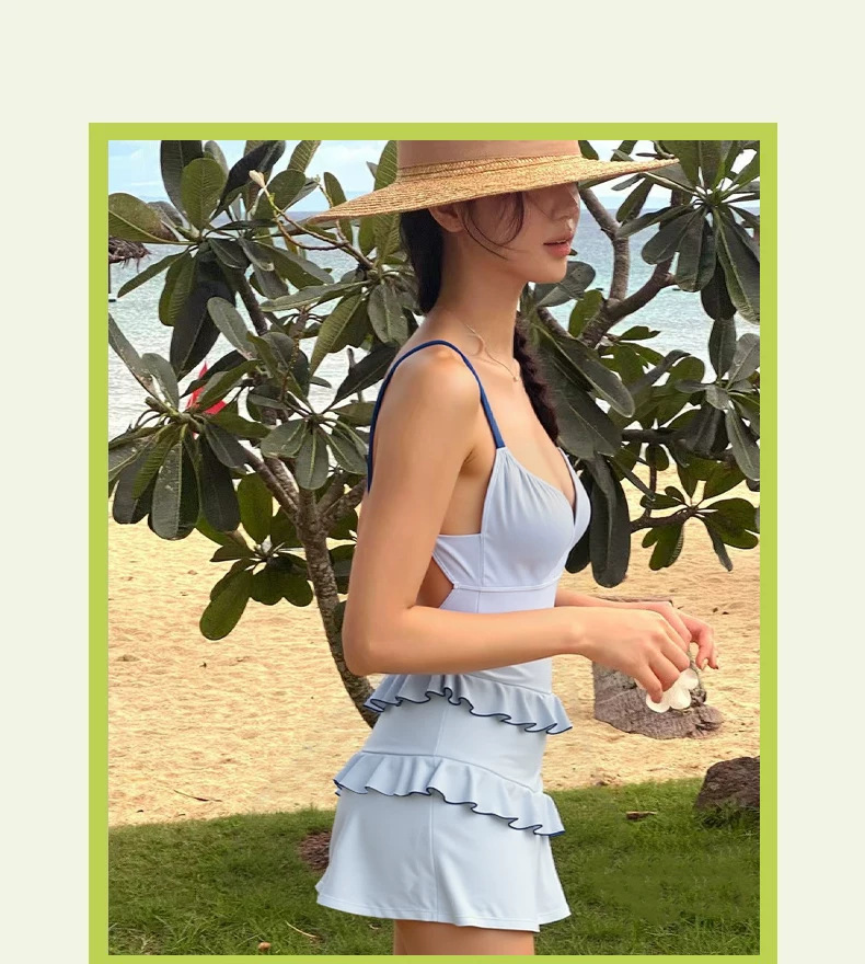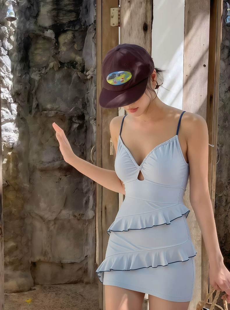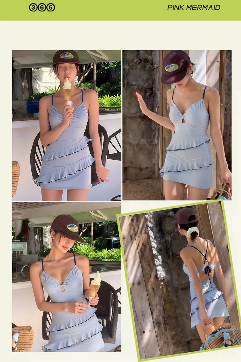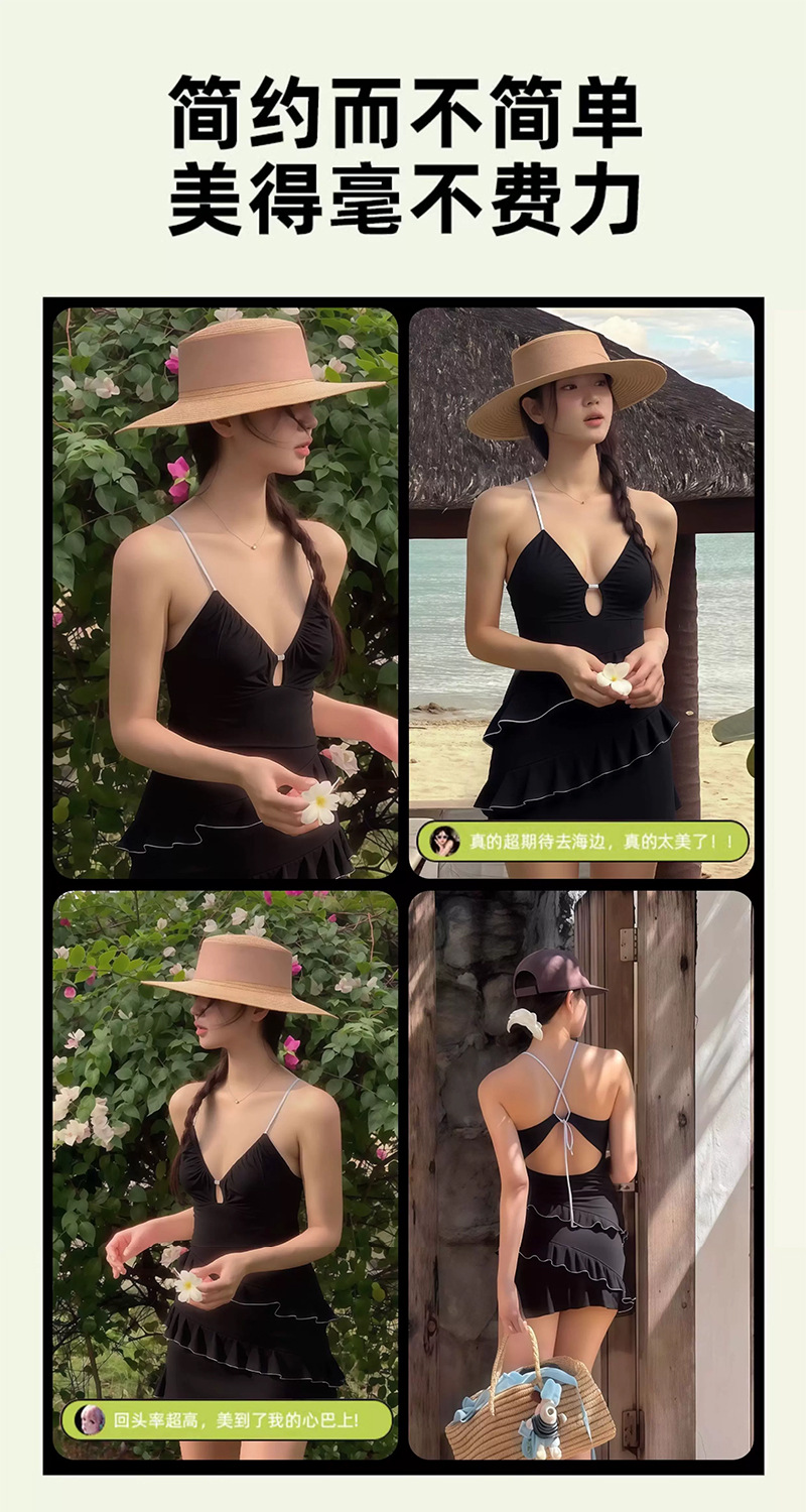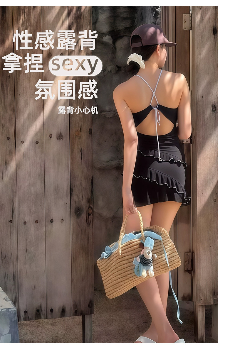 수영복 여성 원피스 서스펜더 스커트 스타일 ins 스타일 슬리밍 섹시한 백리스 비치 온천 휴가 수영복스토어 가기