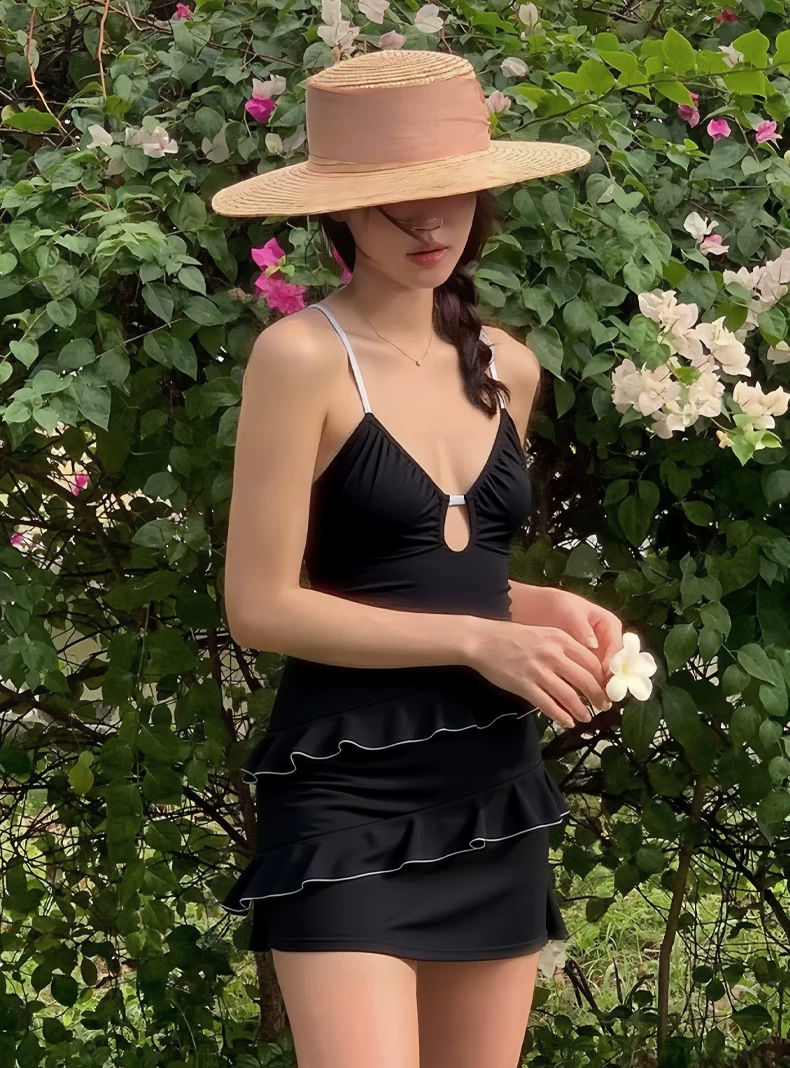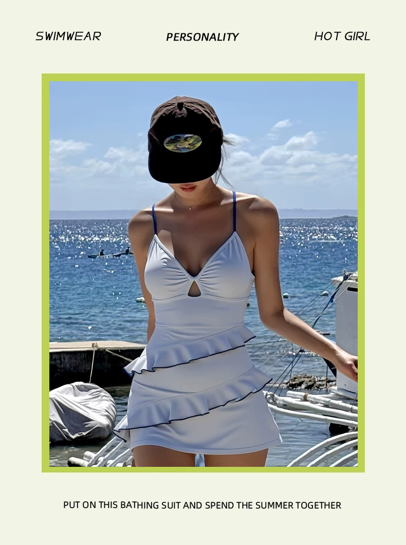수영복 여성 원피스 서스펜더 스커트 스타일 ins 스타일 슬리밍 섹시한 백리스 비치 온천 휴가 수영복