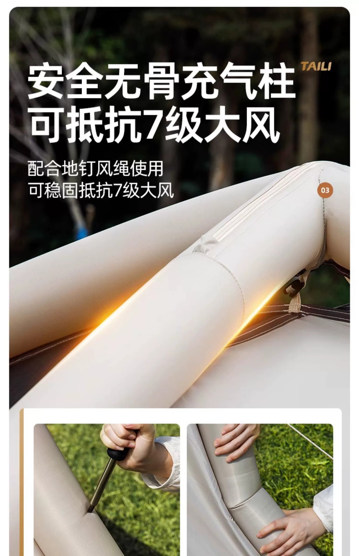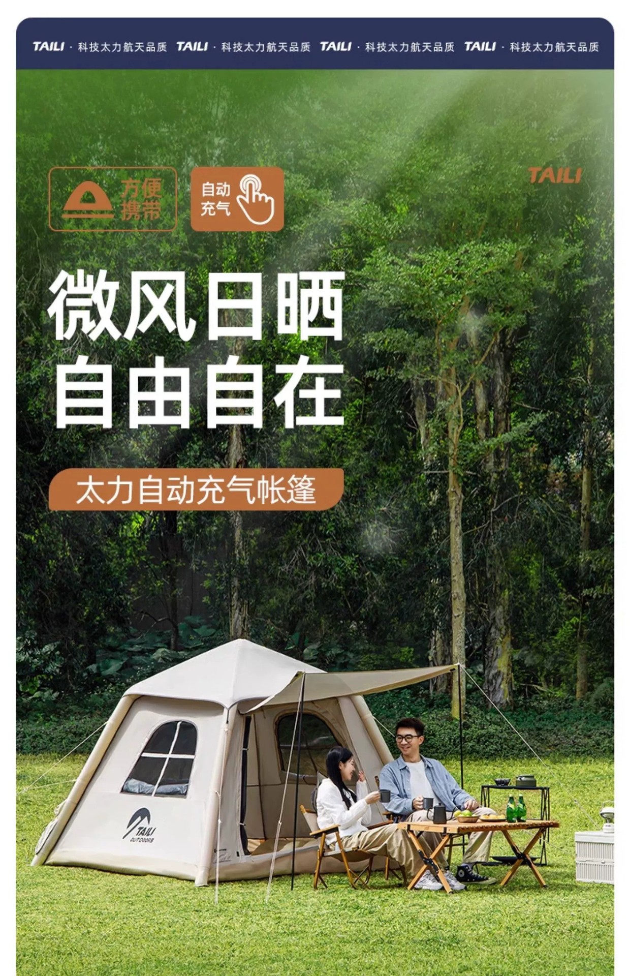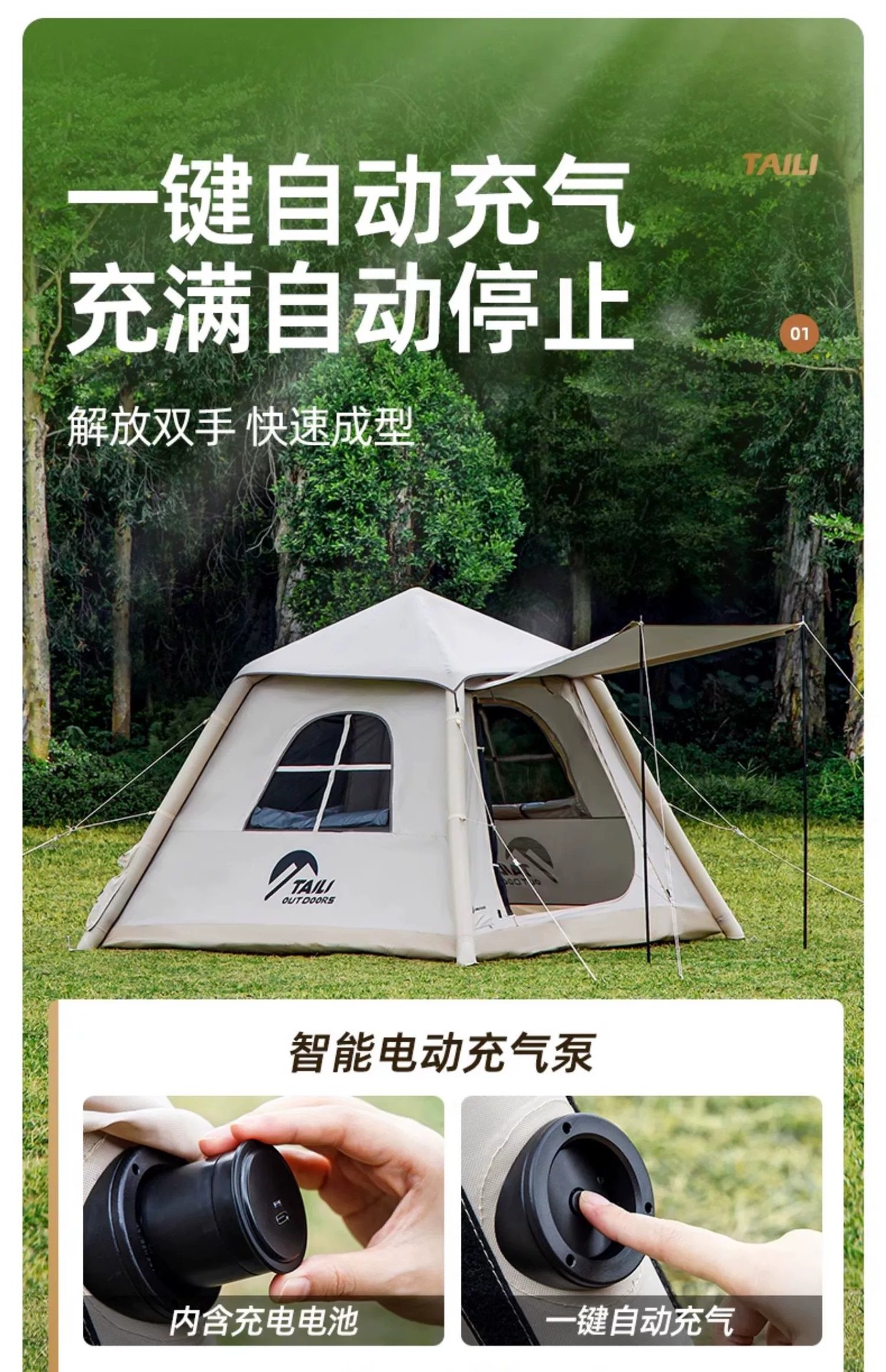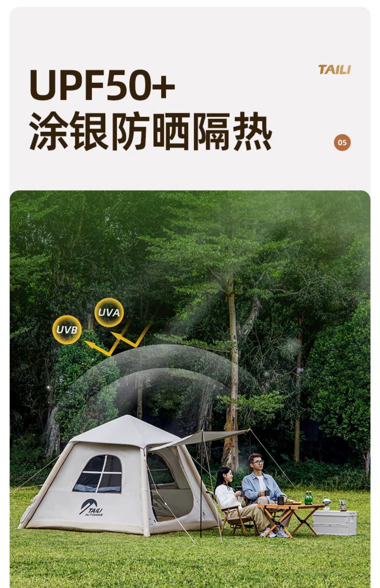 Taili 완전 자동 야외 풍선 텐트 캐노피 캠핑 장비 하이킹 및 캠핑 휴대용 태양 보호 접이식 전체 세트스토어 가기