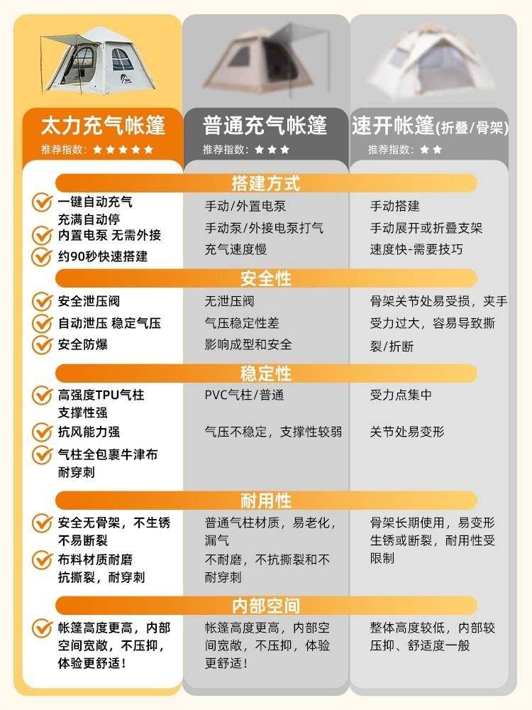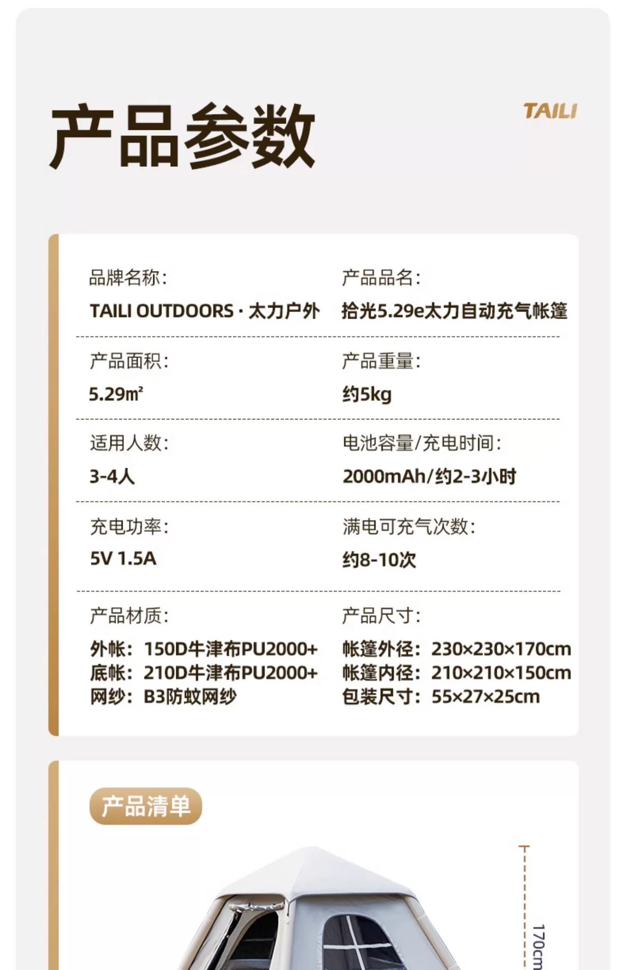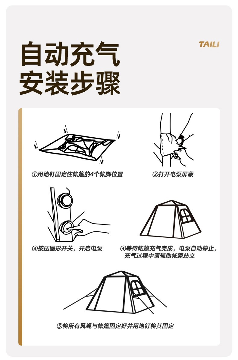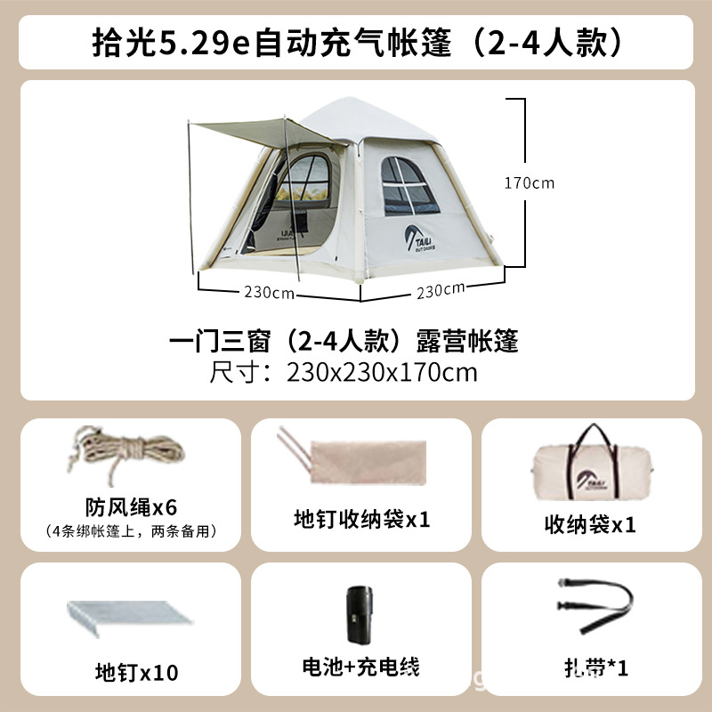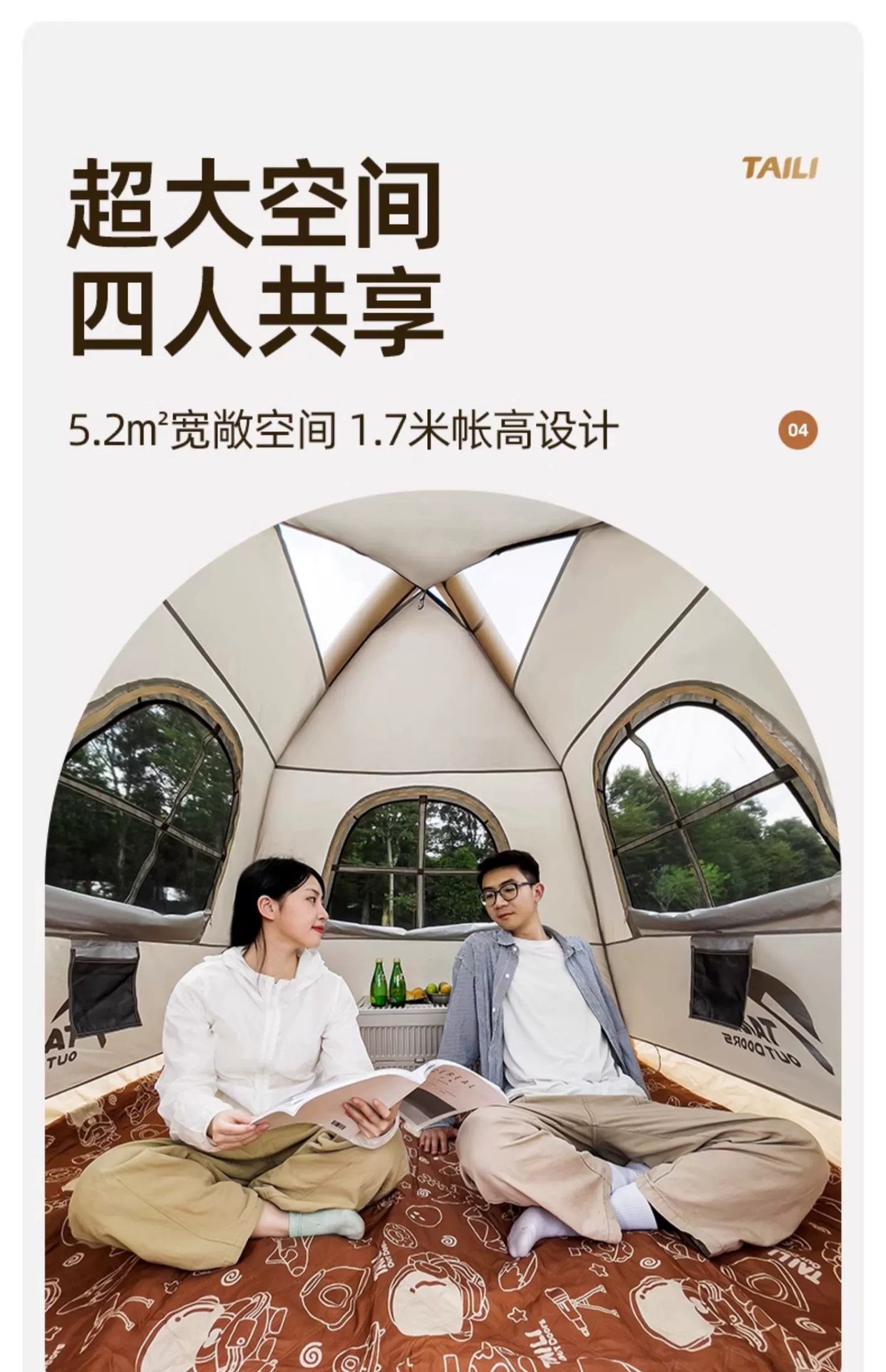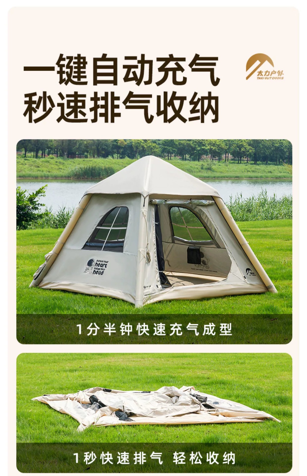 Taili 완전 자동 야외 풍선 텐트 캐노피 캠핑 장비 하이킹 및 캠핑 휴대용 태양 보호 접이식 전체 세트스토어 가기