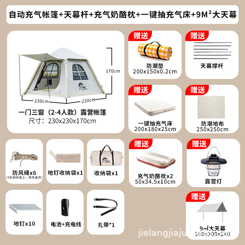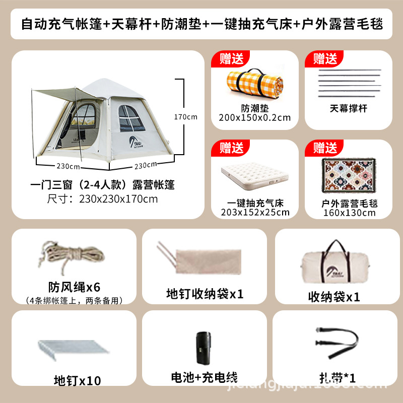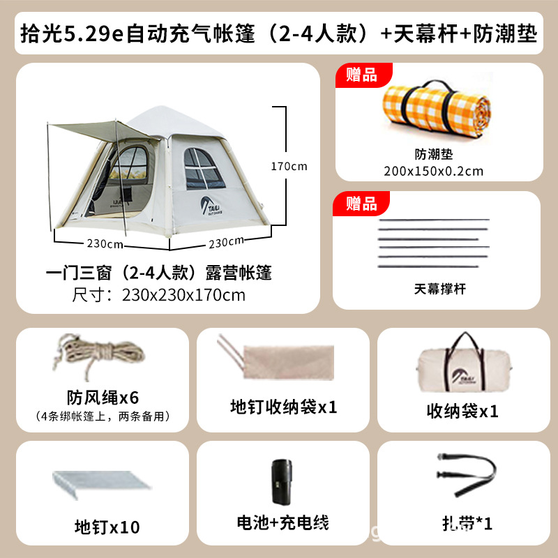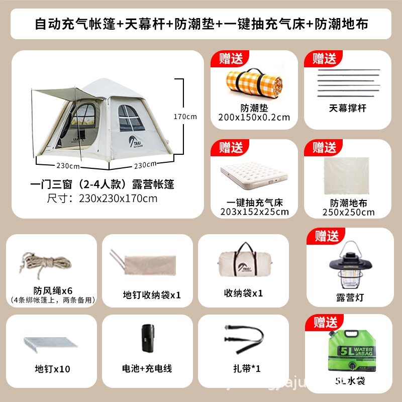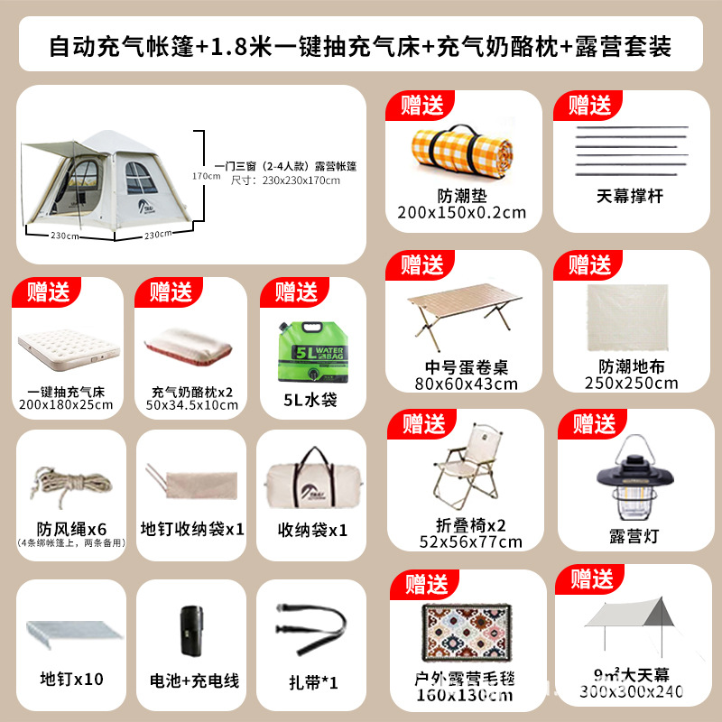 • [패키지 11] 자동 풍선 텐트 + 침대 1.8m 개 + 풍선 치즈 베개 * 2 + 캠핑 세트 + 방습 바닥 천 + 캐노피 폴 + 방습 매트