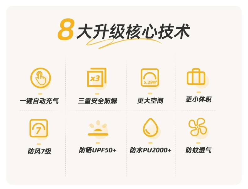 • [패키지 7] 자동 팽창식 텐트 + 침대 1.8m 개 + 대형 캐노피 + 팽창식 치즈 베개 * 2 + 캠핑 조명 + 방습 바닥 천 + 캐노피 폴 + 방습 매트