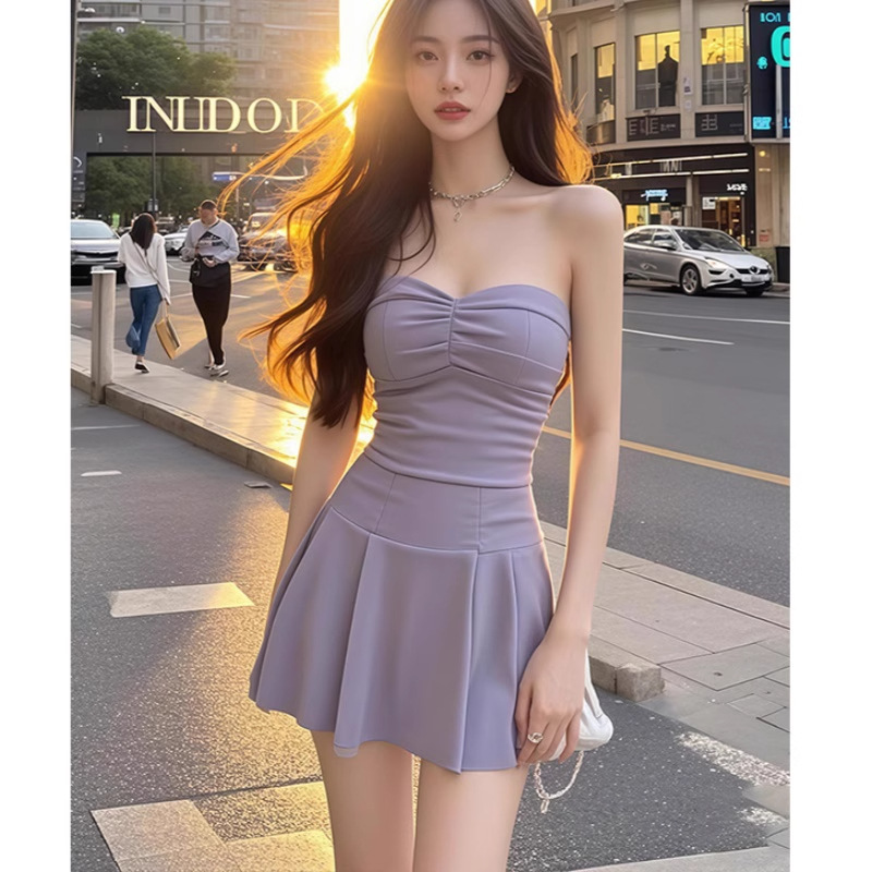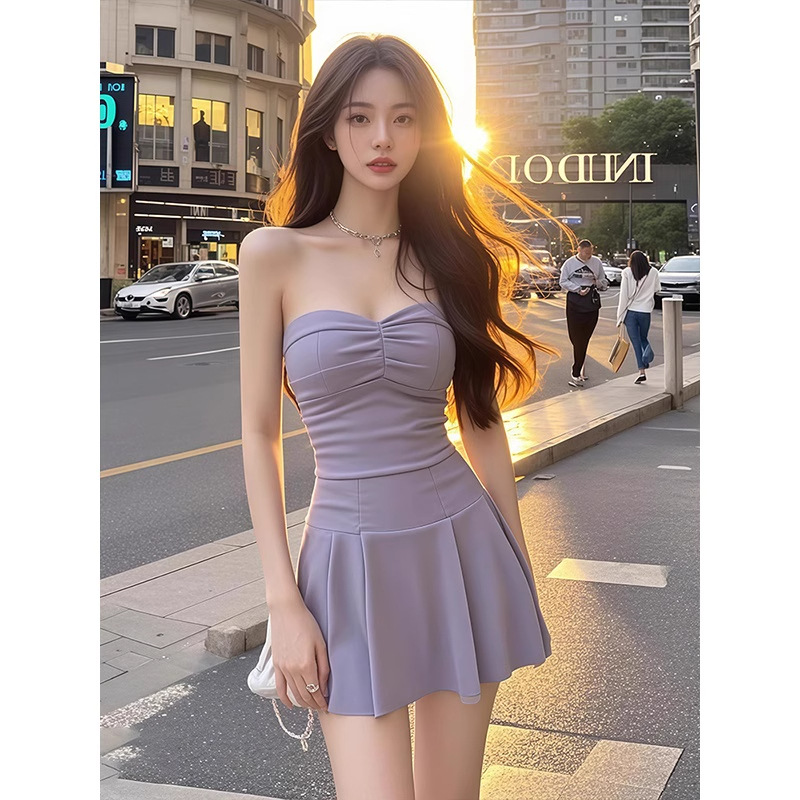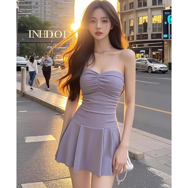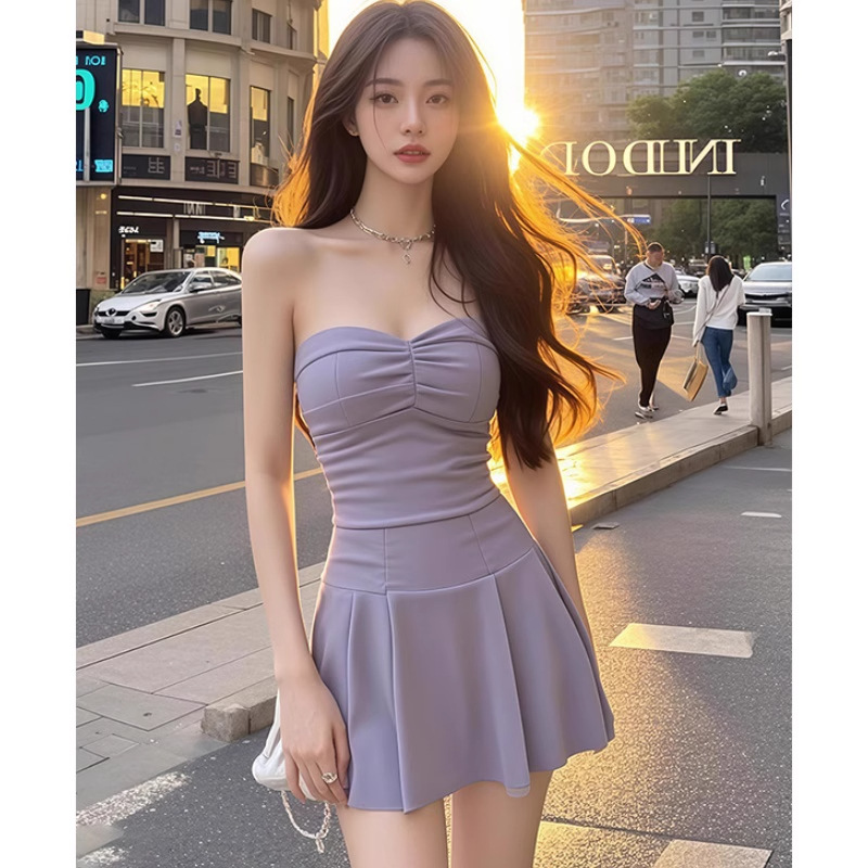 여성을위한 순수한 욕망 튜브 탑 드레스 2025 새로운 인기 핫 스타일 섹시한 a 라인 스커트 독특하고 아름다운 원 숄더 스커트