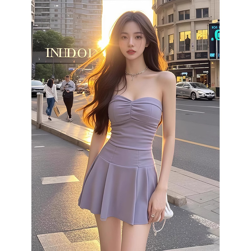 여성을위한 순수한 욕망 튜브 탑 드레스 2025 새로운 인기 핫 스타일 섹시한 a 라인 스커트 독특하고 아름다운 원 숄더 스커트스토어 가기