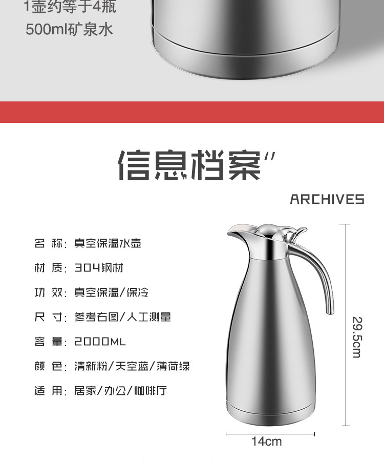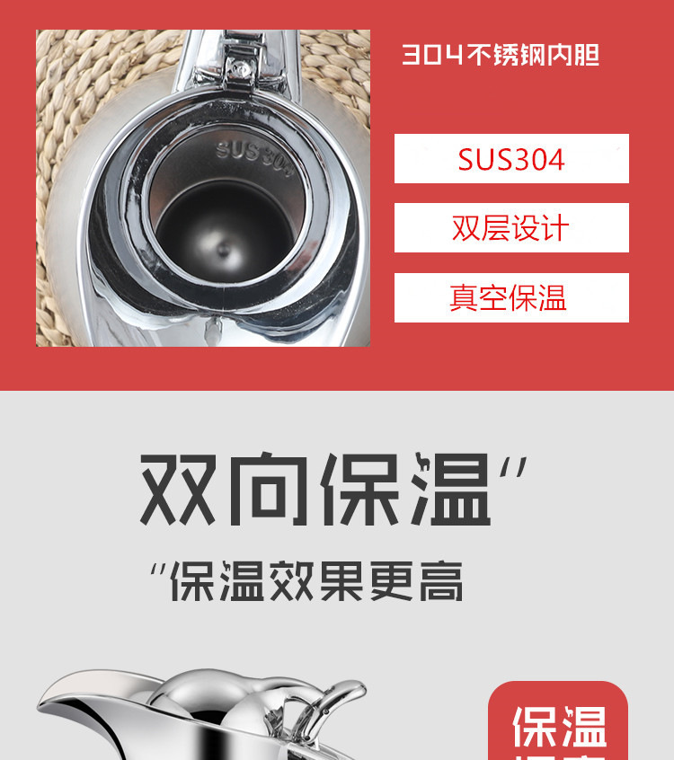 스테인리스 유럽식 보온병 이중 진공 스테인리스 보온병 호텔 온수병 식당 차 주전자 보온병스토어 가기
