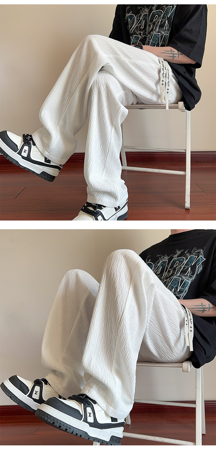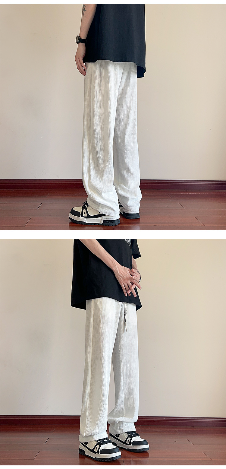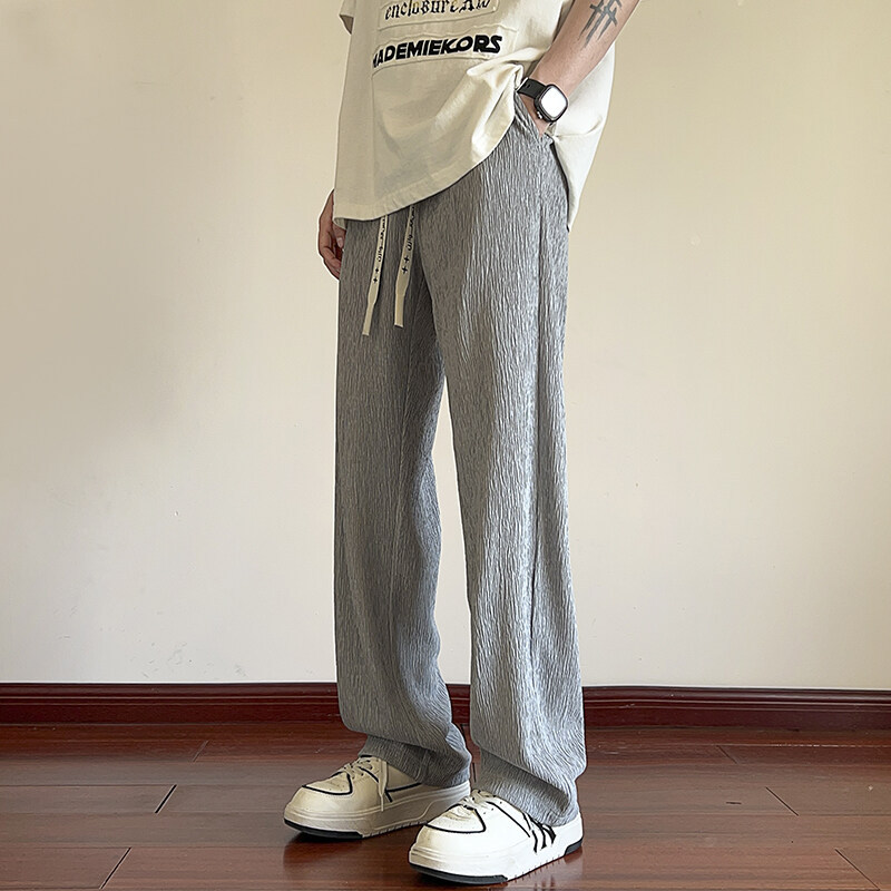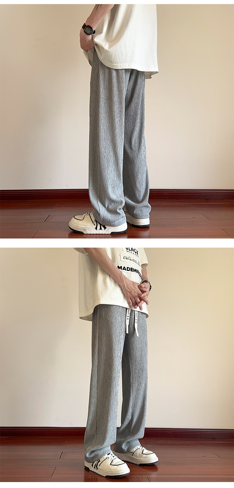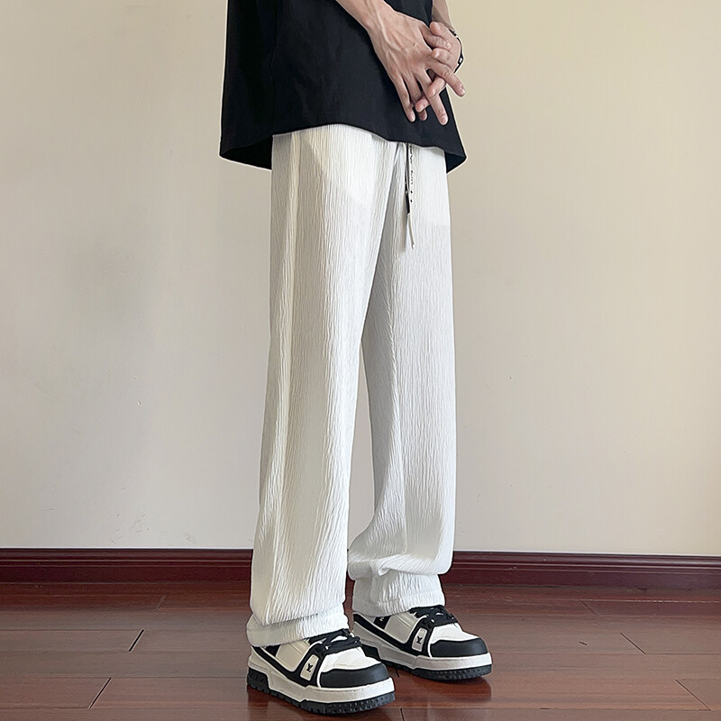 남성용 질감있는 아이스 실크 바지 여름 얇은 2025 새로운 스타일 드레이프 캐주얼 바지 소년 느슨한 와이드 레그 팬츠