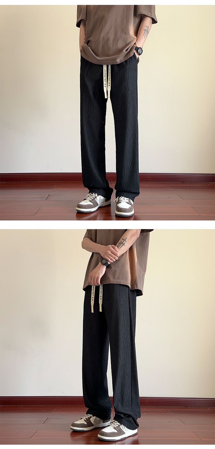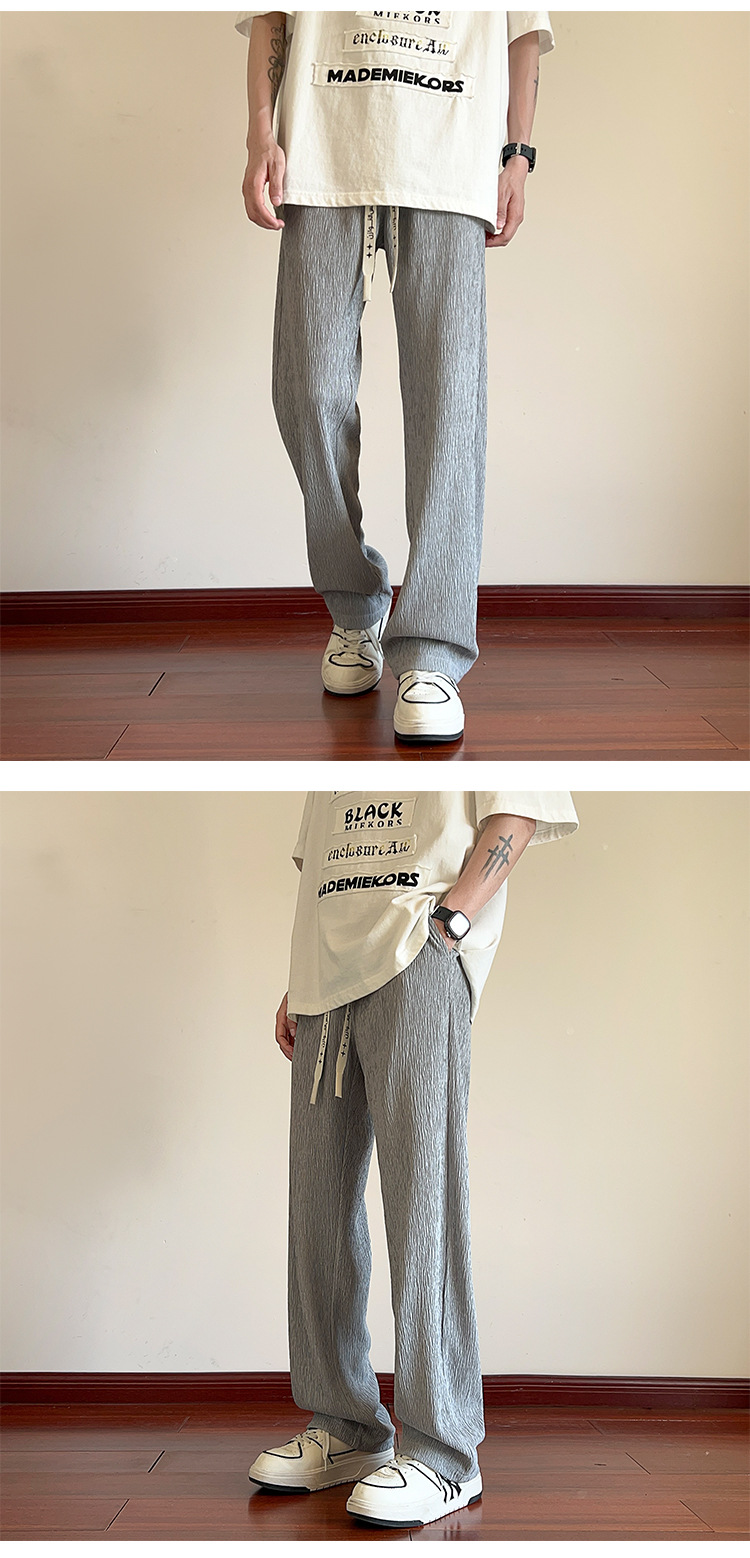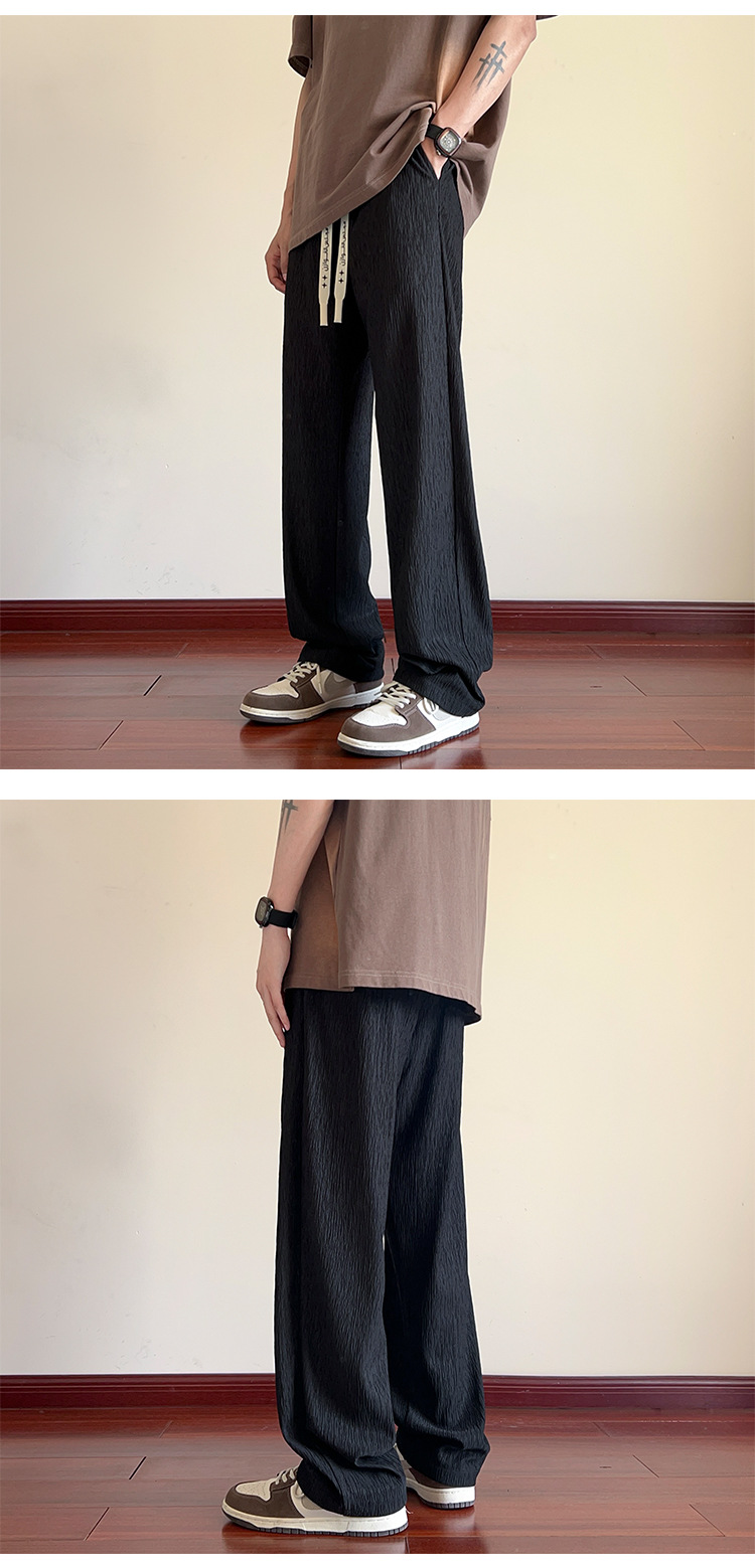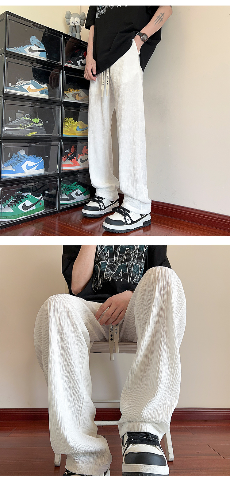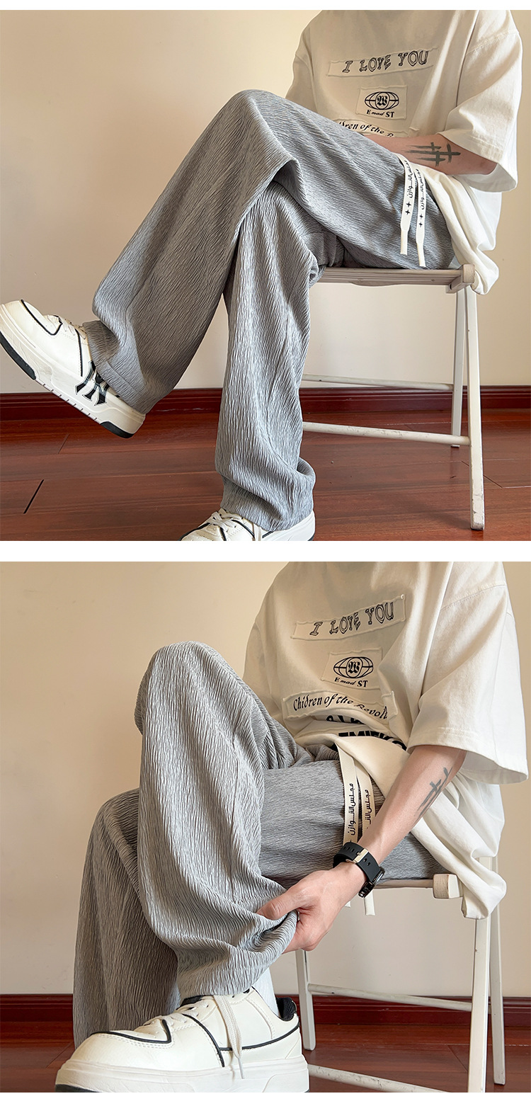 남성용 질감있는 아이스 실크 바지 여름 얇은 2025 새로운 스타일 드레이프 캐주얼 바지 소년 느슨한 와이드 레그 팬츠