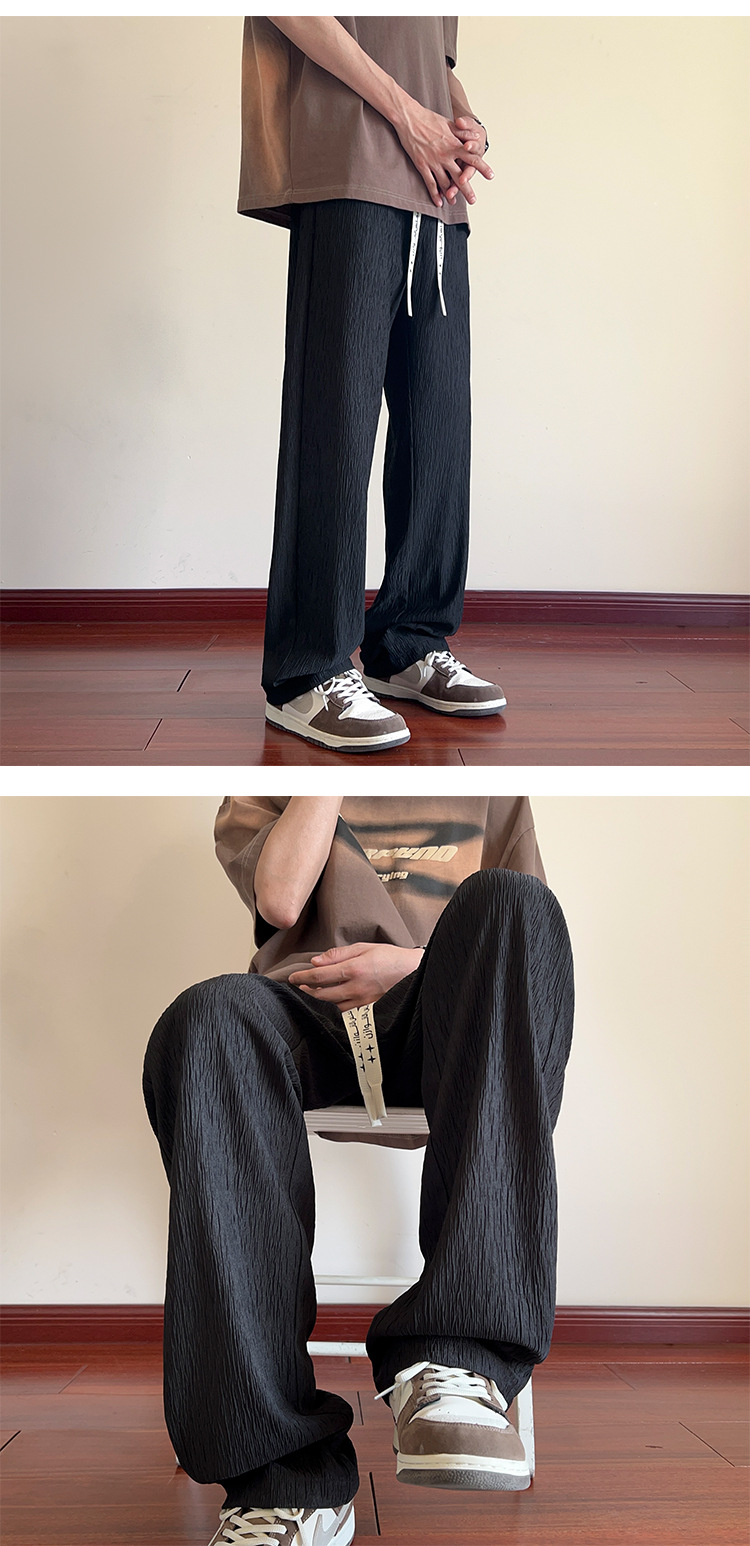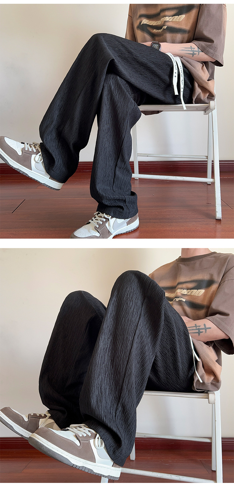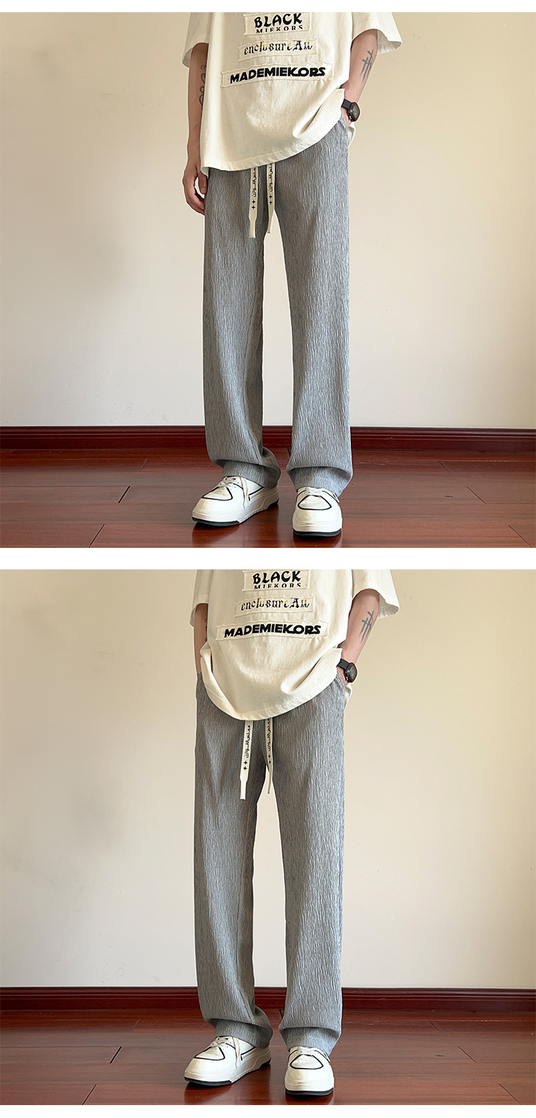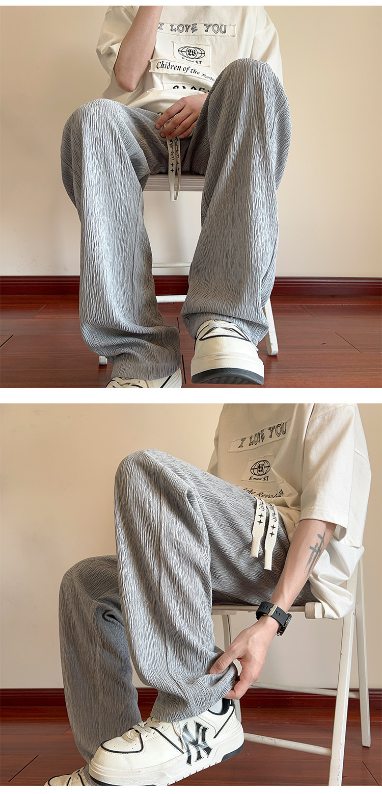 남성용 질감있는 아이스 실크 바지 여름 얇은 2025 새로운 스타일 드레이프 캐주얼 바지 소년 느슨한 와이드 레그 팬츠